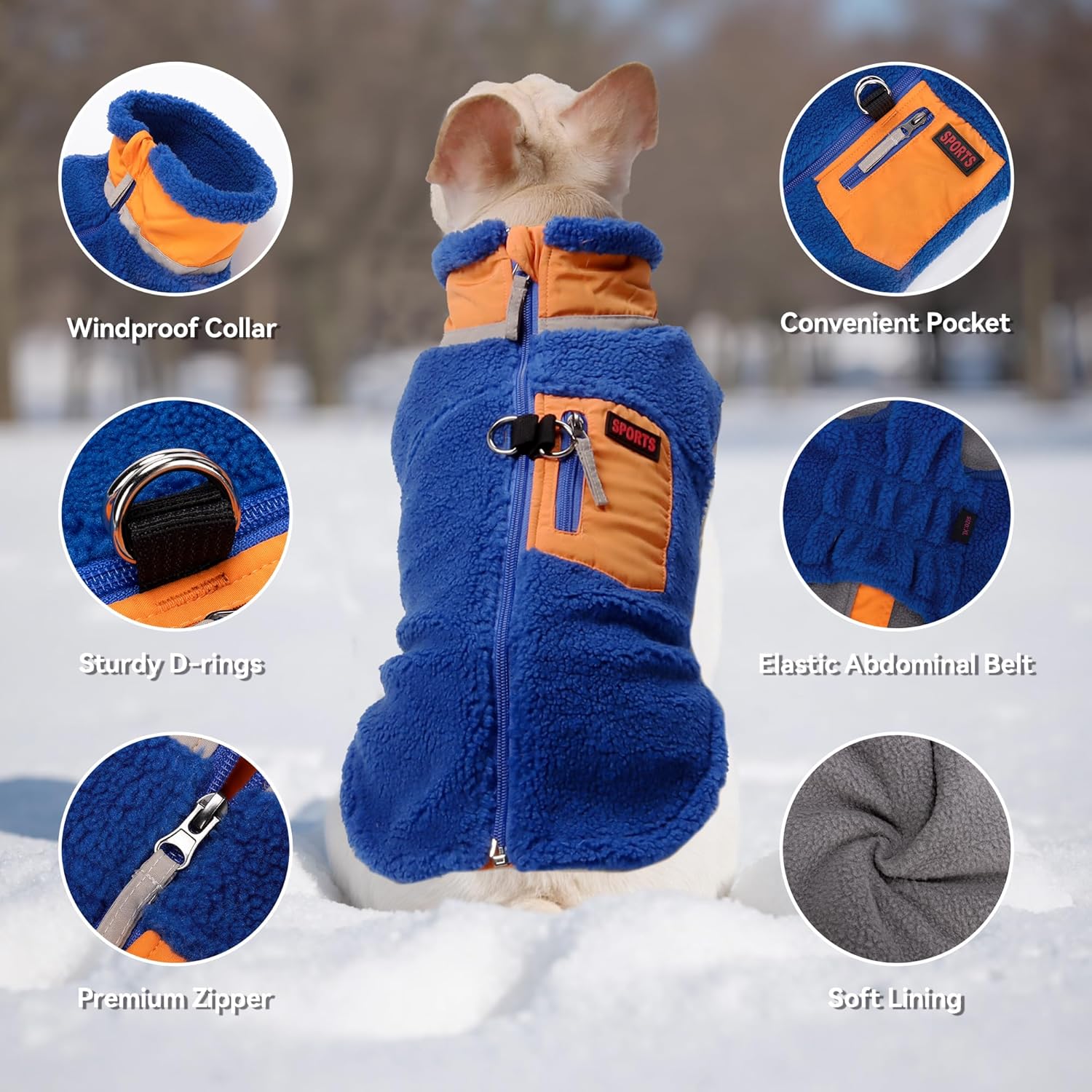 FEimaX Топло кучешко палто, ветроустойчиво, зимно поларено яке за кучета, зимен жилет с D-образни пръстени, дрехи за кучета, яке за малки и средни кучета
