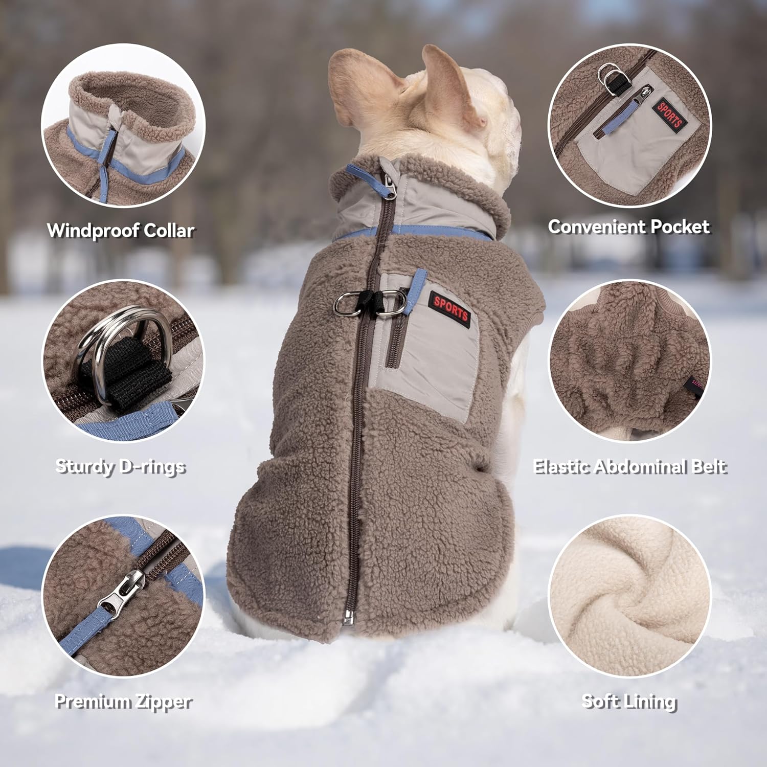 FEimaX Топло кучешко палто, ветроустойчиво, зимно поларено яке за кучета, зимен жилет с D-образни пръстени, дрехи за кучета, яке за малки и средни кучета