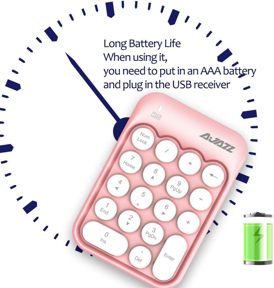 • [Малка и преносима] Тази безжична цифрова клавиатура тежи само 100 грама. Лекият дизайн я прави лесна за носене. Компактното разположение на клавишите включва бутон за връщане назад за въвеждане и удобно и бързо променяне. Тя е добър спътник за преносими компютри и е разпознаваема. Добрият офис асистент може да ви помогне да се справяте с електронни таблици, счетоводни документи или финансови приложения. Много подходяща за студенти, счетоводители, офиси, финансово счетоводство и др.