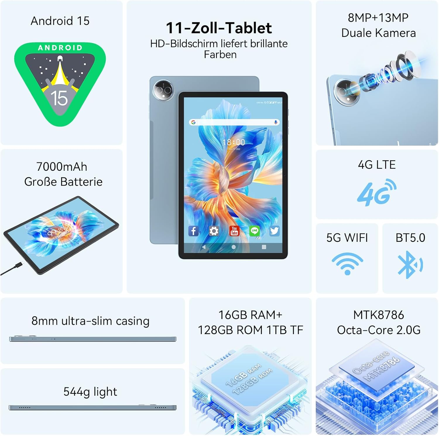 • [Mehr Funktionen und mehr Zubehör]Auf diesem 4G-Mobiltelefon ist die Kinder-App Google Kids Space vorinstalliert. Damit können Eltern die Spielzeit ihrer Kinder besser steuern. Außerdem verfügt es über GPS-Funktionen und Sie können Google Maps nutzen, indem Sie Offline-Karten auf das Tablet herunterladen. Mit der Split-Screen-Funktion können Sie gleichzeitig Notizen machen und Videos ansehen. Lieferumfang:1 x 11-Zoll-Tablet, 1 x Bluetooth-Tastatur, 1 x kabellose Maus, 1 x Schutzhülle, 1 x Schutzfolie, 1 x USB-Ladegerät, 1 x USB-C-Kabel, 1 x OTG-Kabel, 1 x Benutzerhandbuch.