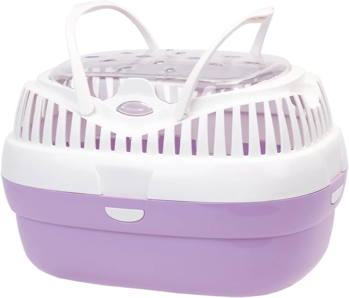 Правилна циркулация на въздуха вътре. Прозрачен пластмасов капак, за да държите домашния си любимец под контрол. Снабден с практична дръжка. Максимален капацитет: 0,5 кг