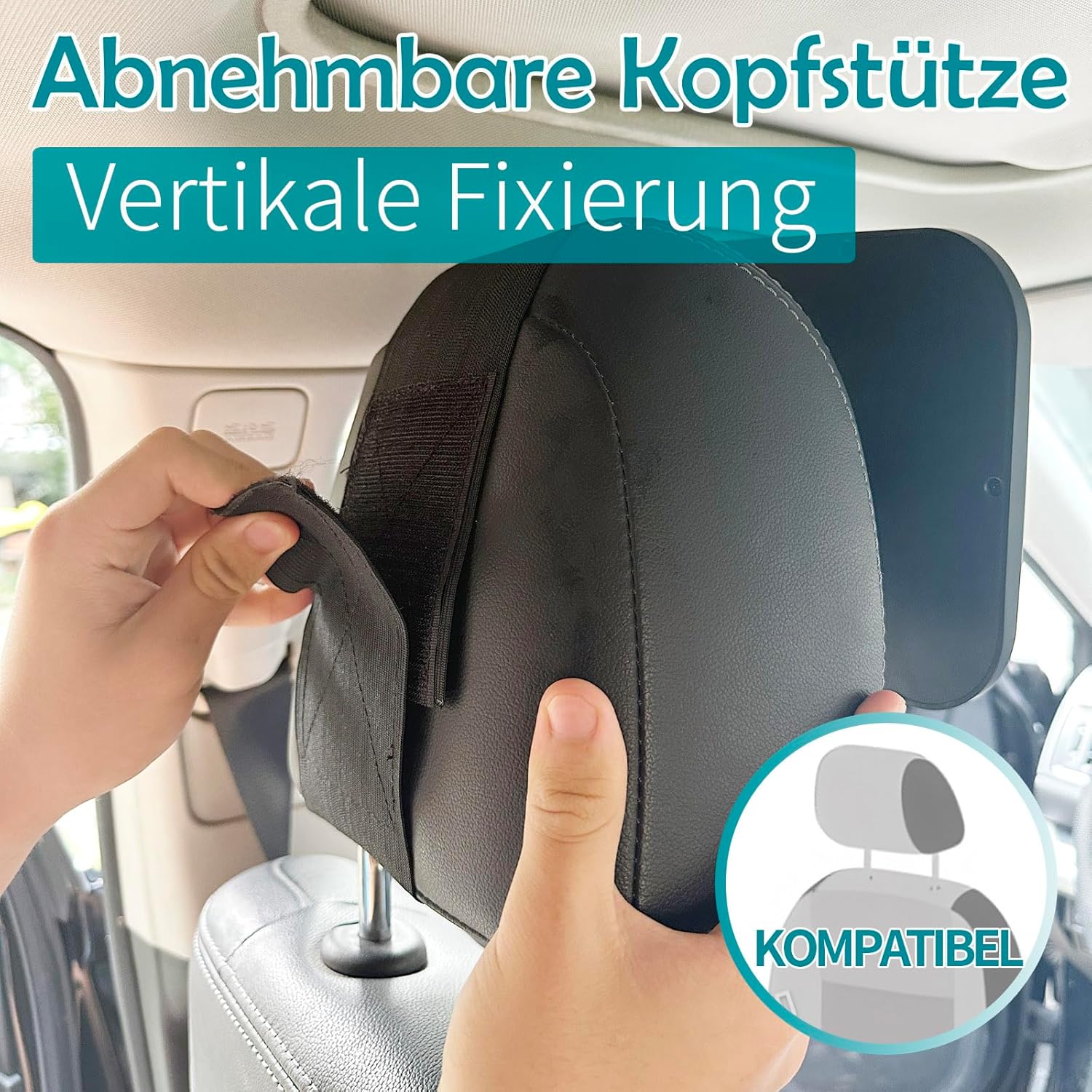 Фиксирано бебешко огледало за кола с облегалка за глава, съвместимо с огледала за обратно виждане за Tesla и други превозни средства, въртене на 360°, нечуплива пластмаса, широка еластична силиконова каишка, бърз монтаж