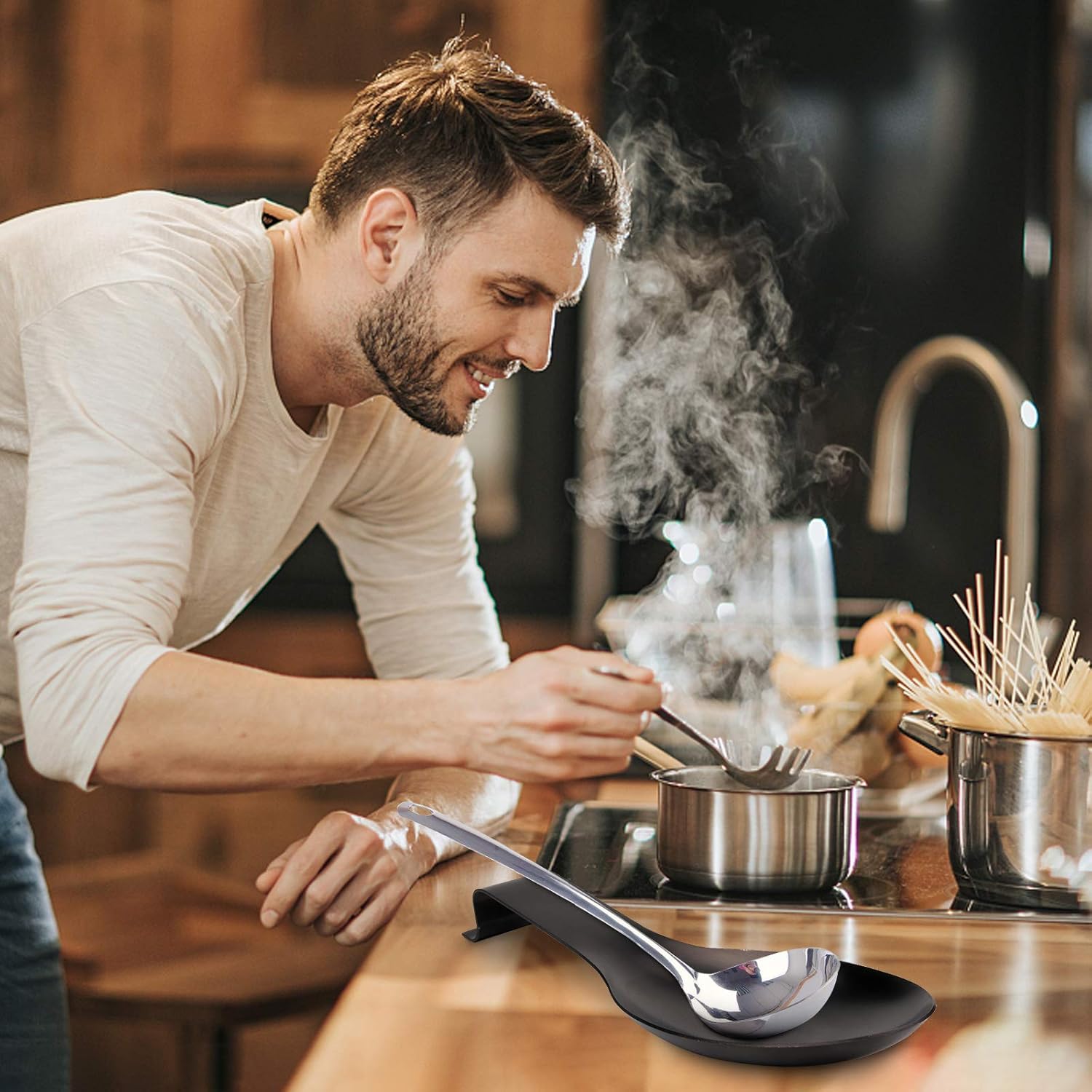 • Поддържайте работния си плот чист: Благодарение на формата си на лъжица, тази поставка за лъжица за котлона улавя всички капки и течности от вашите кухненски прибори, предпазвайки работния плот и котлона от петна и революционизирайки вашето готвене, печене или гриловане.