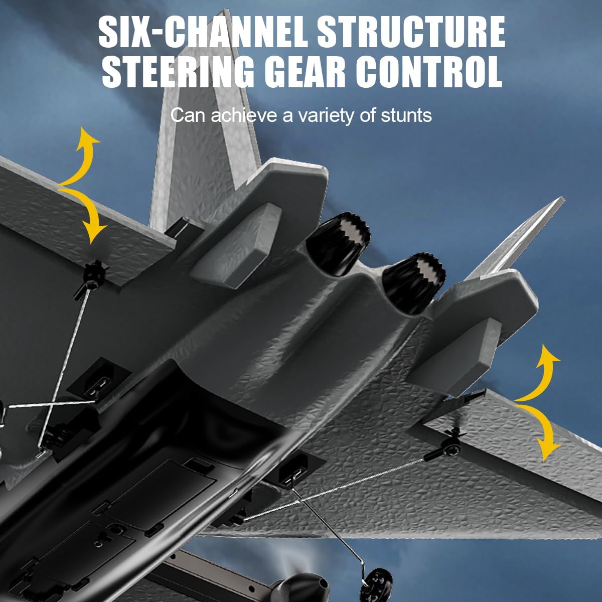• Гъвкави маневри за полет: Насладете се на неограничено забавление с нашия RC самолет, който позволява разнообразни движения на полет, включително изкачване, потъване, полети напред, назад, наляво и надясно, както и завъртания назад и на 360 градуса. Идеален за вълнуващи акробатични маневри.