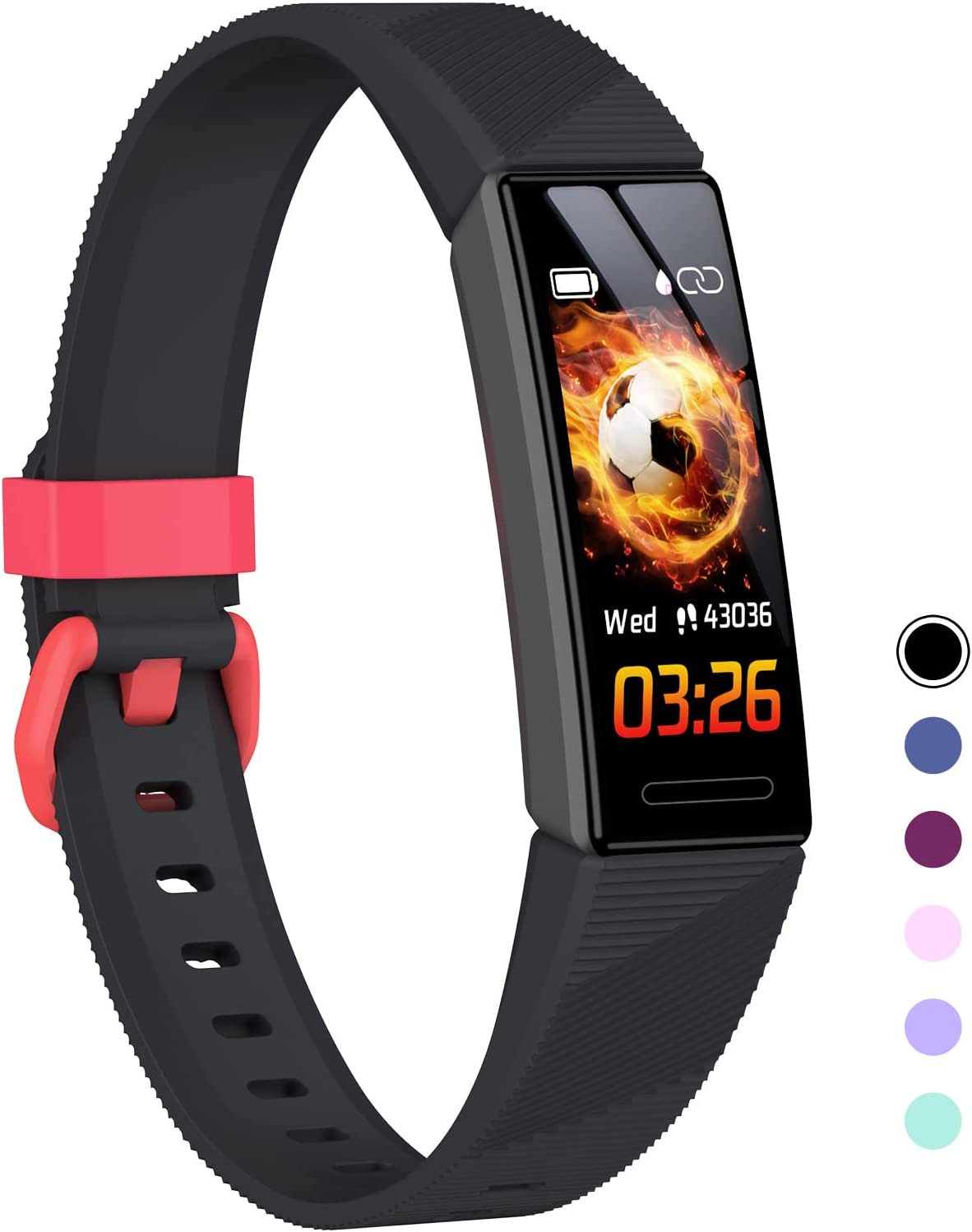 • Това е фитнес тракер, специално създаден за деца. Удобна, издръжлива силиконова каишка и сигурно регулируемо затваряне, налични в много различни красиви цветове. Децата също могат да избират предпочитаните от тях 8 различни тематични интерфейса. Регулируемите каишки за часовник пасват на 5-7,5 инча китка.