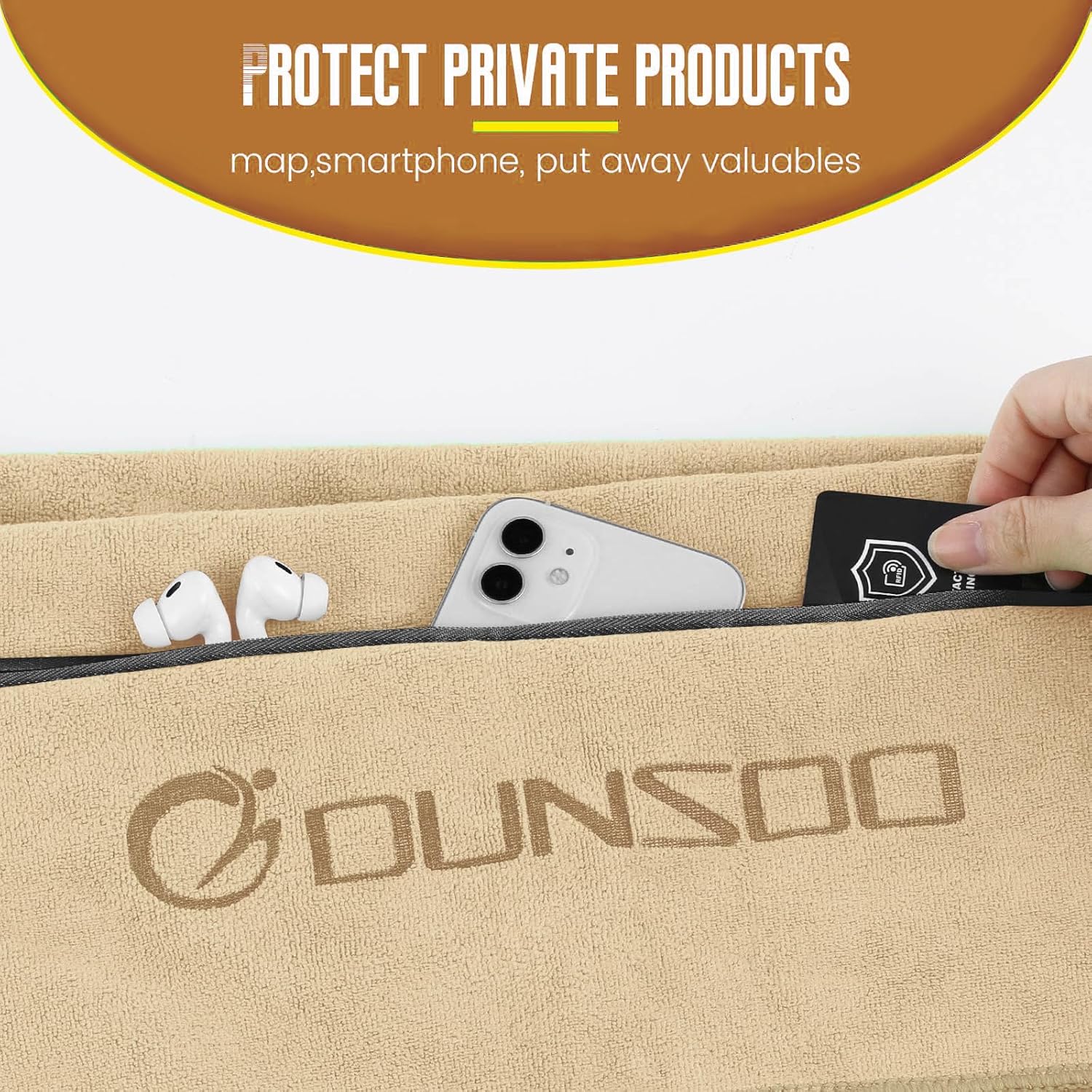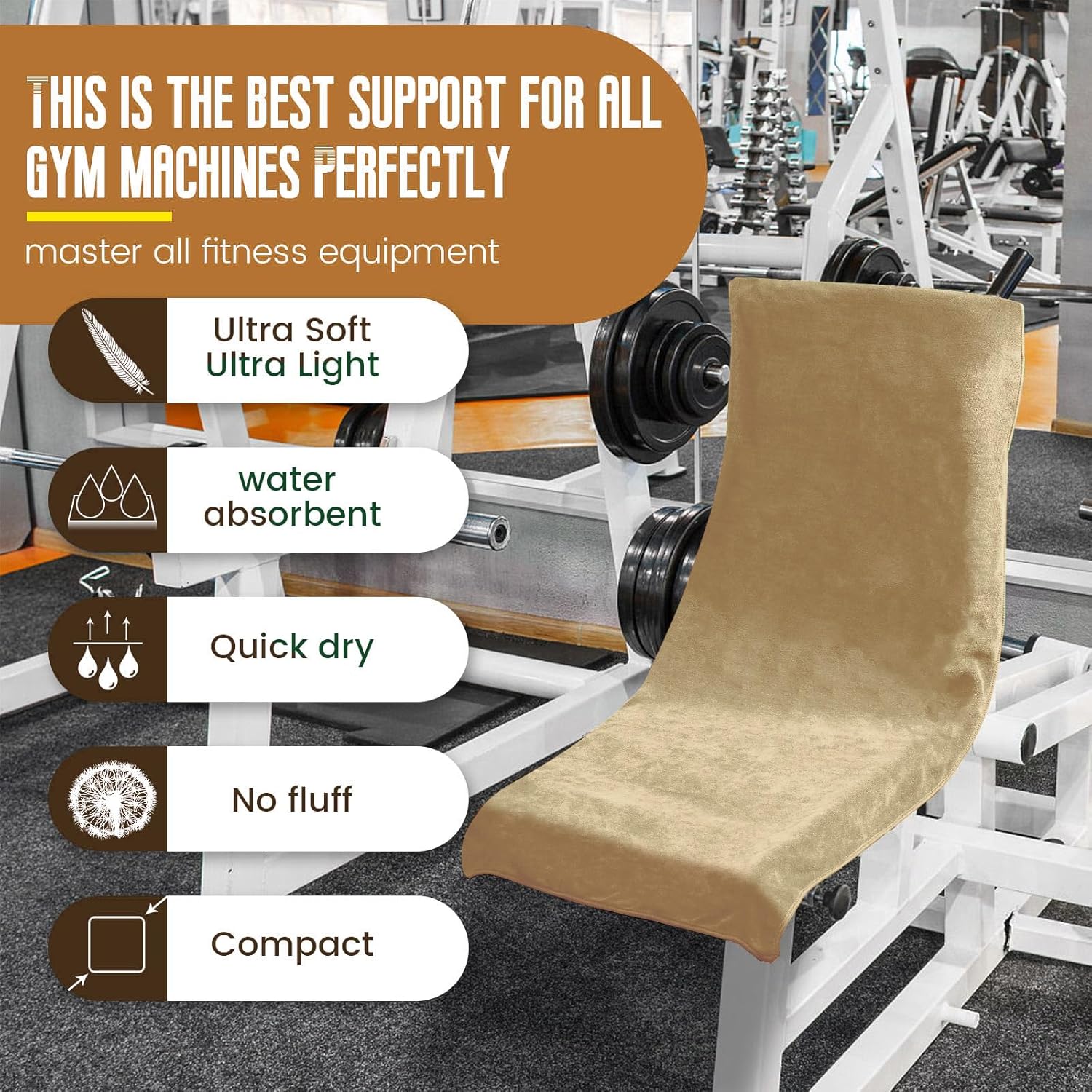 • Идеален размер за фитнес – фитнес кърпа DUNSOO с дължина 120 см и ширина 50 см, дизайн с качулка, перфектна за покриване на фитнес аксесоари и захващане за облегалката на седалката.