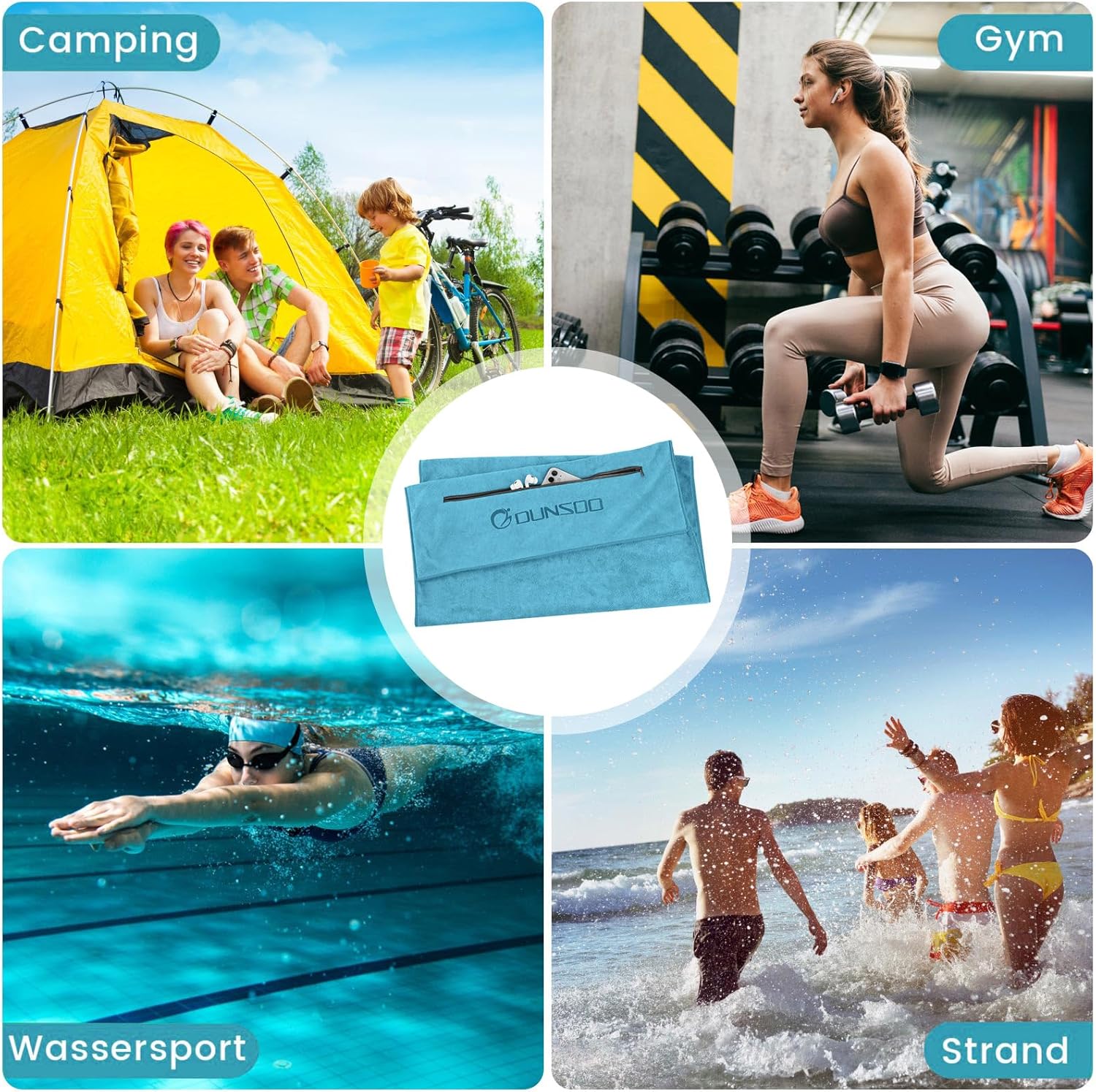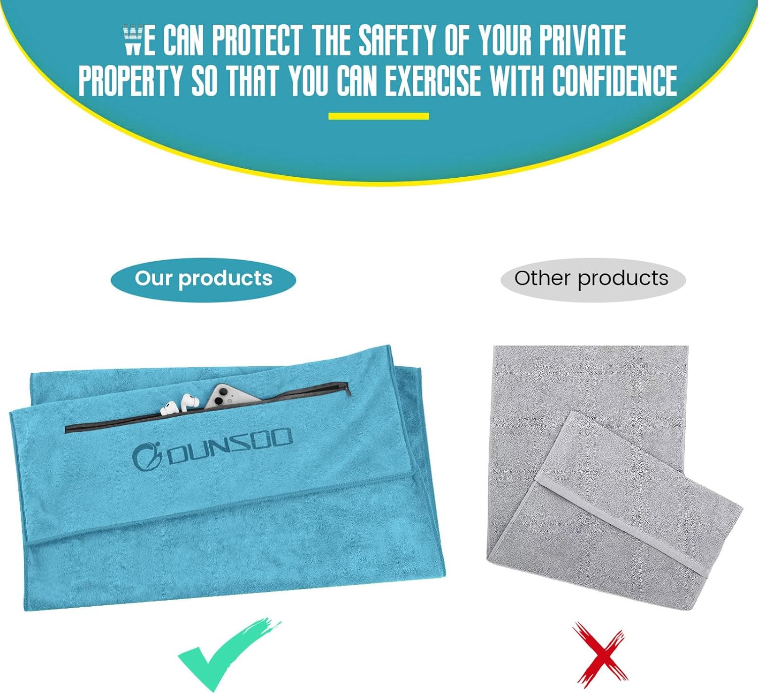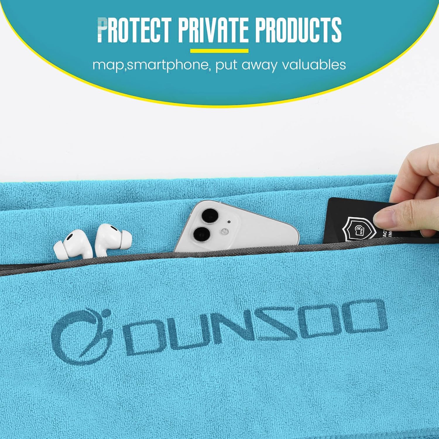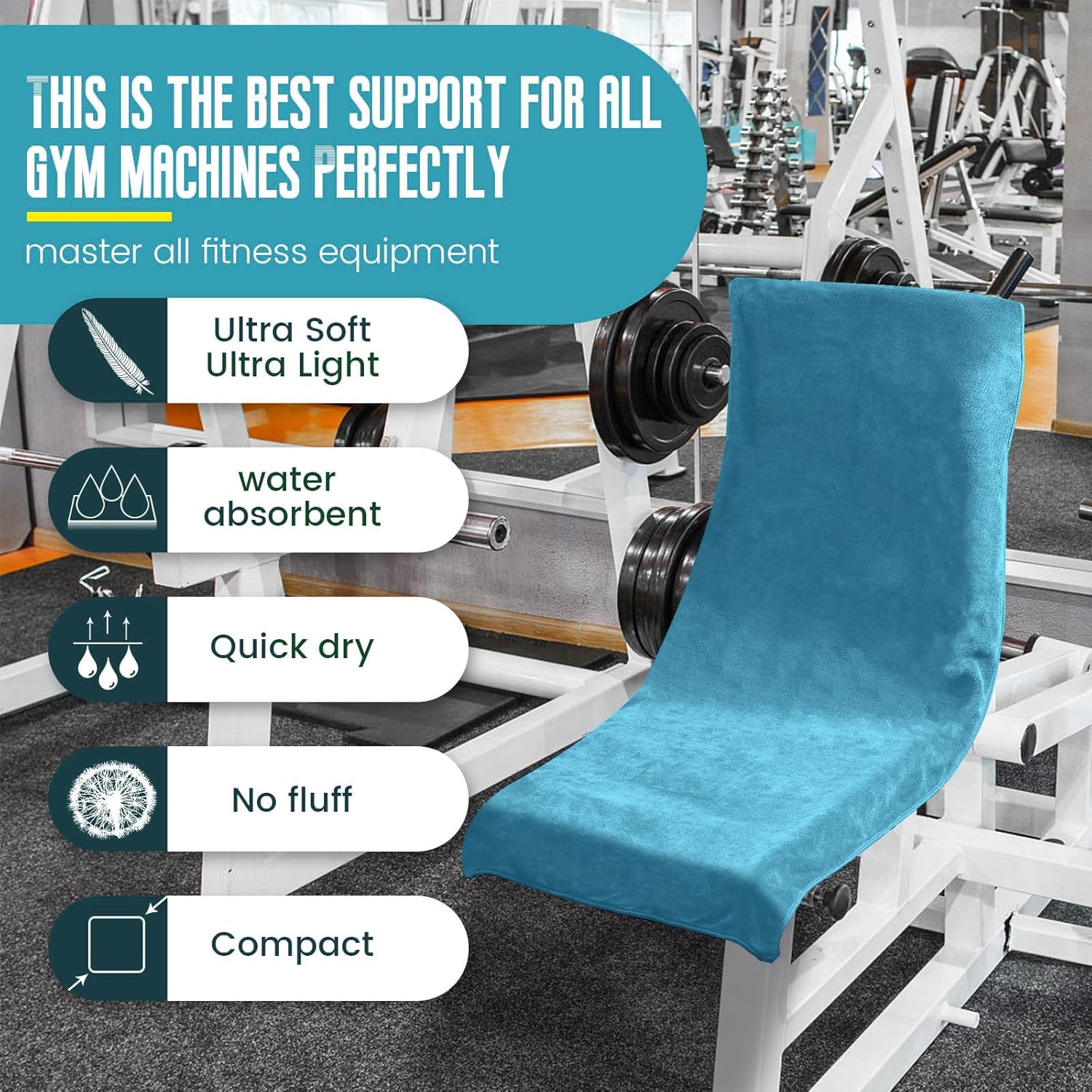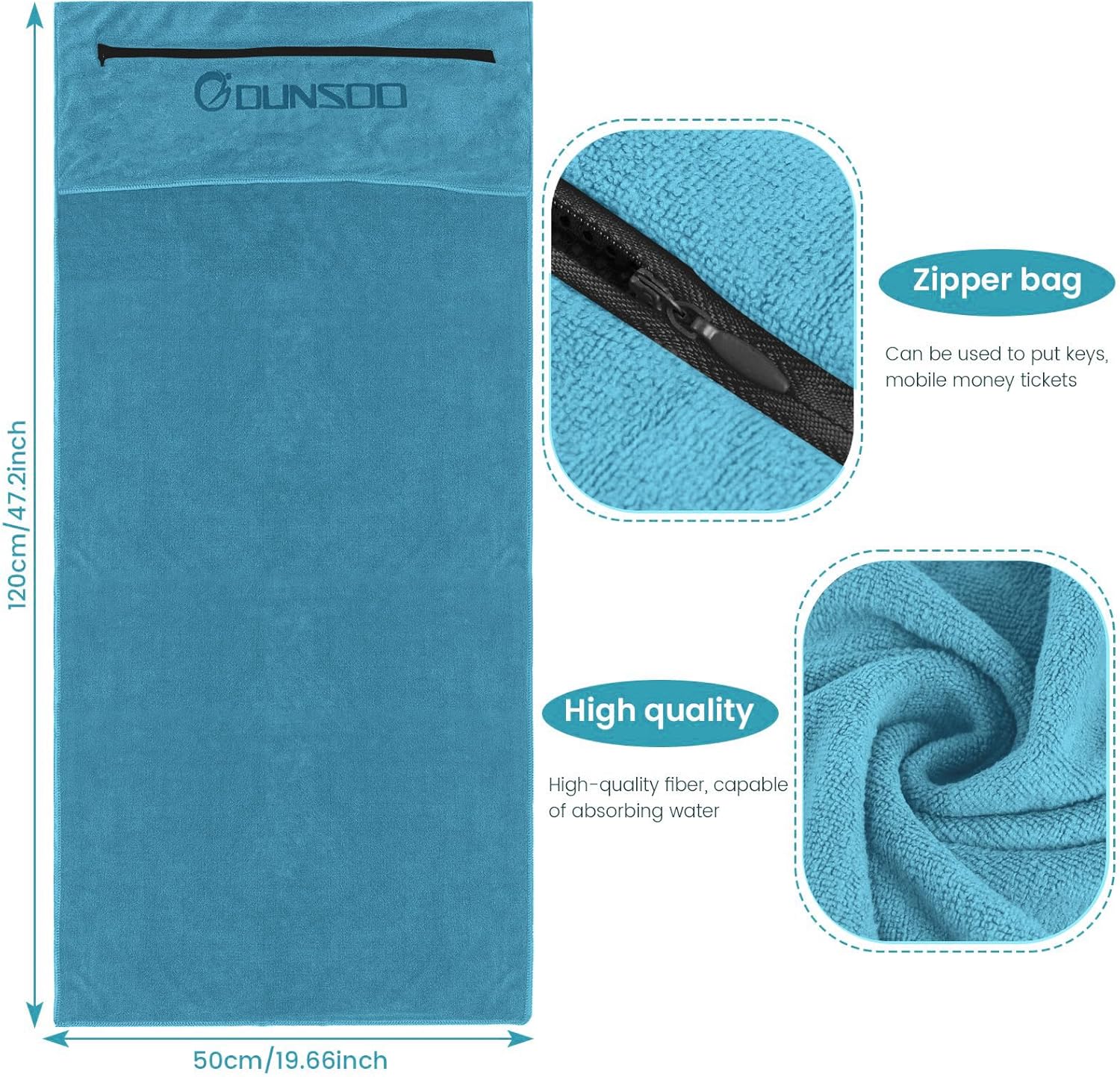 • Идеален размер за фитнес – фитнес кърпа DUNSOO с дължина 120 см и ширина 50 см, дизайн с качулка, перфектна за покриване на фитнес аксесоари и захващане за облегалката на седалката.
