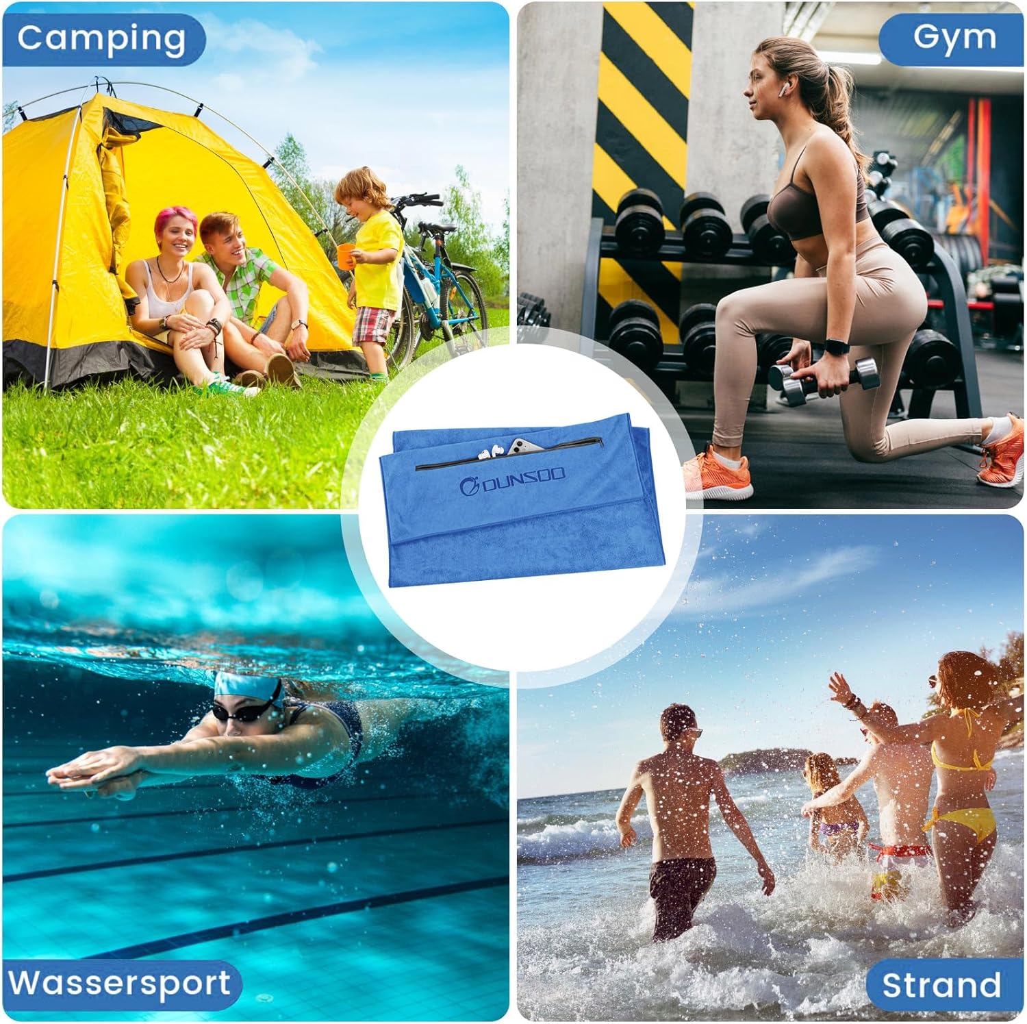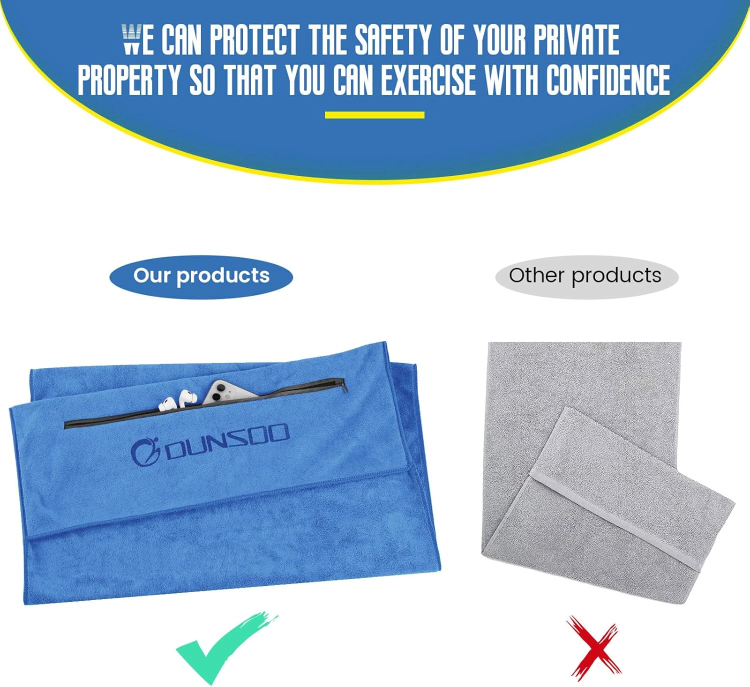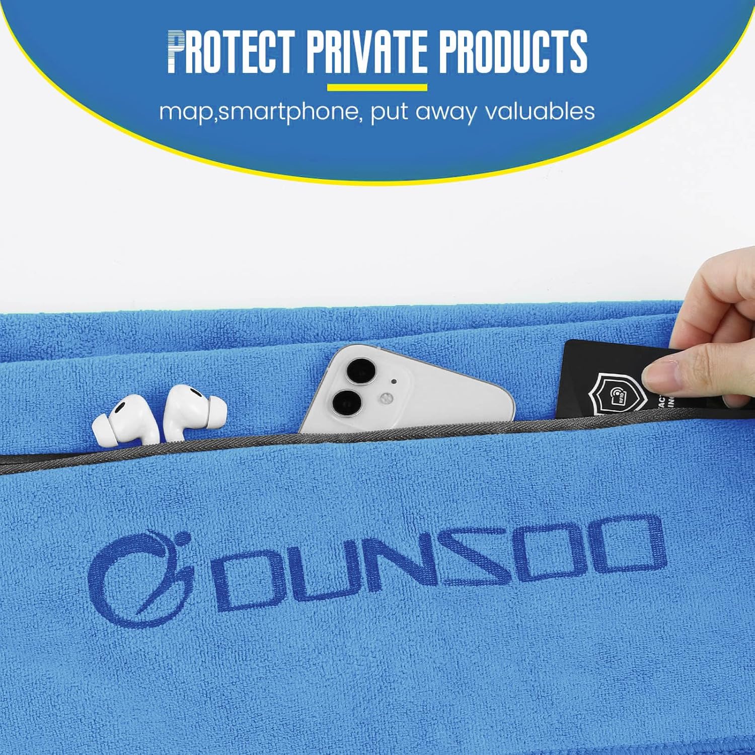 • Идеален размер за фитнес – фитнес кърпа DUNSOO с дължина 120 см и ширина 50 см, дизайн с качулка, перфектна за покриване на фитнес аксесоари и захващане за облегалката на седалката.