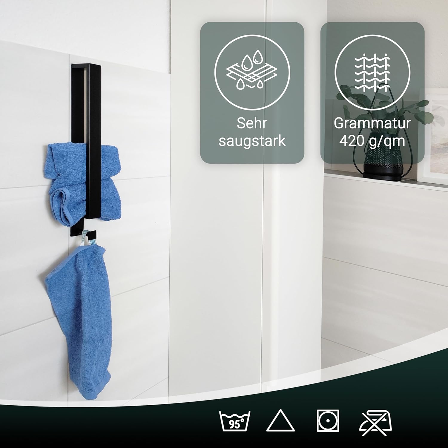 Благодарение на липсата на бордюр, се осигурява трайно стабилна форма на кърпите за гости.