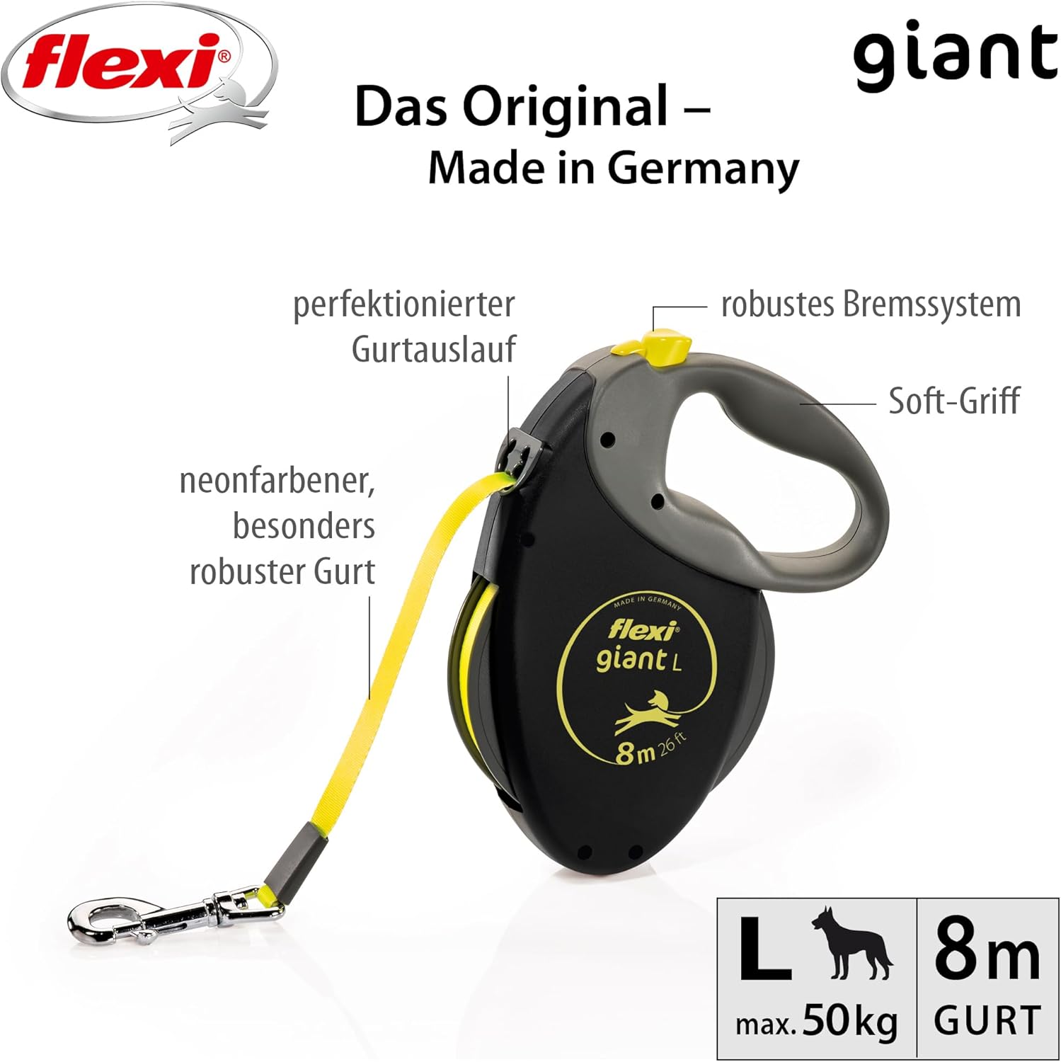 Колкото по-дълга е каишката, толкова по-важна е добрата ѝ видимост. Неоновата каишка също е лесно видима от разстояние.