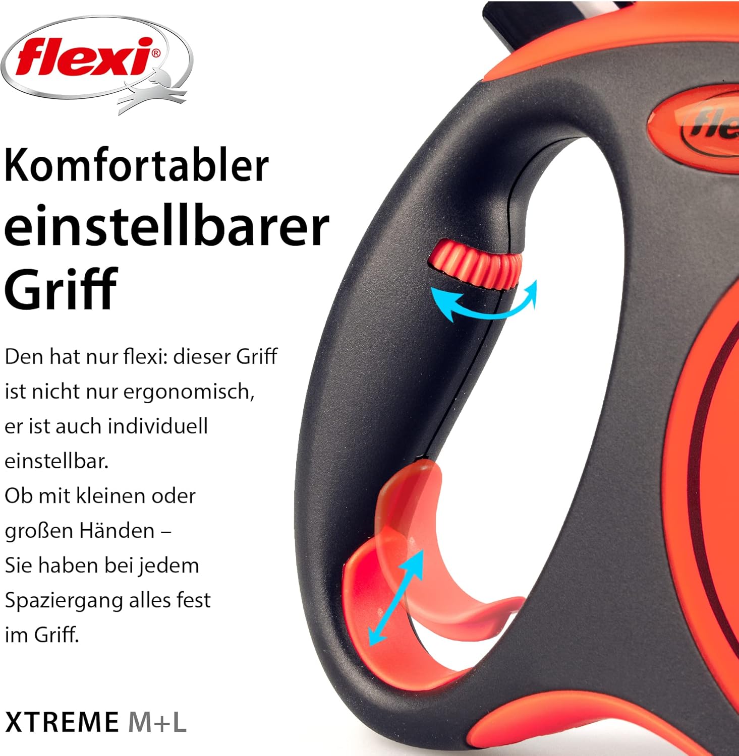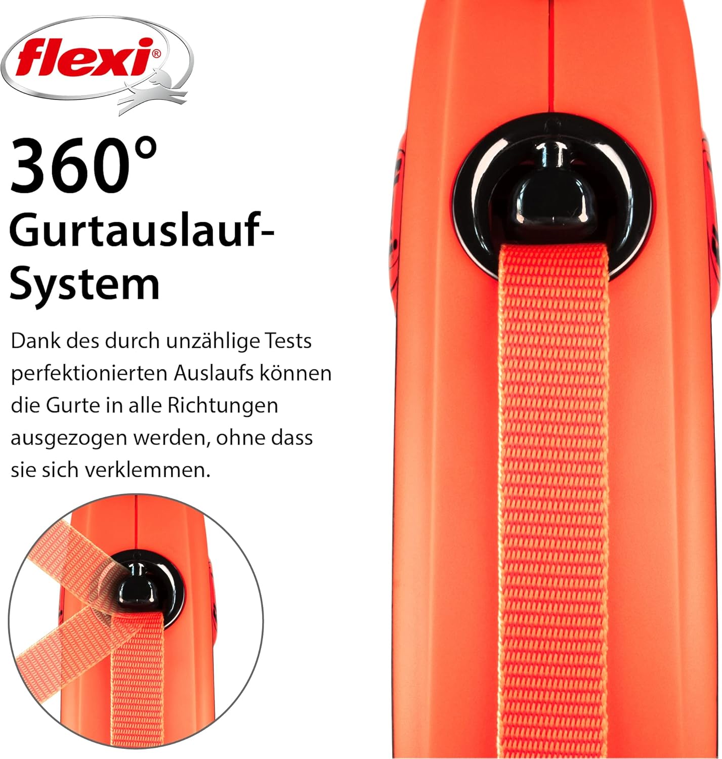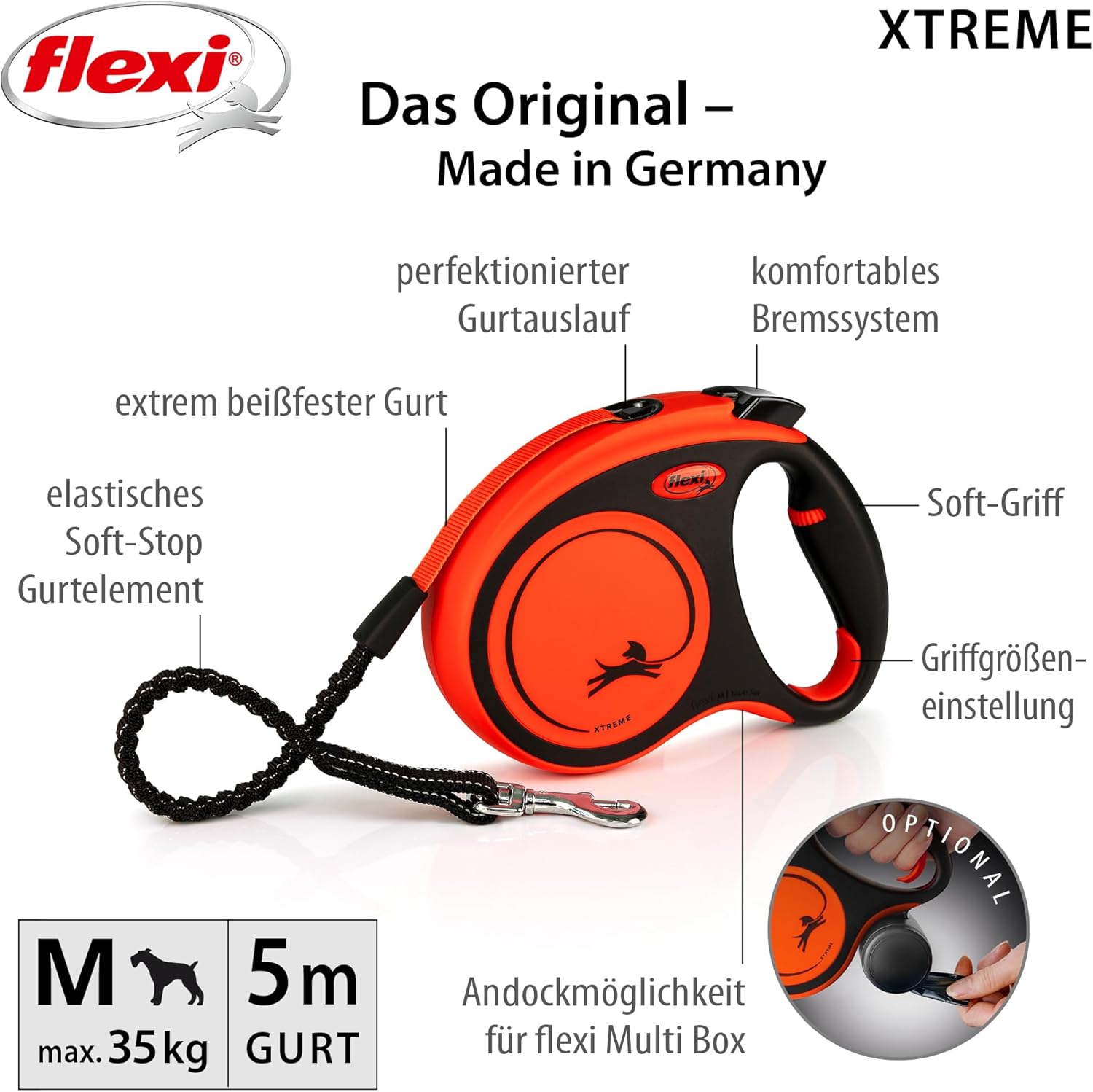 flexi® Xtreme M Belt 5 м Черен, изключително устойчив на ухапване, оранжев, изключително здрав, на руло, повод за кучета до 35 кг