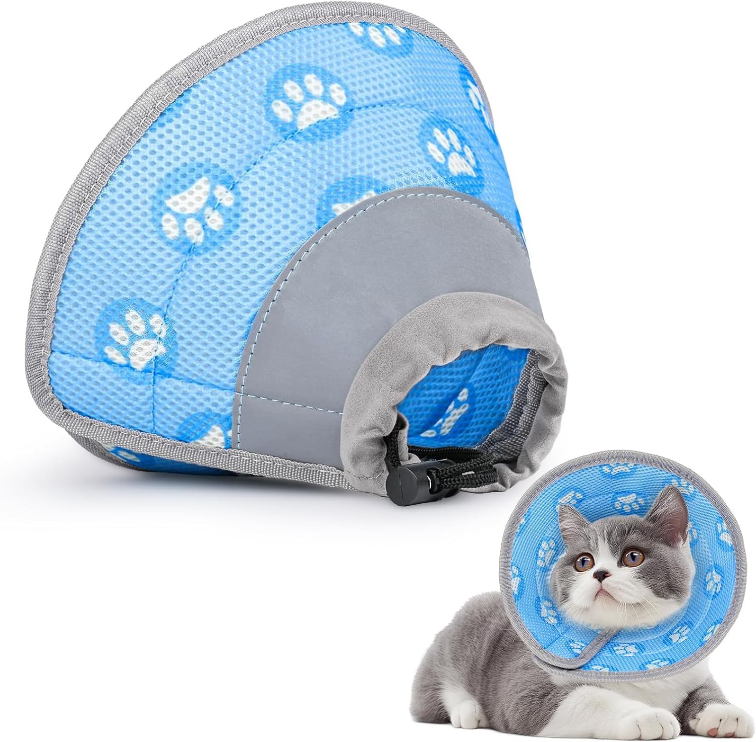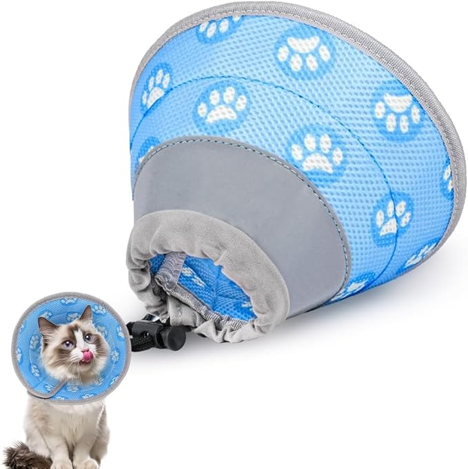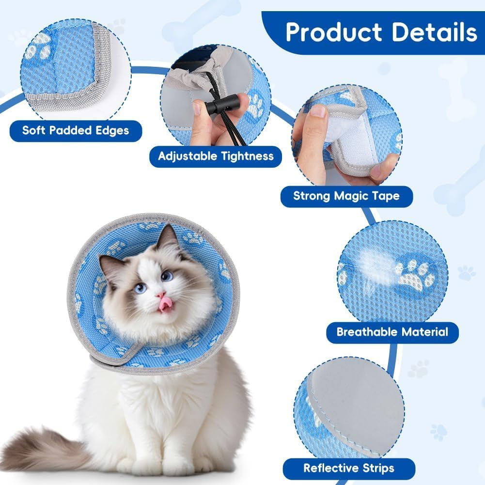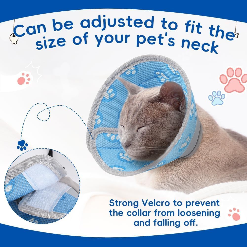 • 【Регулируема конусна каишка за котки】 Благодарение на здравото велкро закопчаване, конуснатата каишка за котки може да се закрепи бързо и сигурно и няма да се плъзга. Лесно се поставя и сваля. Регулируемата каишка ви позволява да я адаптирате към размера на врата на вашия домашен любимец, като по този начин осигурявате максимален комфорт.