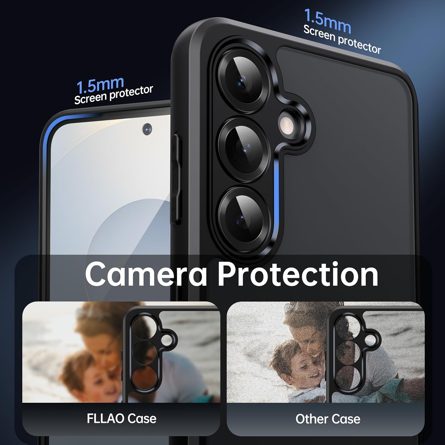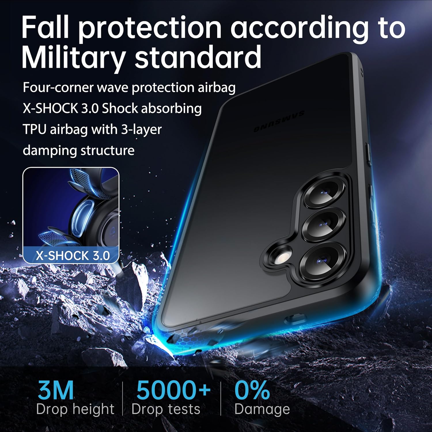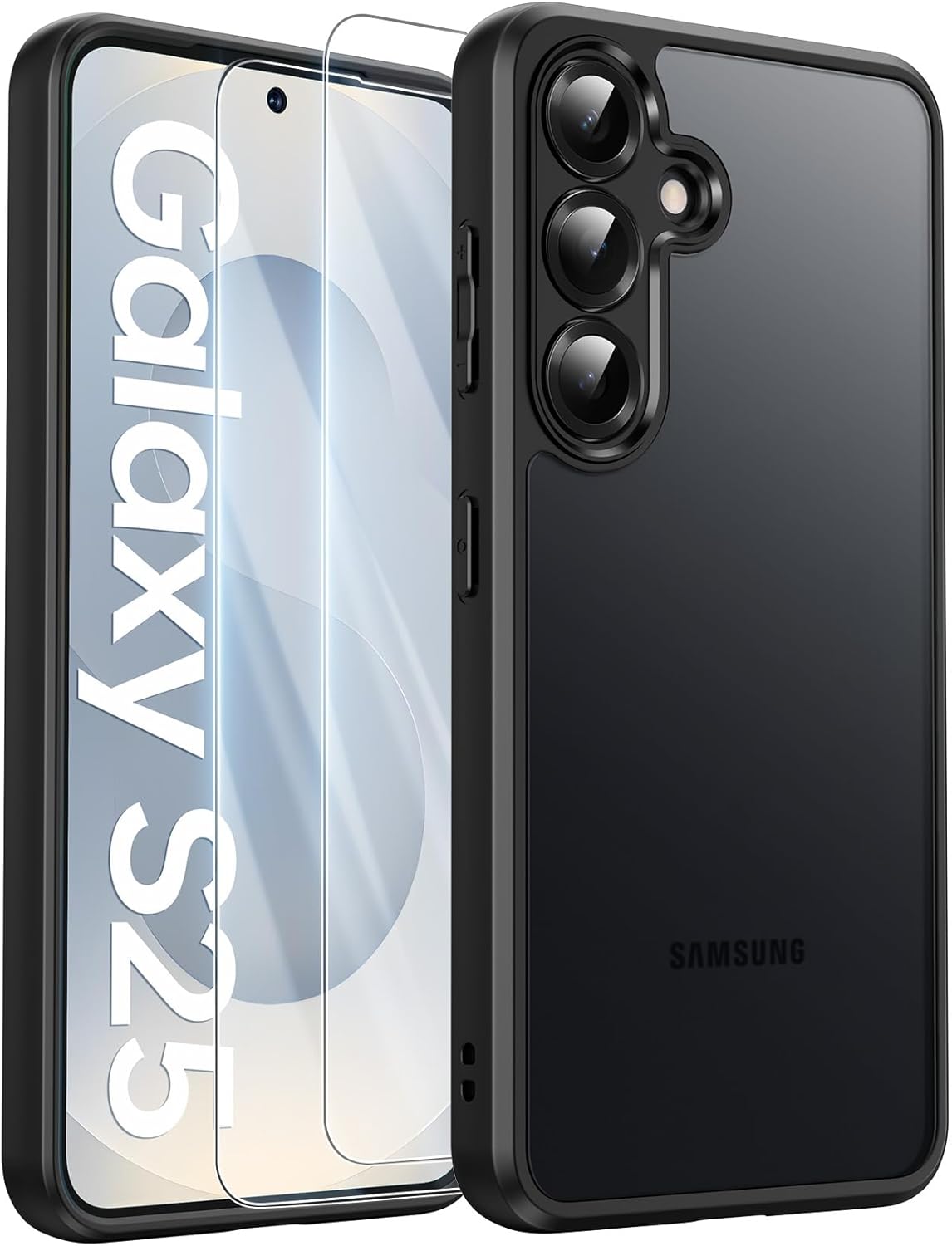 FLLAO Матов калъф за мобилен телефон за Samsung Galaxy S25 и 2 протектора за екран със защита на камерата [Военен стандарт за защита] Прозрачен PC гръб TPU bumper калъф за Samsung Galaxy S25 5G -