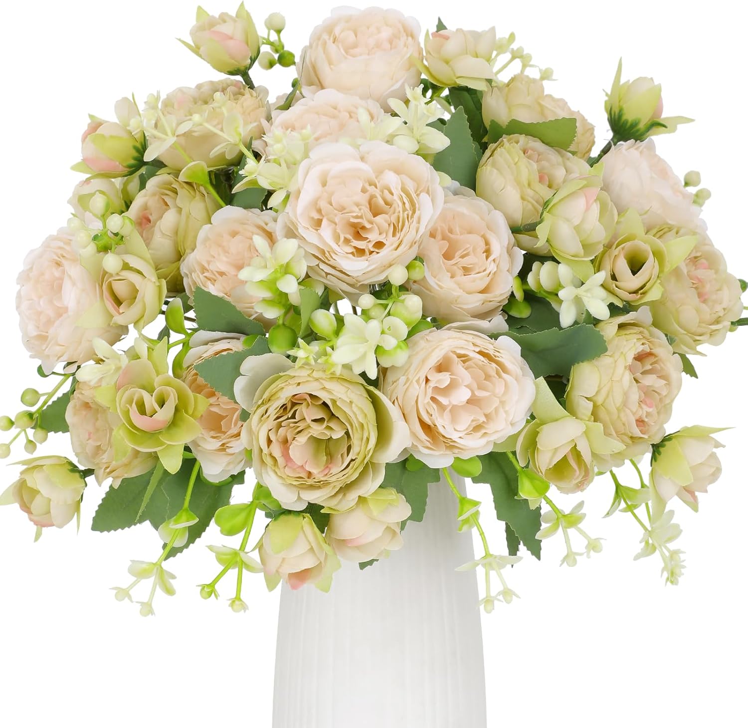• Издръжливи и лесни за грижа: изкуствените божури не изискват вода или слънчева светлина, нямат мъртви листа. Лесни за почистване и премахване на прах. Букетът, направен от изкуствени божури, е чудесна алтернатива за тези от нас, които нямат време да се грижат за изкуствени цветя. Не е нужно да прекарвате много време с цветя. Изкуствените букети не са сезонни, можете да им се наслаждавате през цялата година.