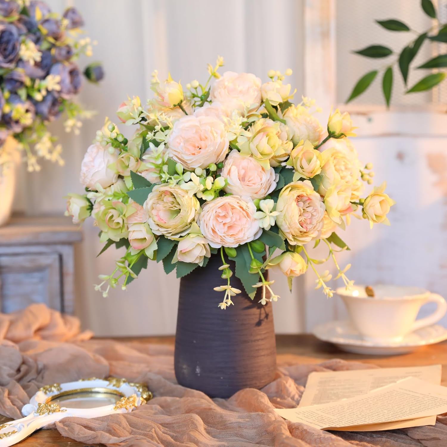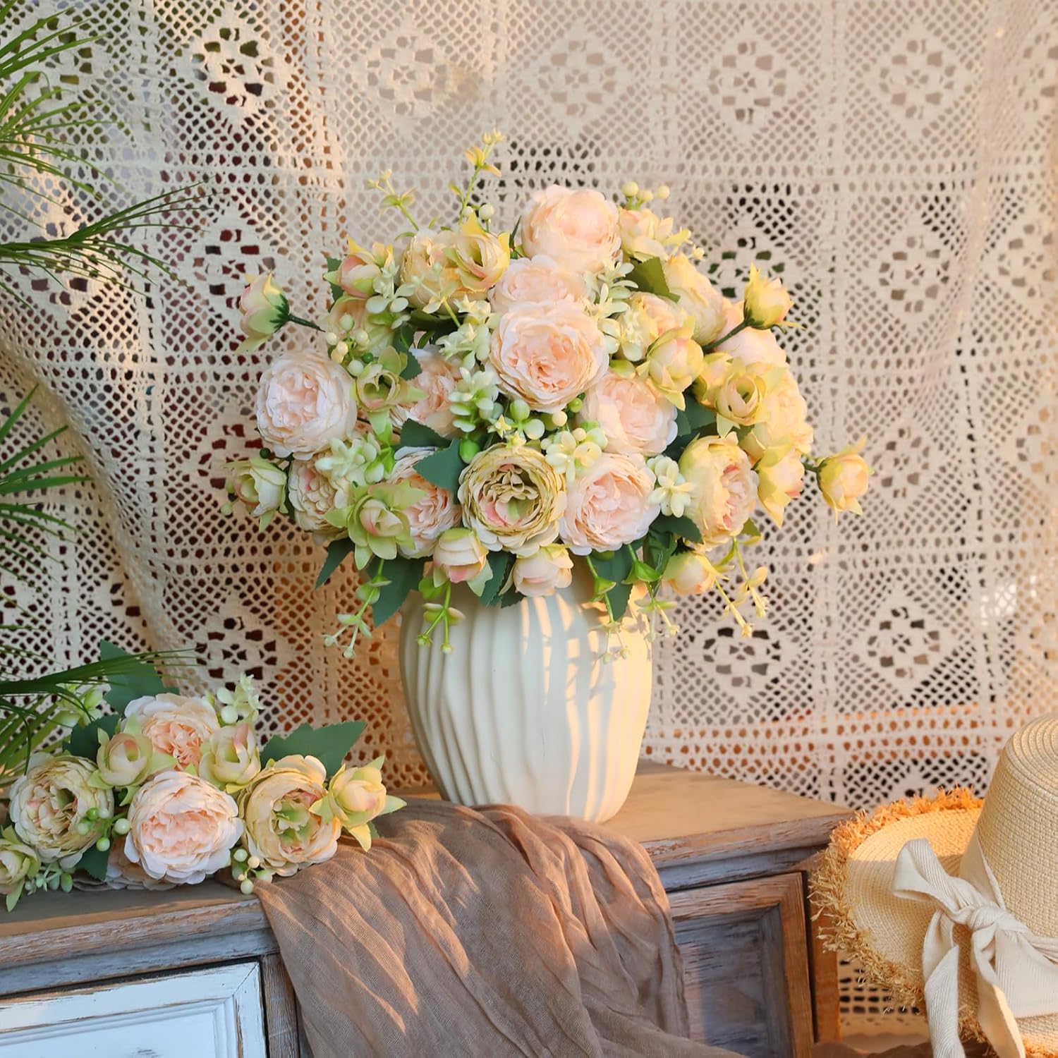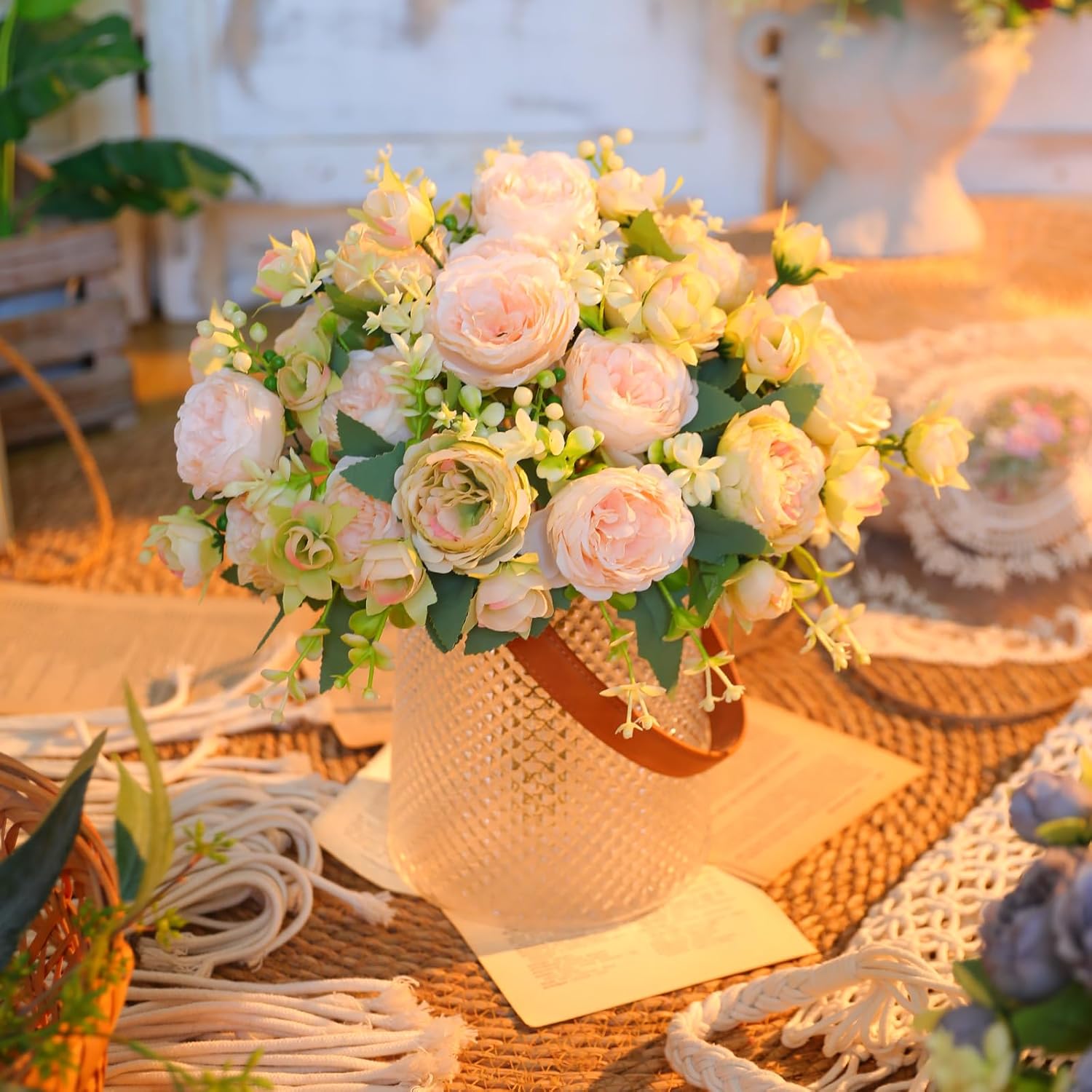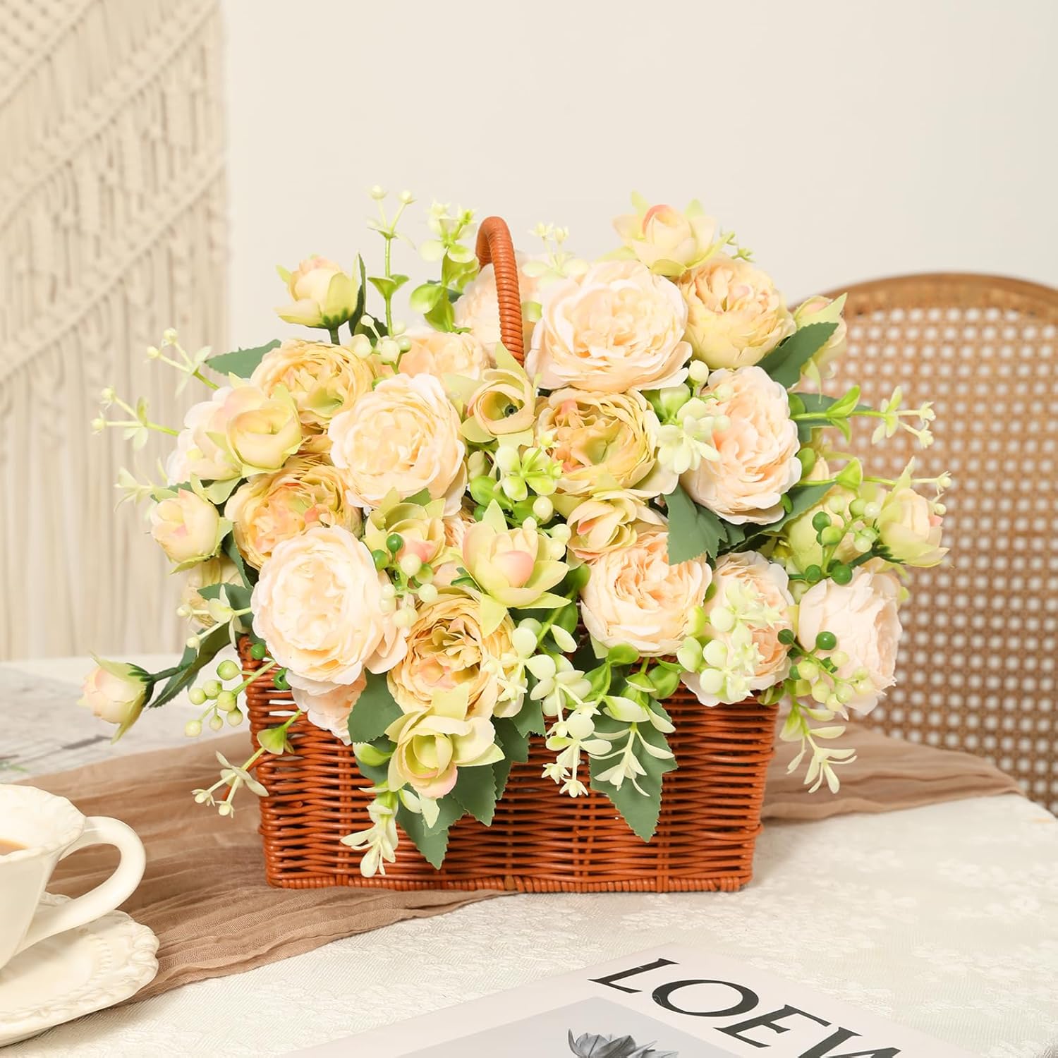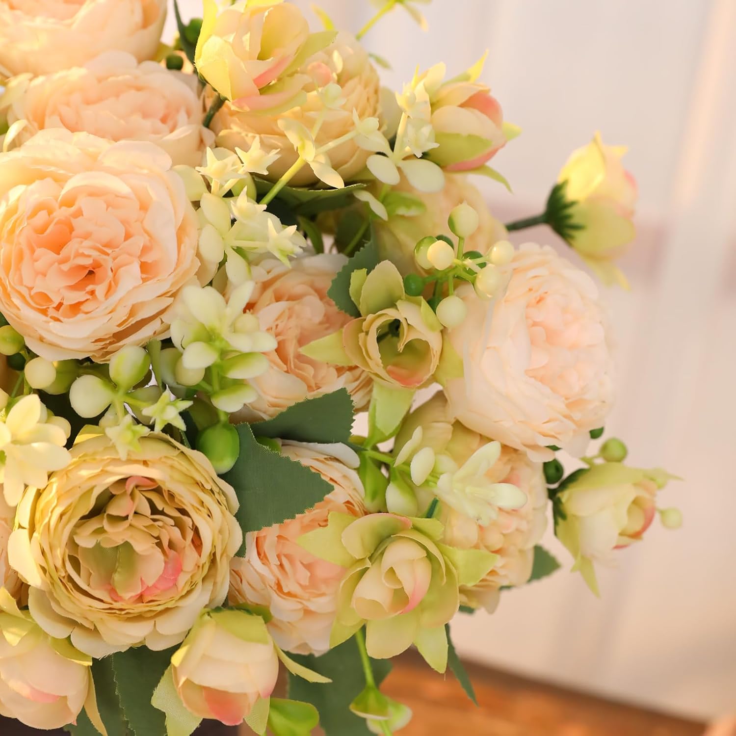 • Издръжливи и лесни за грижа: изкуствените божури не изискват вода или слънчева светлина, нямат мъртви листа. Лесни за почистване и премахване на прах. Букетът, направен от изкуствени божури, е чудесна алтернатива за тези от нас, които нямат време да се грижат за изкуствени цветя. Не е нужно да прекарвате много време с цветя. Изкуствените букети не са сезонни, можете да им се наслаждавате през цялата година.