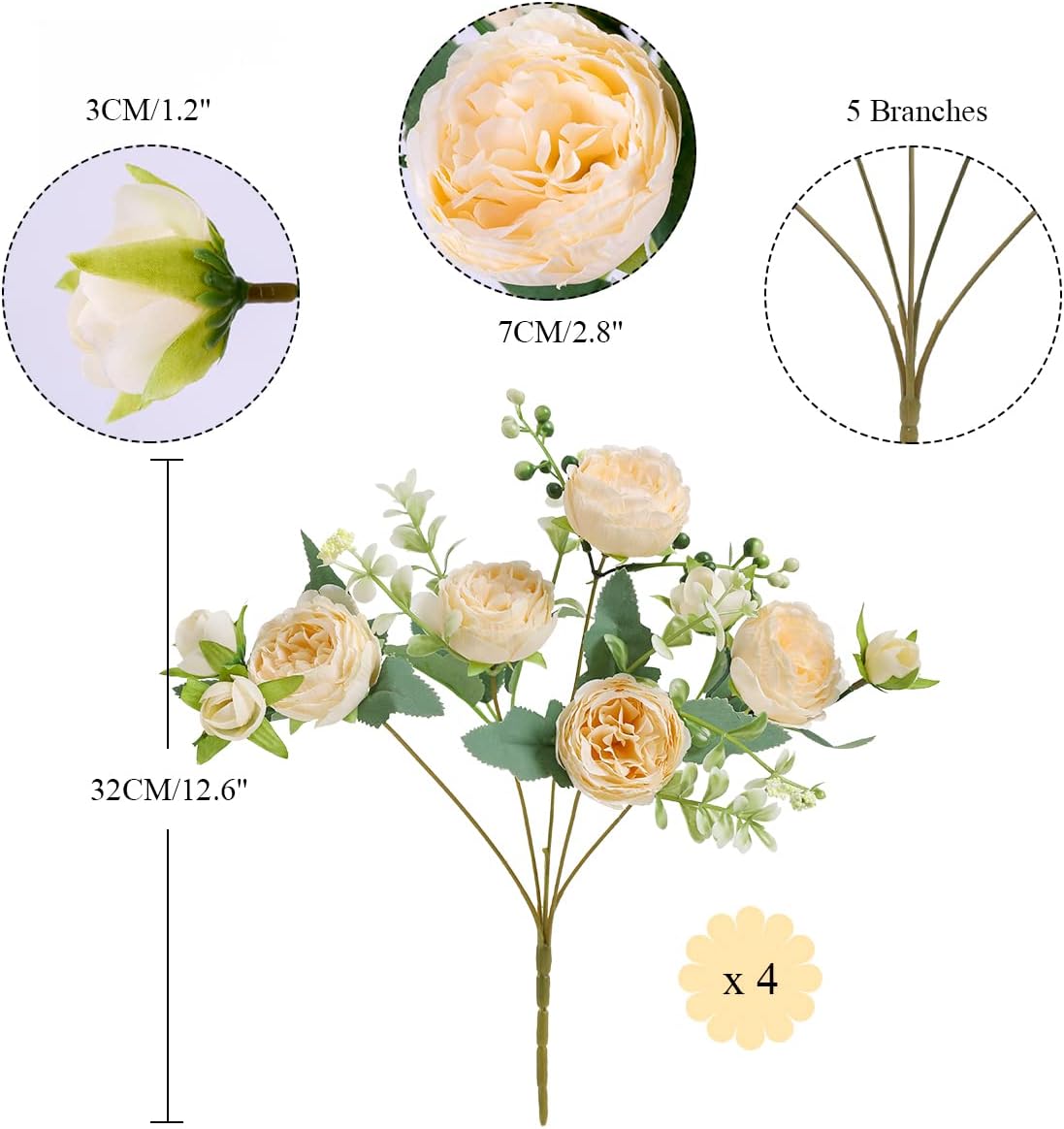Floweroyal 4 връзки Божури Изкуствени цветя Шампанско Цветя Копринени букети от божури за сватбено парти маса Централни елементи Цветна аранжировка Декор за дома и кухнята