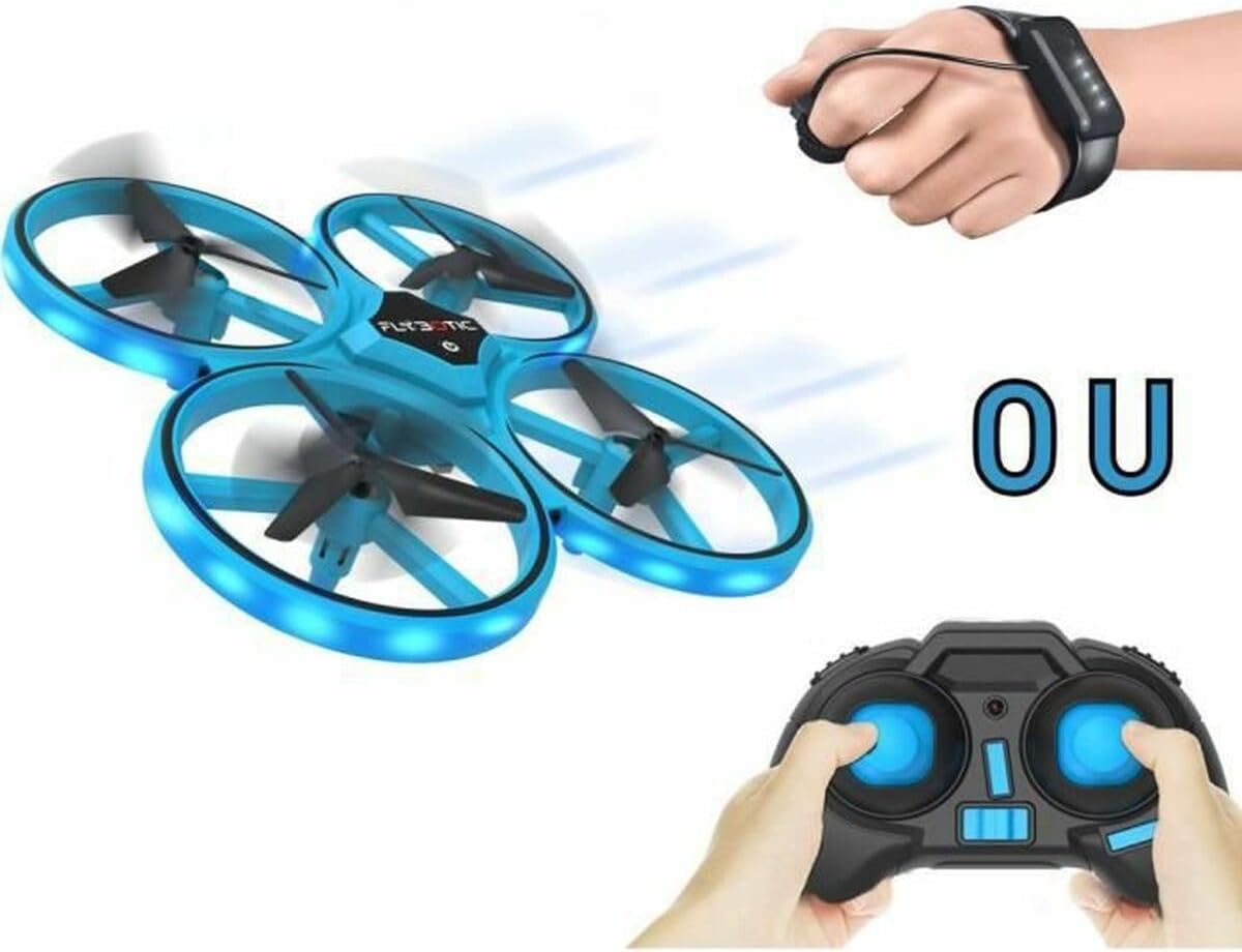 Детето ви винаги ли е мечтало да лети с дрон? Подарете му Мигащия дрон. Идеален за деца! Изключително лесен е за управление! Класически с дистанционно управление или на китката с движения. Мигащият дрон може да се управлява на тъмно благодарение на своите светодиоди. Ефектът Wahou е гарантиран на тъмно. Технологията 2.4 GHz позволява по-добра реакция на управлението, обхват от 30 метра, което предлага възможност за игра както на открито, така и на закрито, и накрая можете да управлявате дрона си с 10 играчи едновременно, без риск от смущения. Предизвикайте себе си и се състезавайте с приятелите си! За да работи, дронът е оборудван с батерия. Батерията се доставя с дрона. Дистанционното управление изисква 3 AAA батерии, за да работи. Батериите не са включени в този продукт. Батерията се зарежда приблизително 50 минути, а времето за работа е приблизително 5 минути. Включена е и гривна за управление на дрона. Препоръчваме употребата му от 5-годишна възраст.