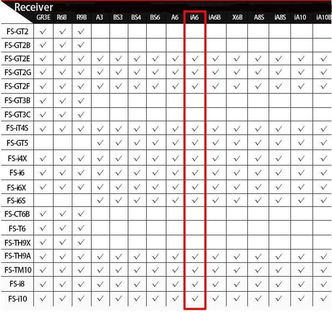 • Подходящи предаватели и модели: Flysky FS-i6 FS-i6S FS-i6X FS-i10 FS-GT2E FS-GT2F FS-GT2G FS-it4S FS-GT5 FS-i8 FS-TM10 предавател.
