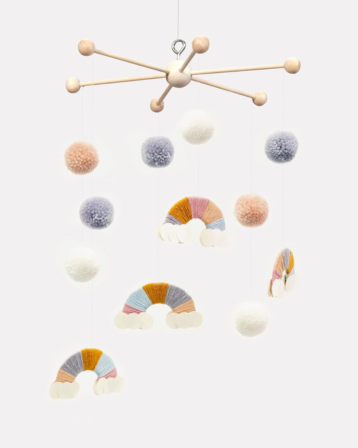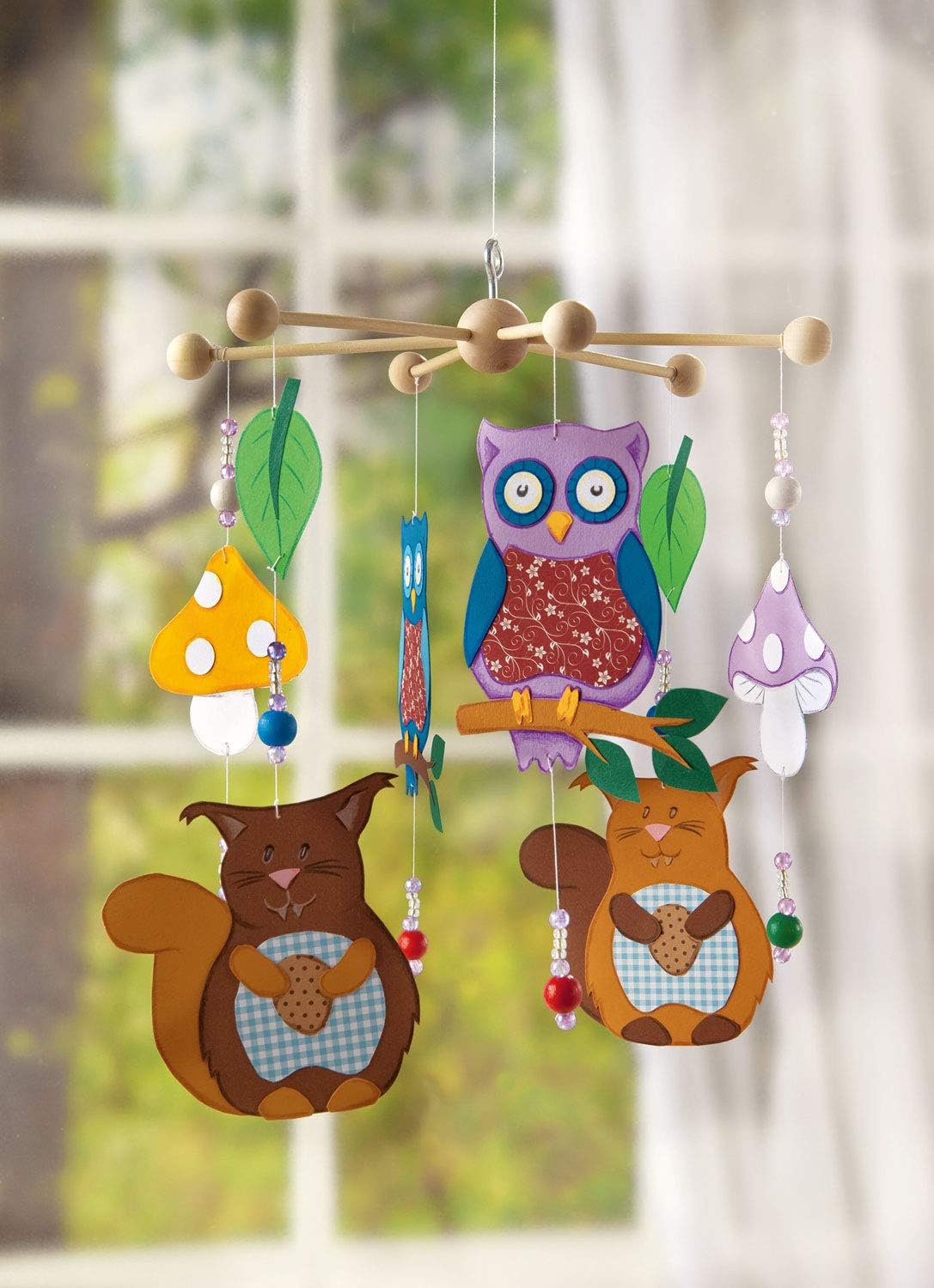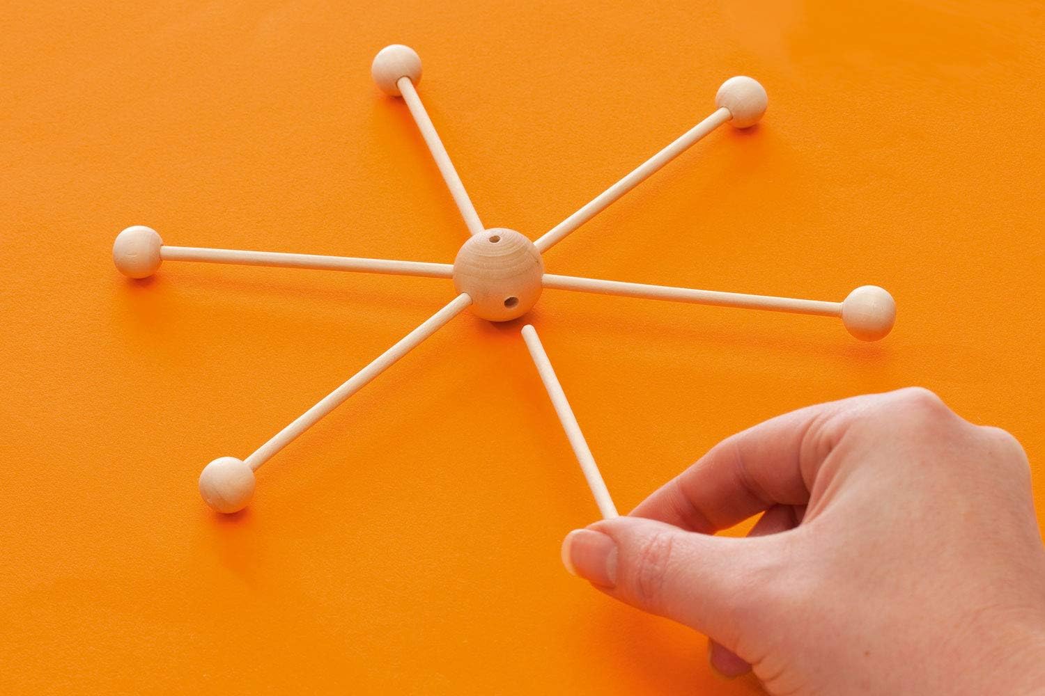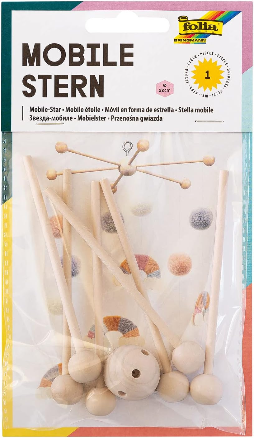 folia 2280 - Дървена мобилна звезда, 6 рамена, за сглобяване, с метални куки за окачване, диаметър приблизително 22 см, идеална за мобилни устройства „Направи си сам“