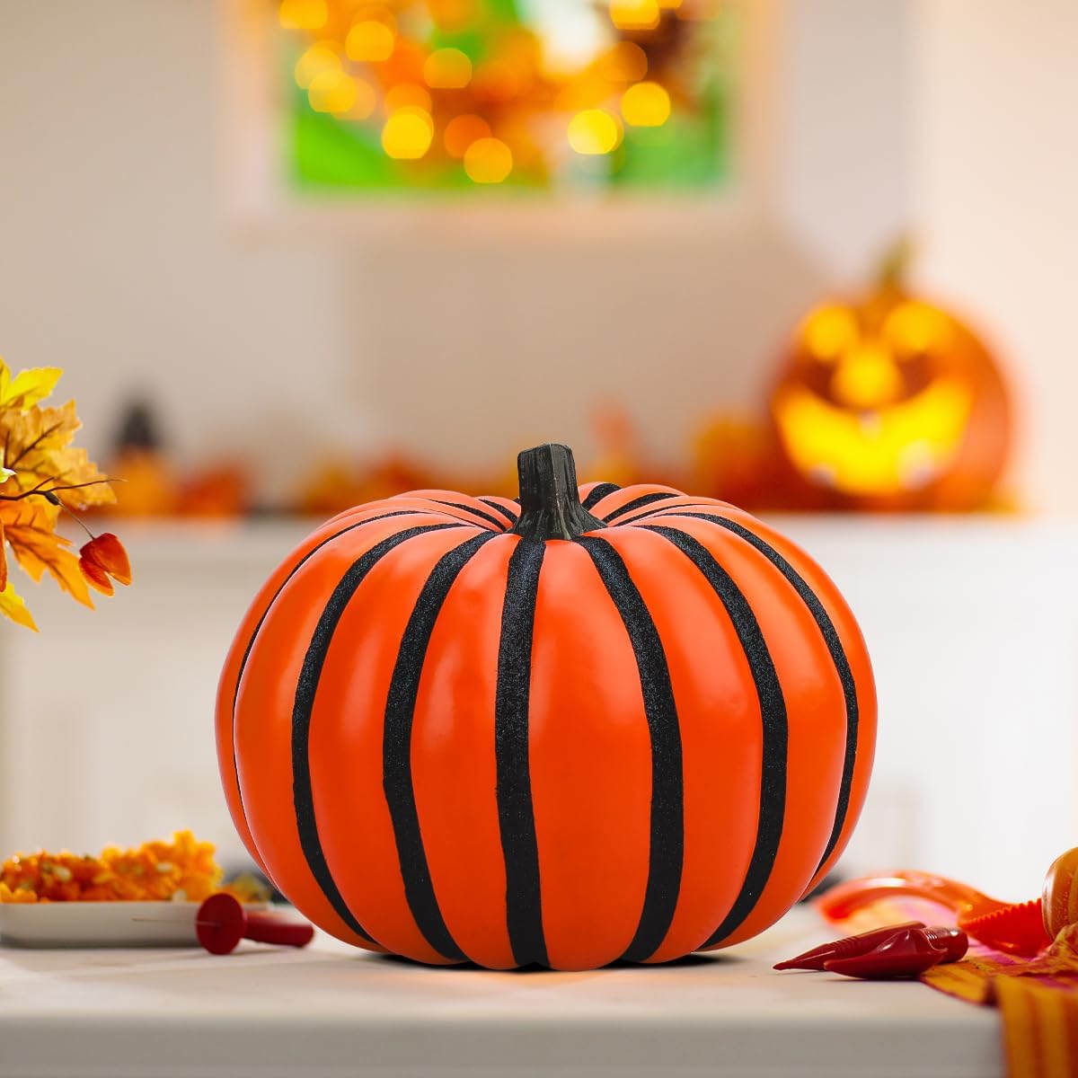 • Класическа декорация с тиква: Изкуствените тикви са много подходящи за декорация на маса за Деня на благодарността, рожден ден, есенни партита за Хелоуин, Деня на благодарността, Коледа. Можете да ги използвате и във вашите вили, камини, кафенета, сватби и рождени дни.