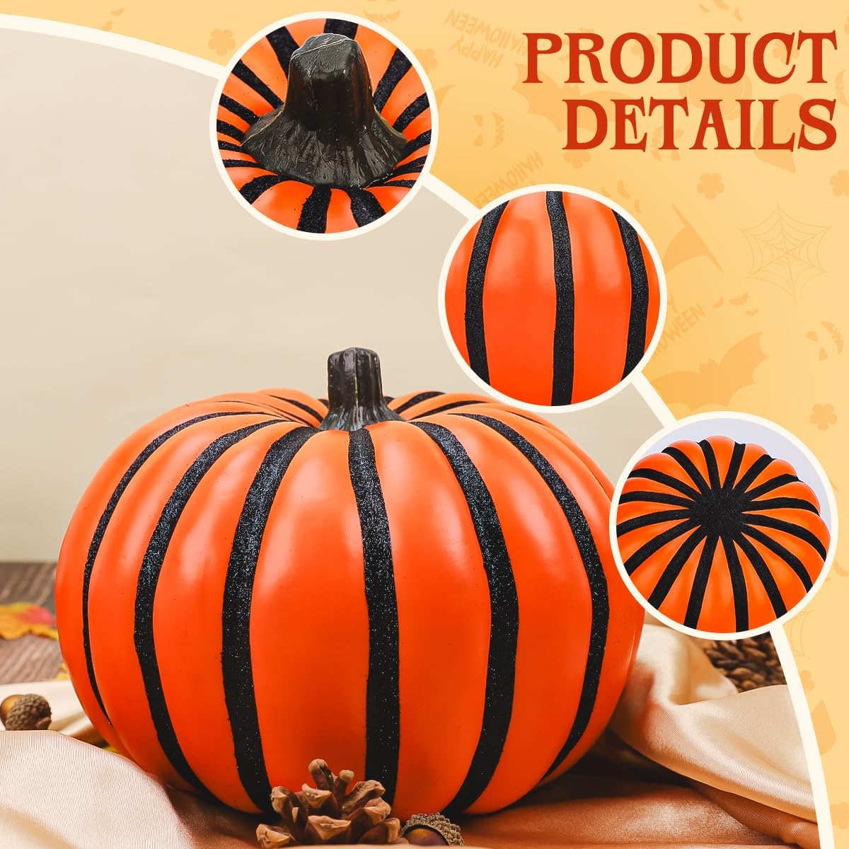 • Уникални тикви с шарка: Уникалният дизайн на точки прави тези тикви да изглеждат много красиви и шикозни. Тези изкуствени тикви са идеални за детски партита с фенери за Хелоуин или за украса за Деня на благодарността. Различният им вид в сравнение с другите тикви допринася за всяко празнично настроение.
