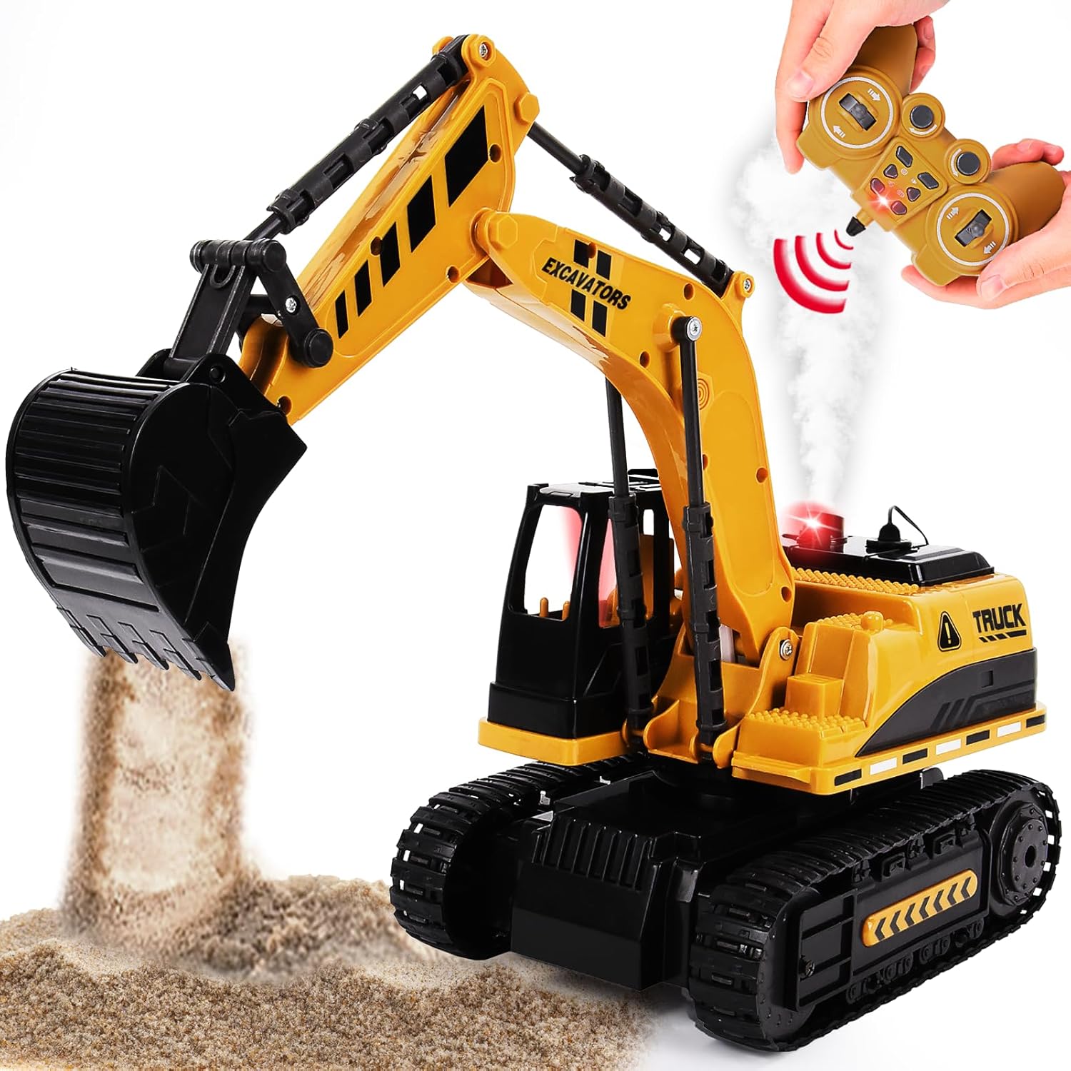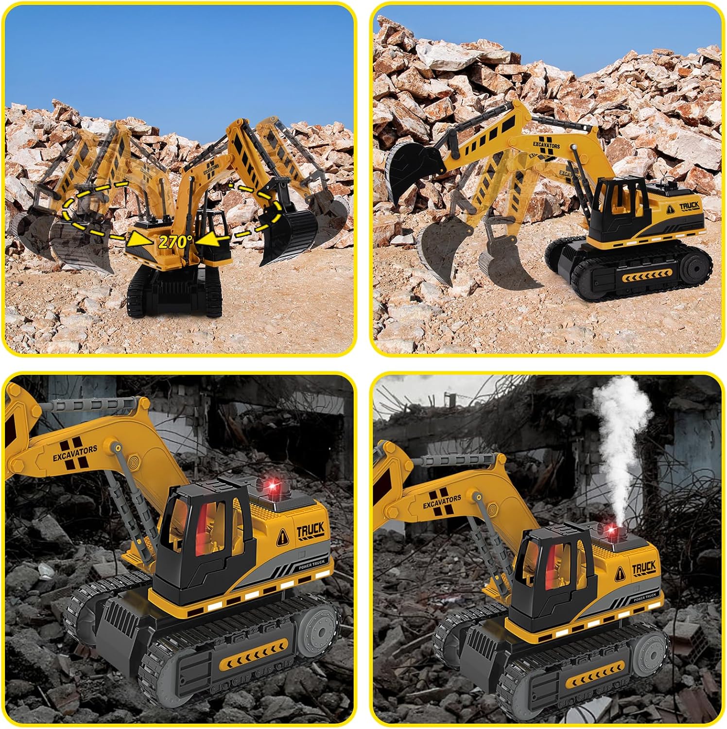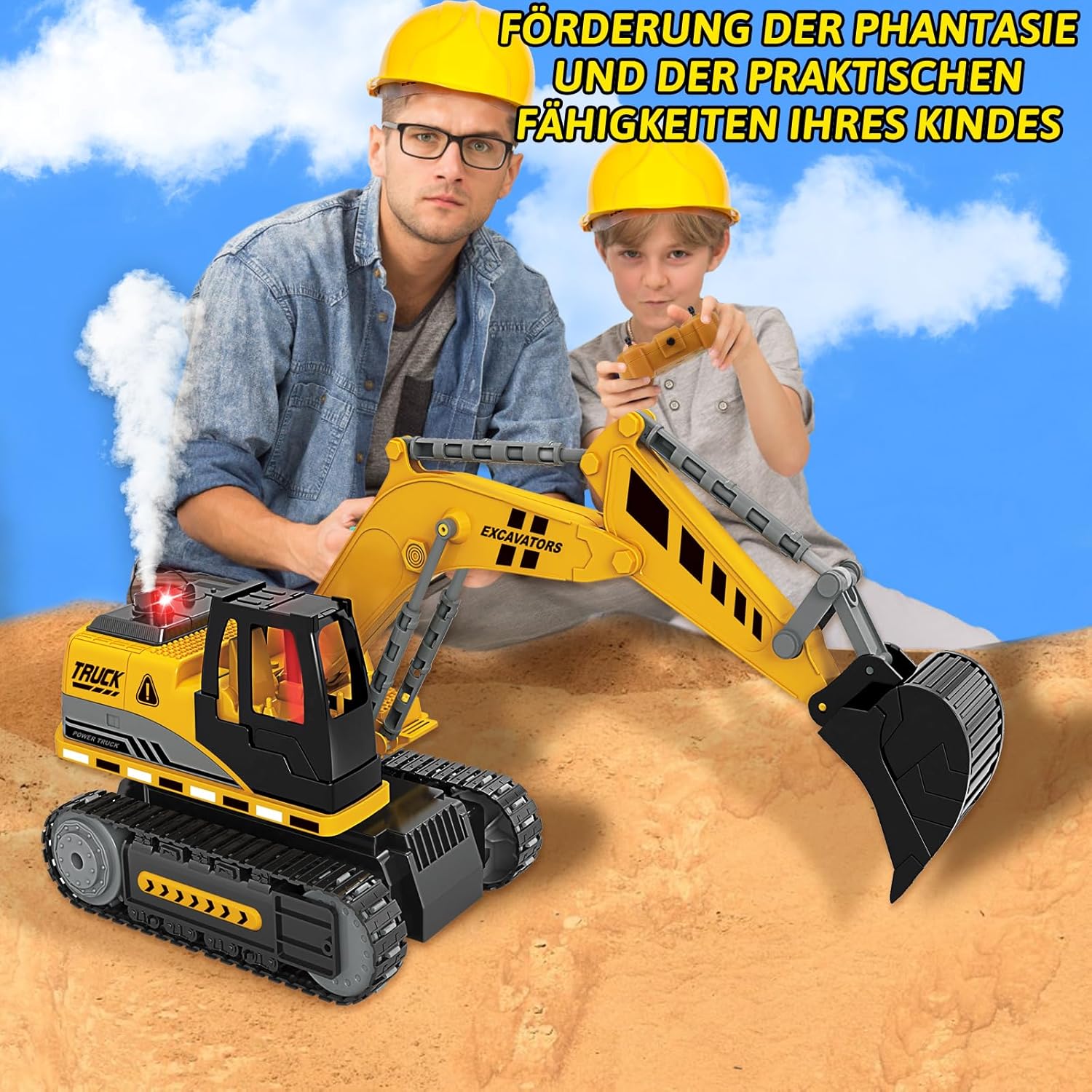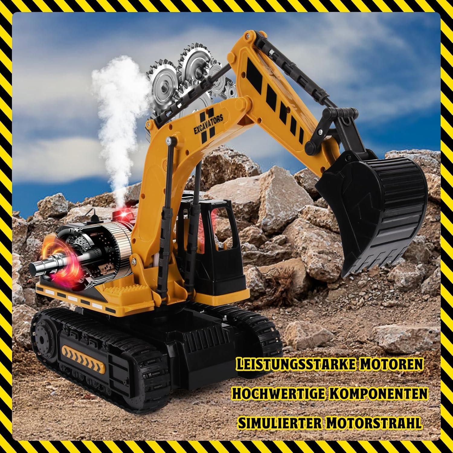 FORMIZON Играчка багер с дистанционно управление, RC багер със симулация на дим, електрическа играчка багер трактор за деца над 6 години, Коледен подарък, подарък за рожден ден