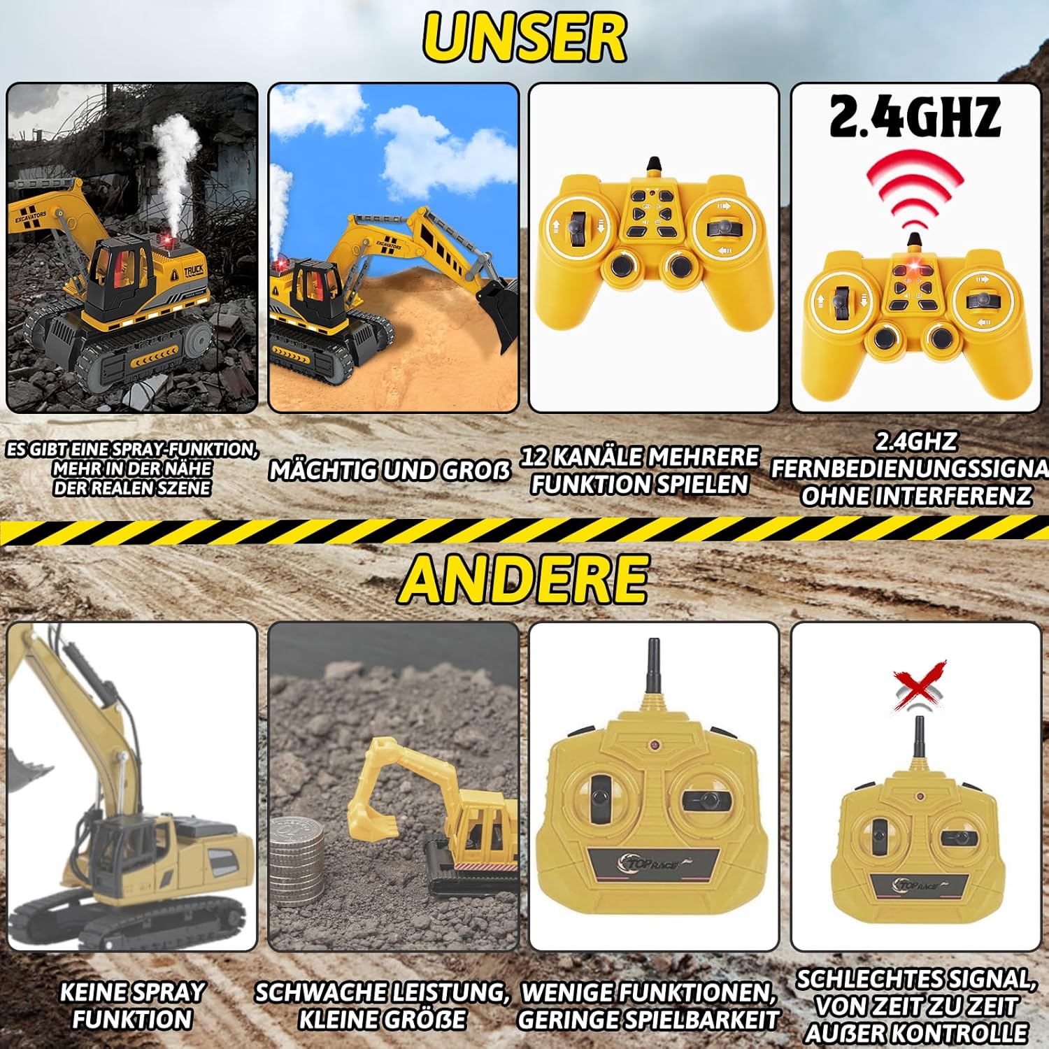 • Най-добър подарък - Играчка багер с дистанционно управление с оригинален дизайн и лесна за употреба, идеална за коледен подарък за рожден ден на деца. Подходяща за употреба на закрито и открито, за тревни площи, пясък, тераса, хол и други места.