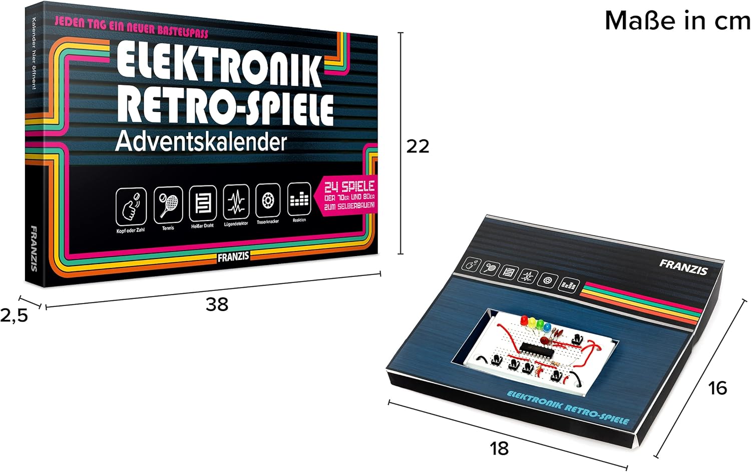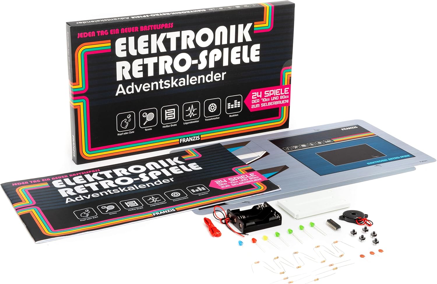 FRANZIS 67150 - Електронен адвент календар с ретро игри, 24 игри „Направи си сам“ от 70-те и 80-те години, включително 28-странична книжка с инструкции, не се изисква запояване
