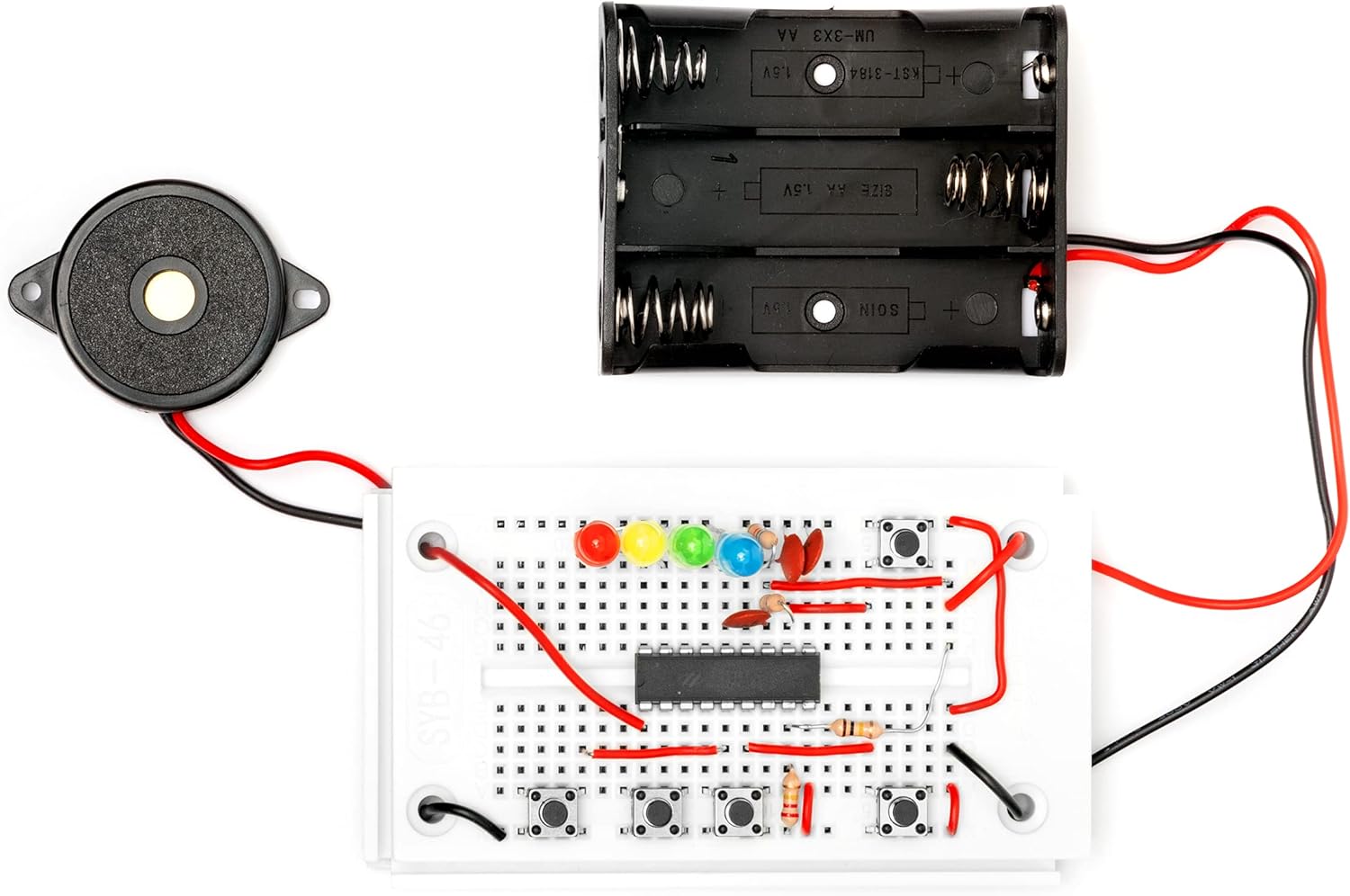 • Пълният пакет съдържа всички елементи и компоненти за сглобяване и непрекъснато забавление с електрониката (допълнително се изискват: 3 AA батерии)