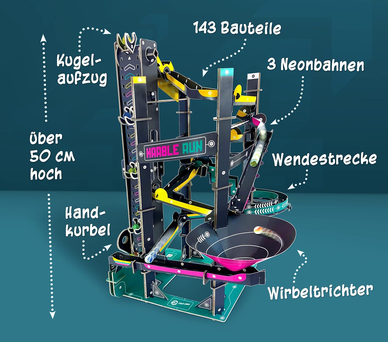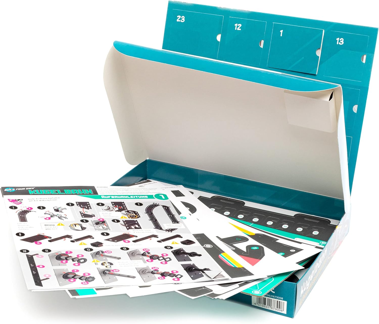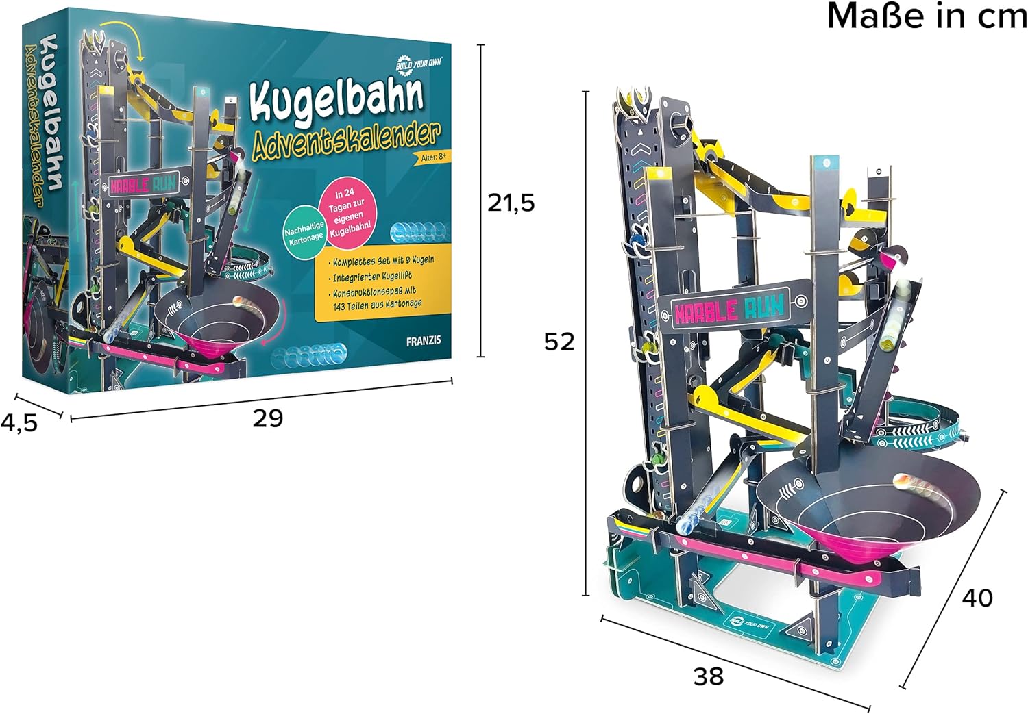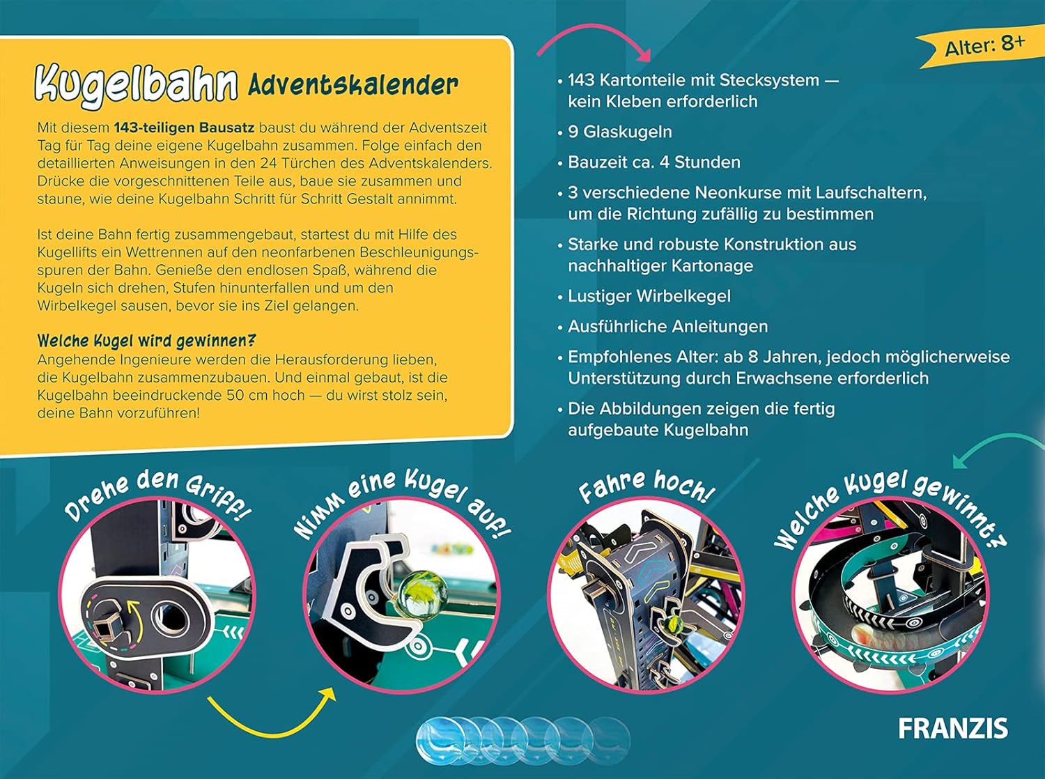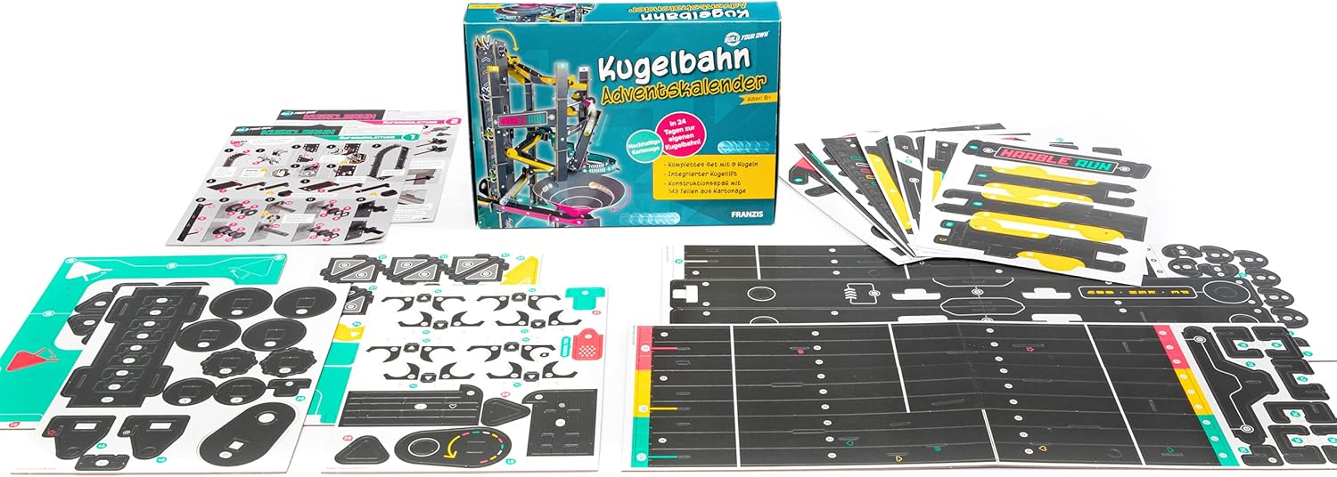 FRANZIS 67300 - Адвент календар с топчета, изградете си собствена топчеста писта за 24 дни, комплект от картон, включва 9 топчета, за деца над 8 години