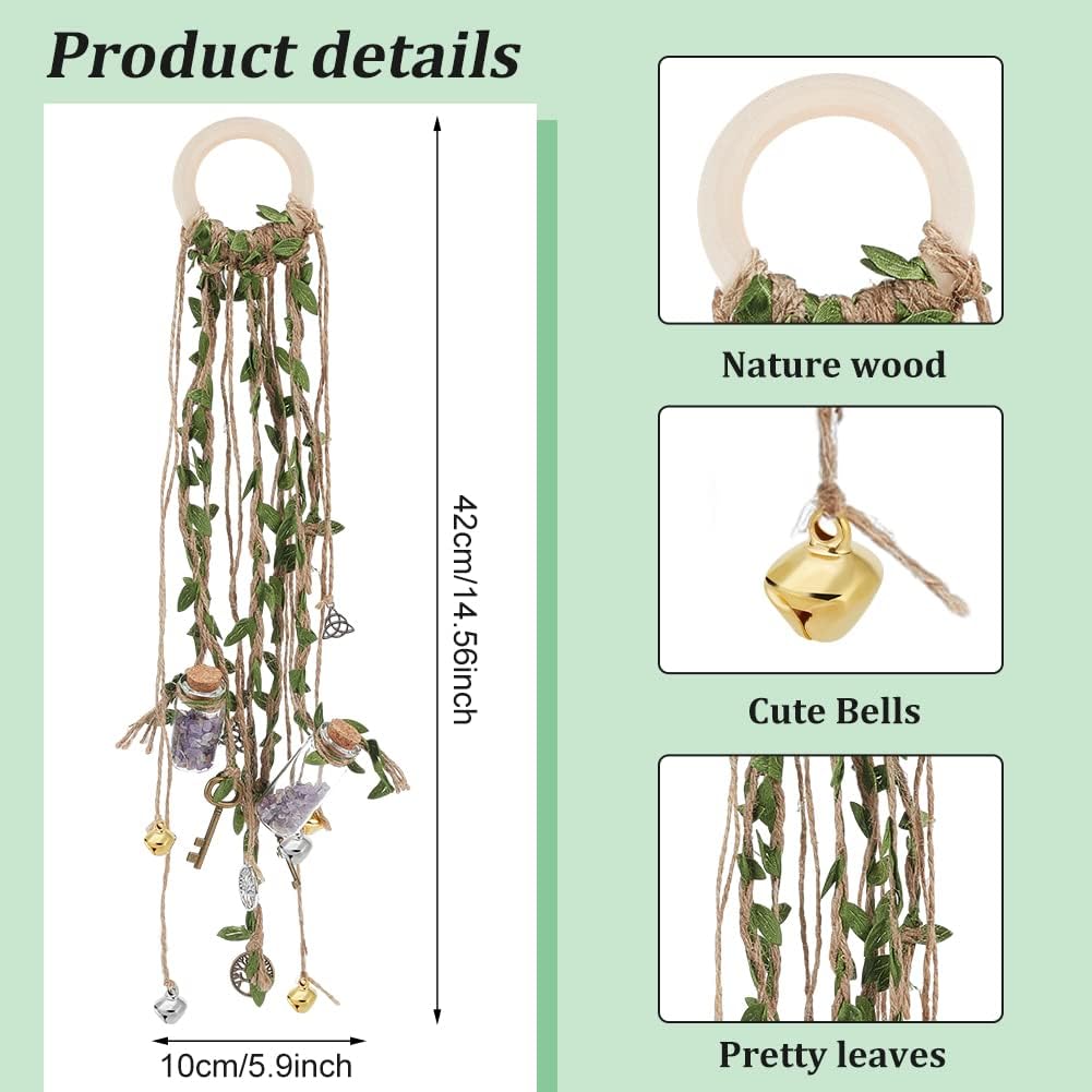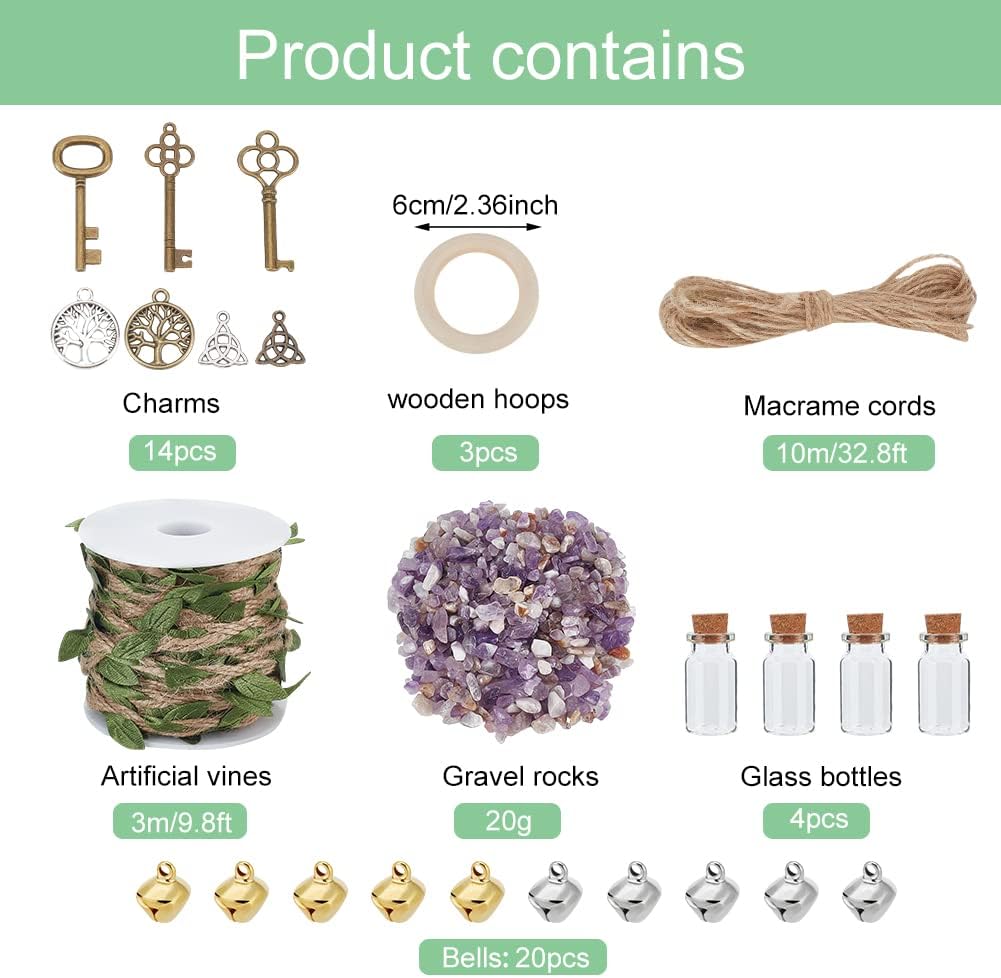 • Комплект „Направи си сам“ за вещически камбанки: Пакетът включва 4 стъклени бутилки от корк, 3 дървени пръстена, 10 м/32,80 фута конопено въже, 4 висулки „дървото на живота“, 4 триъгълни висулки, 6 мини ключа, 20 мини камбанки, 20 аметистови макадама.