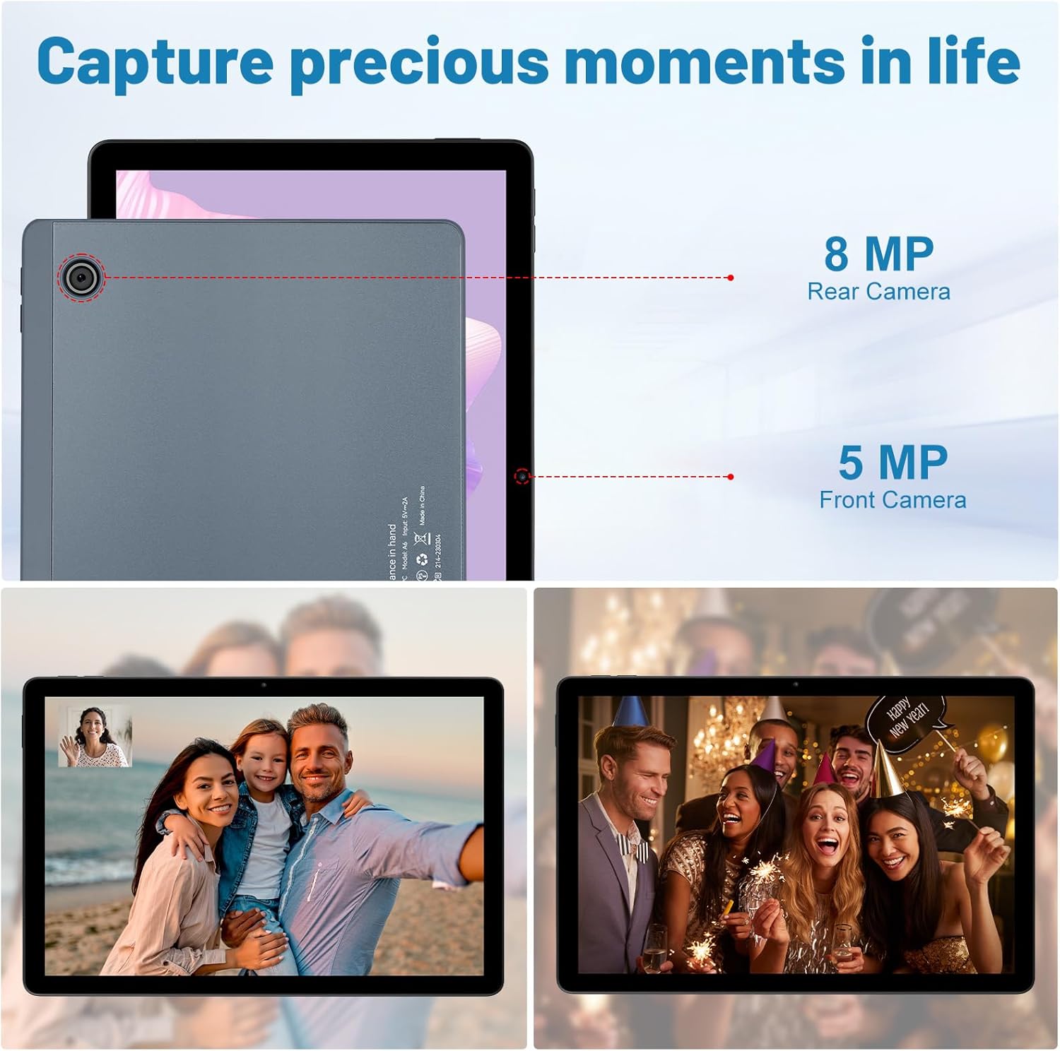 • 【5G/2.4G WiFi + Bluetooth 5.0】Този Android таблет използва WiFi технология от шесто поколение. Той разполага с двубандов WiFi чип, осигуряващ по-стабилни 5G и 2.4G WiFi връзки. Свържете Bluetooth слушалки, Bluetooth клавиатури и други Bluetooth устройства чрез Bluetooth 5.0. Разполага с двойна камера (5 MP предна и 8 MP задна) за заснемане на зашеметяващи снимки и видео чатове.