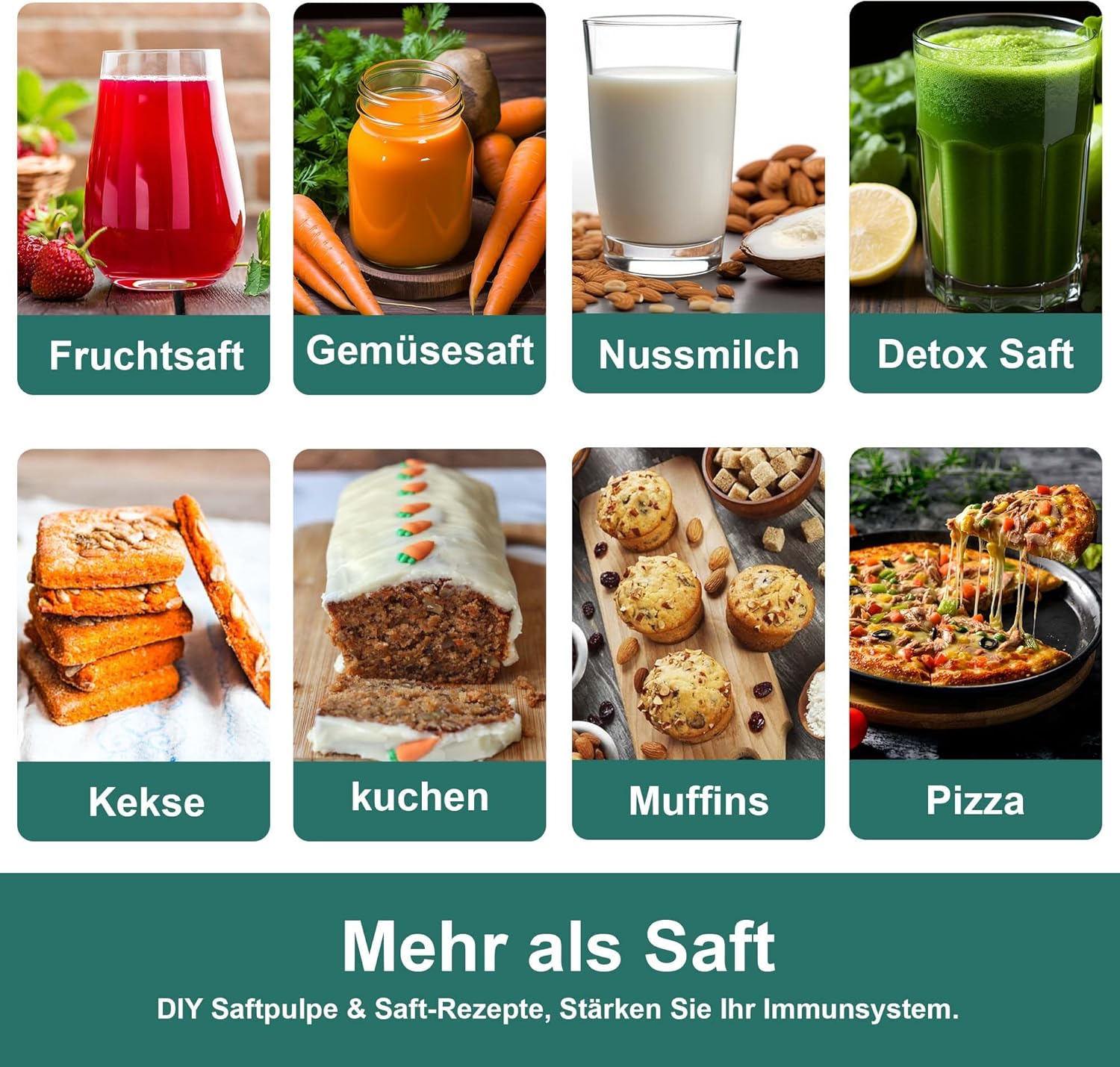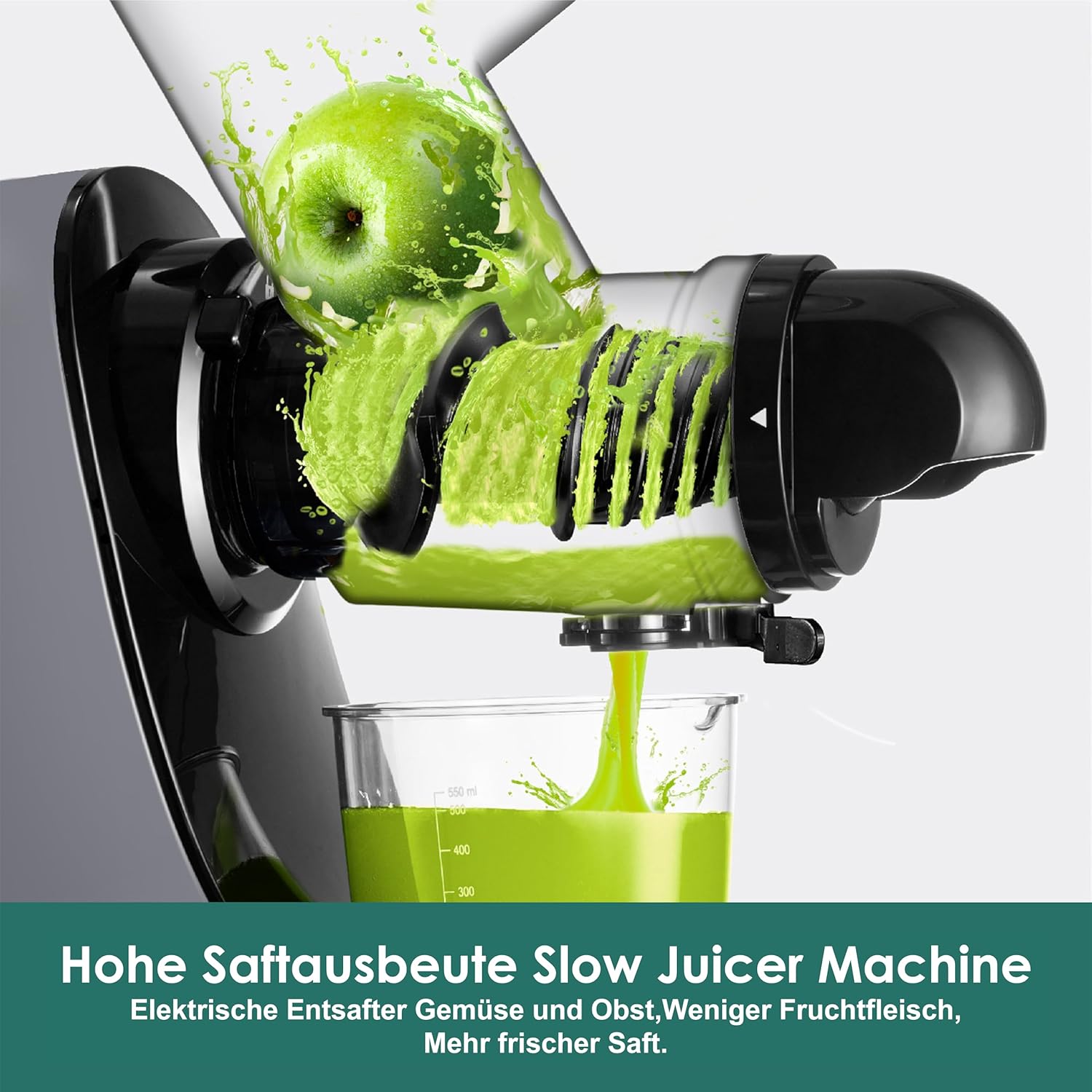 • Ултра висок добив на сок и намалени отпадъци: Усъвършенстваната технология за студено пресоване с ниска скорост позволява на сокоизстисквачката да извлече максимално количество сок от плодове и зеленчуци. При лека скорост от 80 оборота в минута, плодовете и зеленчуците се изстискват ефективно, като се минимизира образуването на пяна и се предотвратяват запушвания, като в крайна сметка се увеличава добива на сок. Кажете сбогом на отпадъците и извлечете максимума от вашите съставки!