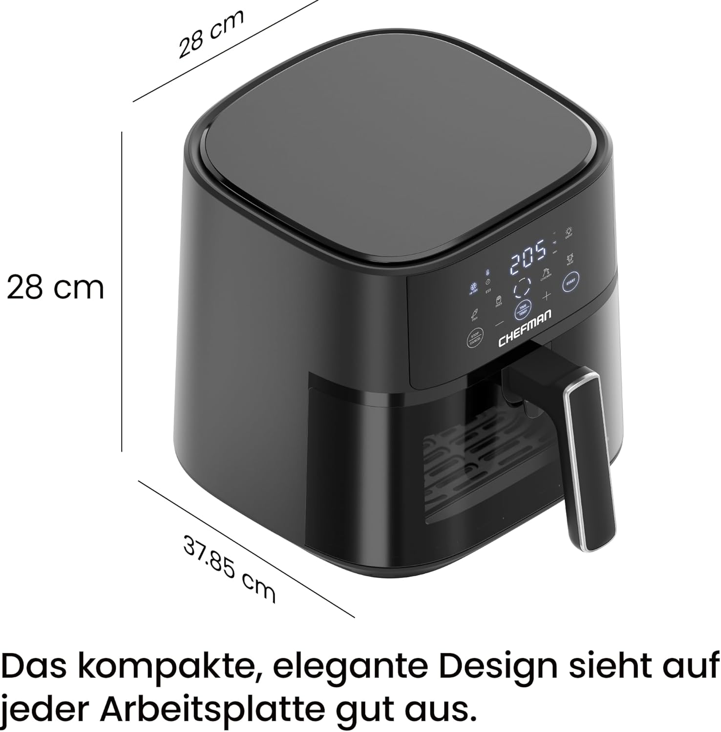 Фритюрник Chefman с горещ въздух, компактен фритюрник с горещ въздух с обем 5,7 л, с технология Hi-Fry, прозорец за наблюдение, сензорни контроли, незалепващо покритие и подходящ за съдомиялна машина, черен