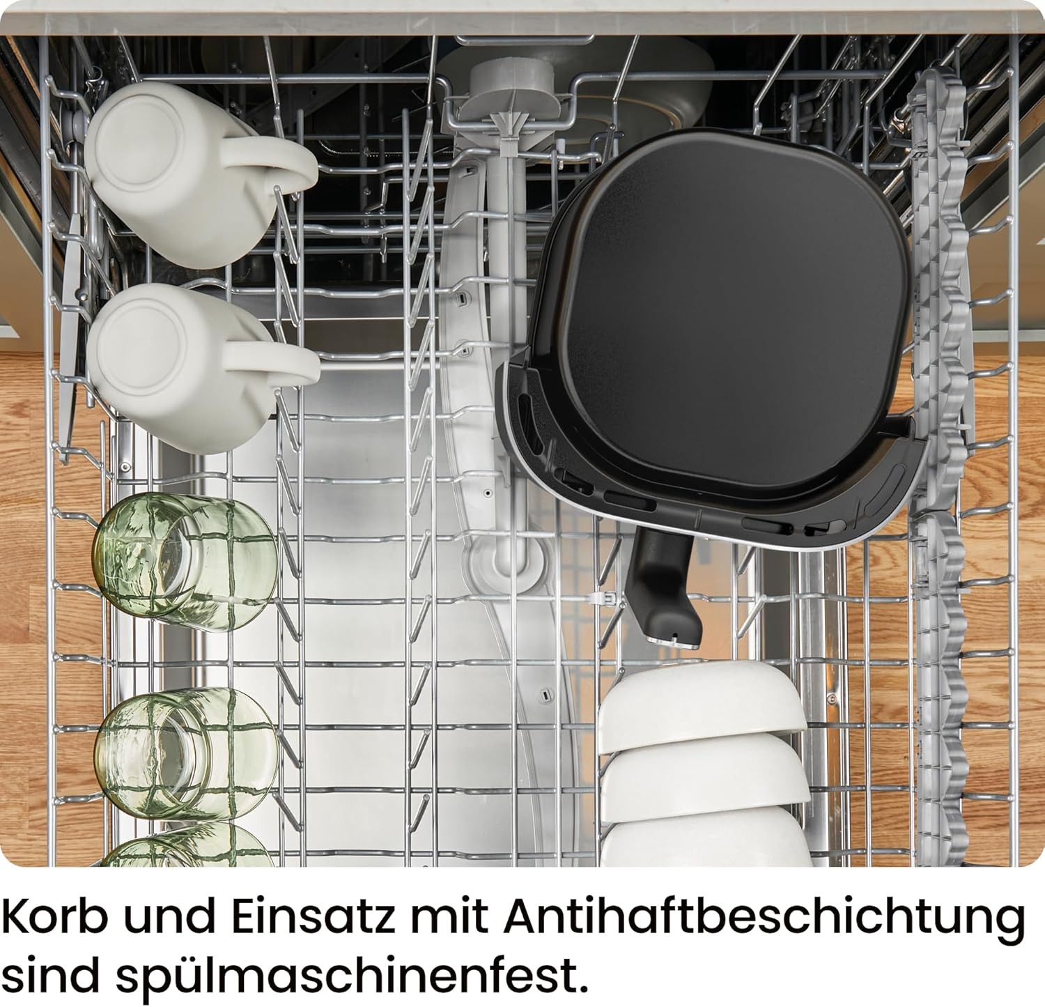 • ЛЕСНО ПОЧИСТВАНЕ Кошницата и решетката с незалепващо покритие от 5,7 литра са подходящи за съдомиялна машина, което прави почистването бързо и лесно. Елегантното матово черно покритие е непреходно и се почиства лесно с влажна кърпа.