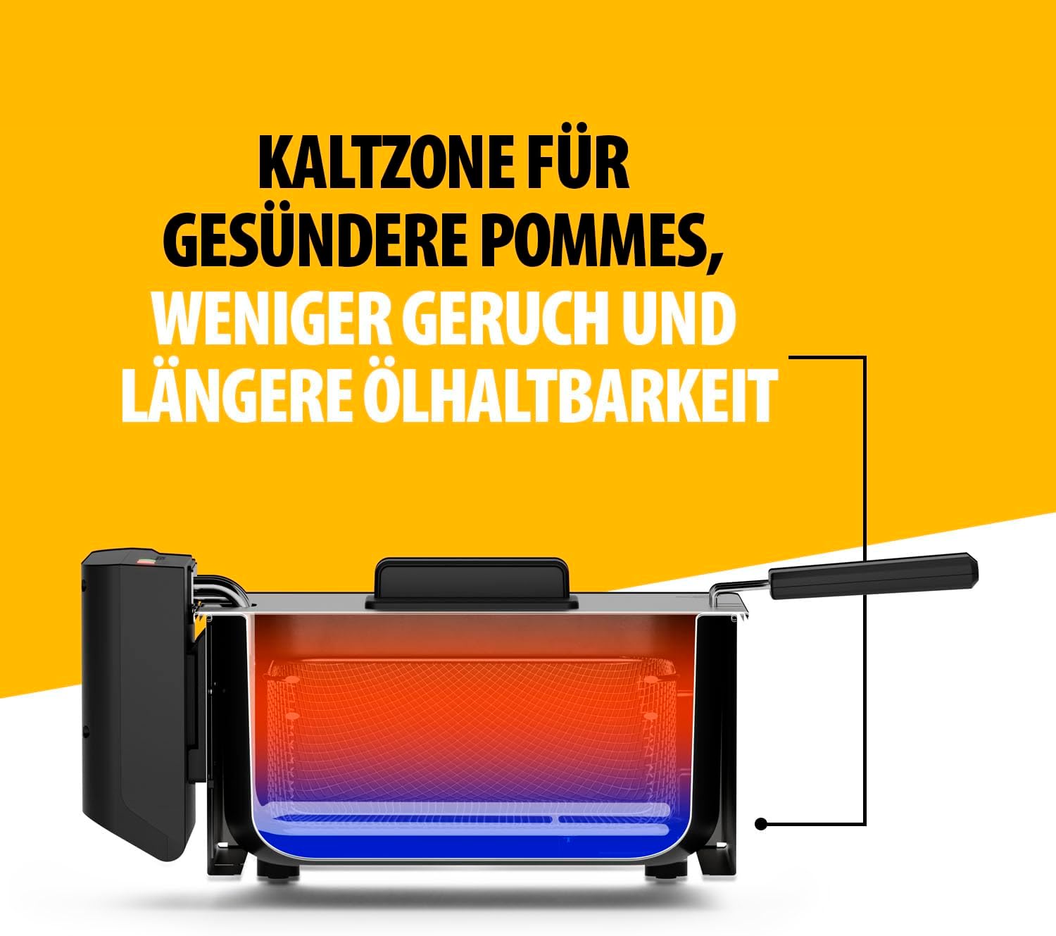 • БЪРЗО ЗАГРЯВАНЕ Мощният нагревател от 2000 вата осигурява бърза готовност за употреба и равномерно пържене с хрупкави резултати