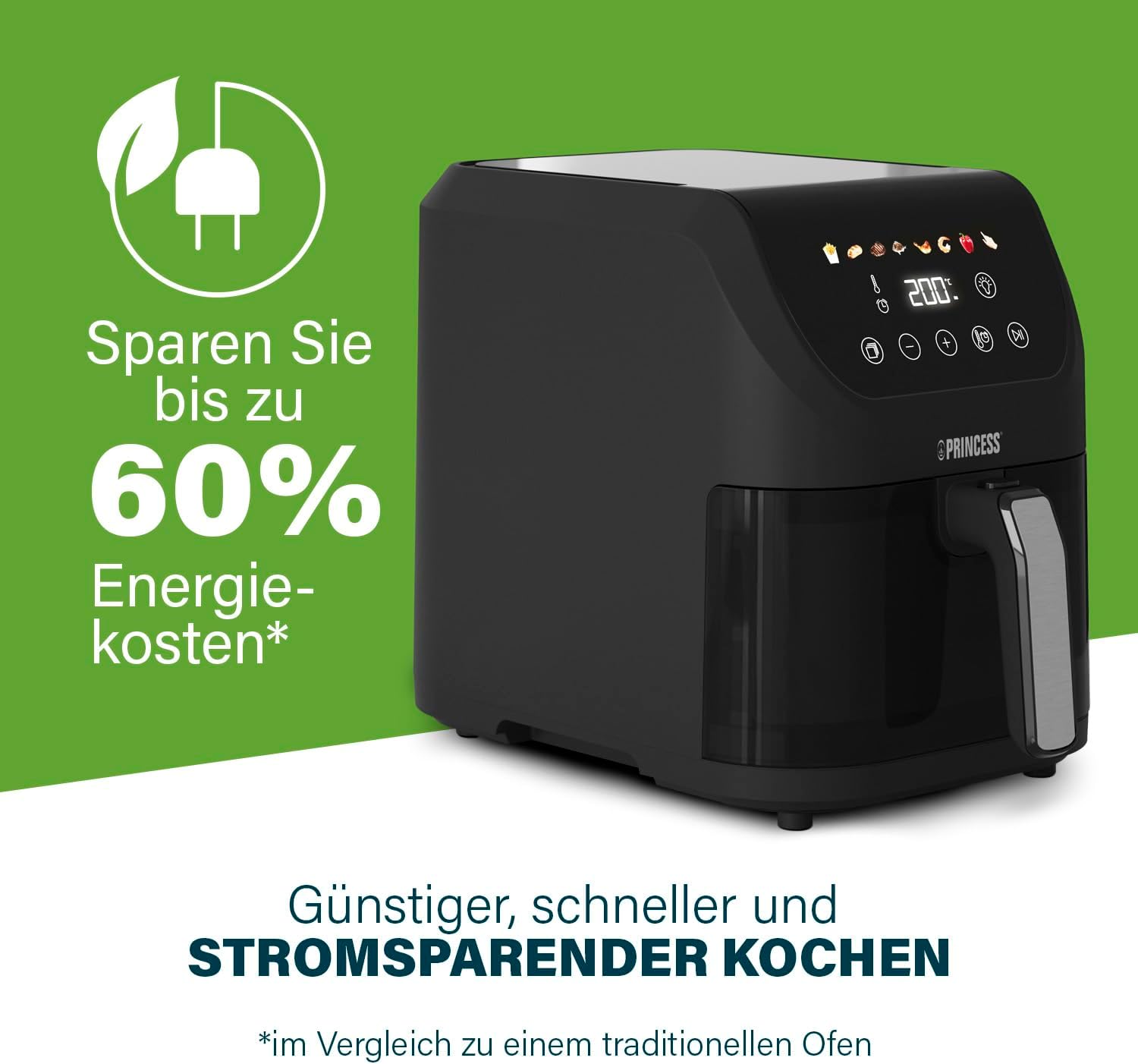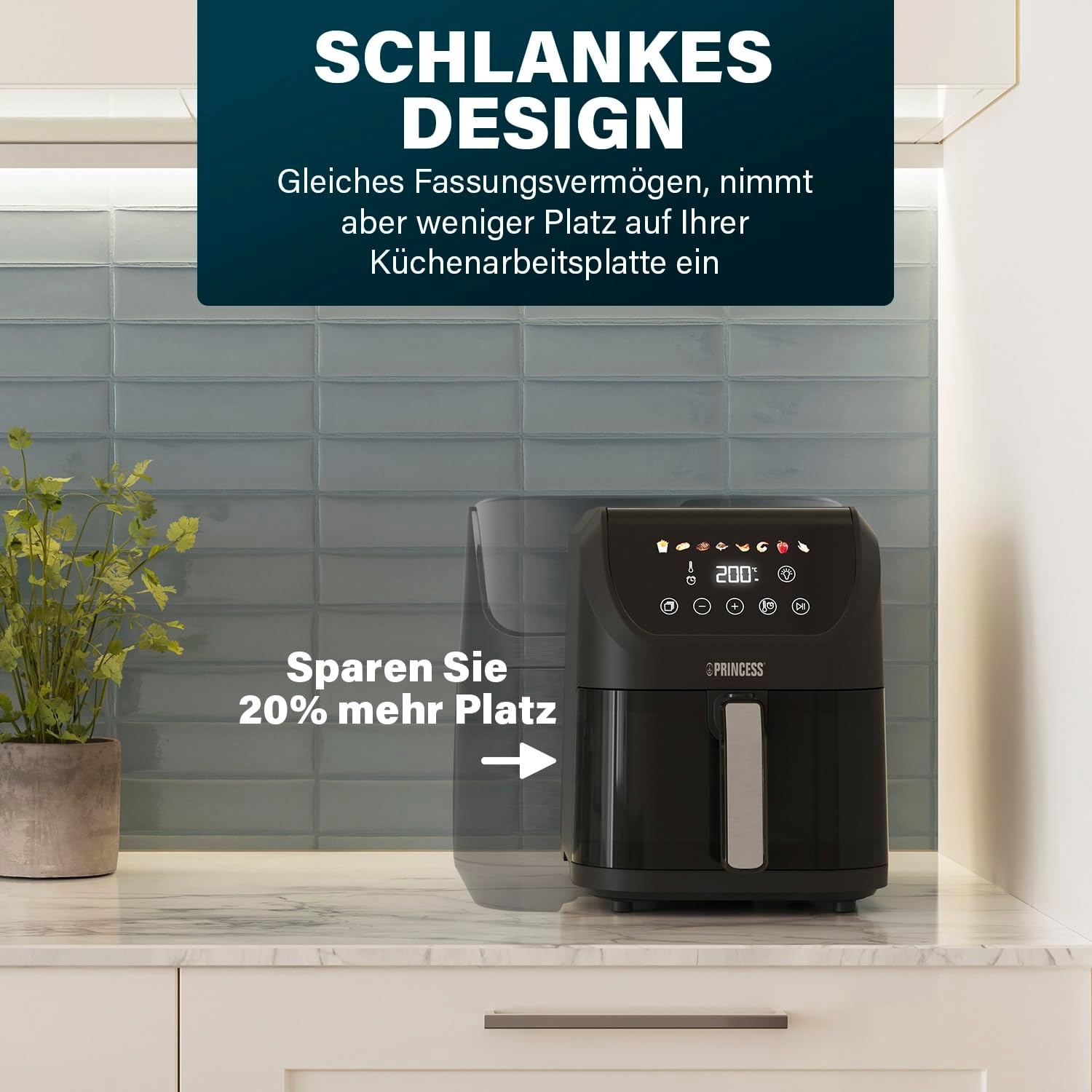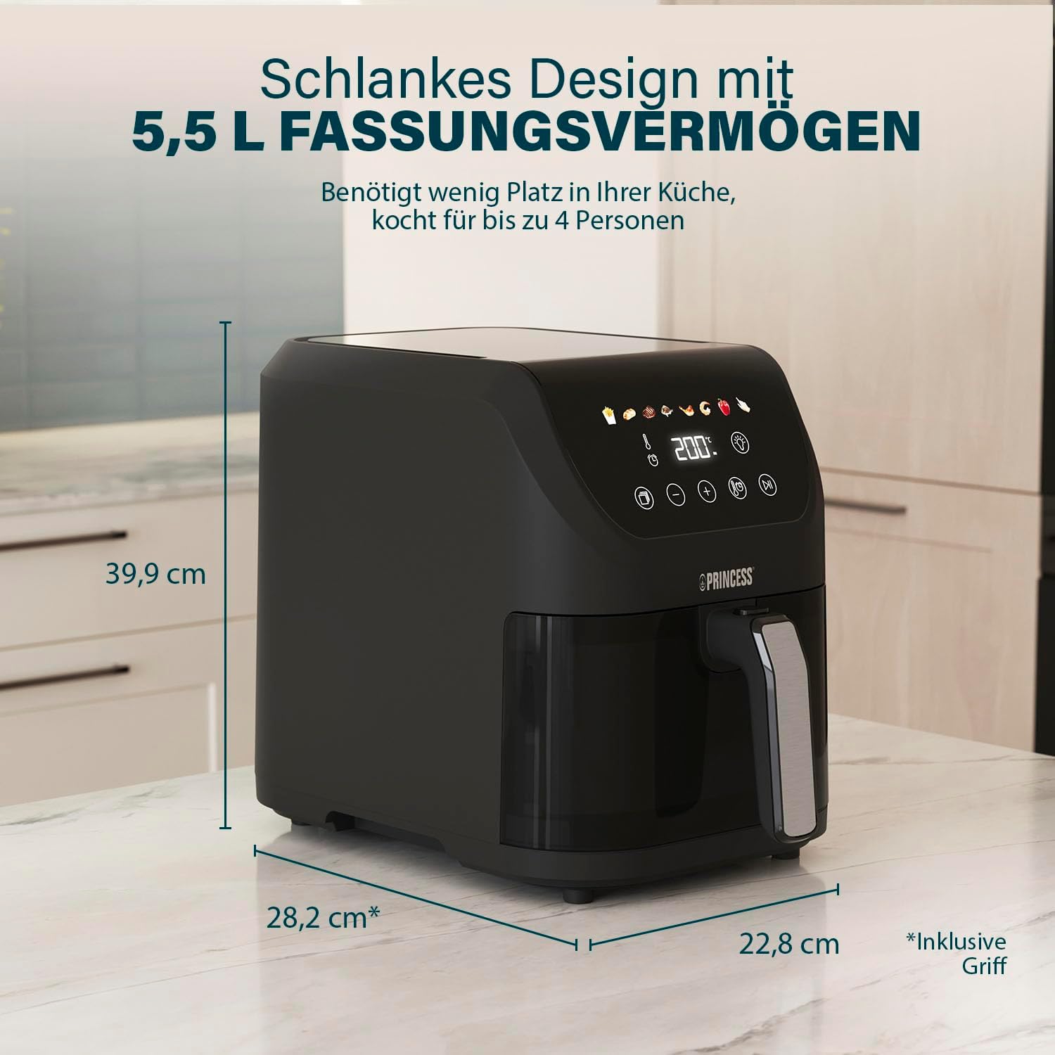 Фритюрник Princess Slim Airfryer 5.5 л - 1500 W - Тиха работа (55 db) - Компактен дизайн - Без олио - 8 програми за готвене - Регулируем термостат - Незалепващо покритие - 182240