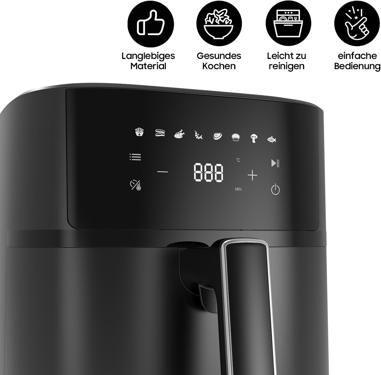 • Удобен за потребителя LED дисплей. Опростете готвенето си със супер лесен за използване цифров LED дисплей. Елегантният, минималистичен дизайн на фритюрника Hot Air Without Fat осигурява безпроблемна работа и ви позволява прецизно да избирате програми, да регулирате температурата и да задавате таймери. Кажете сбогом на догадките в кухнята.