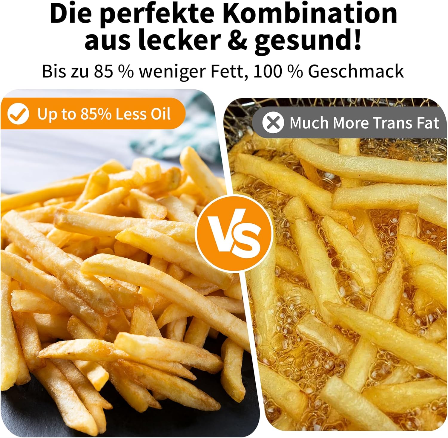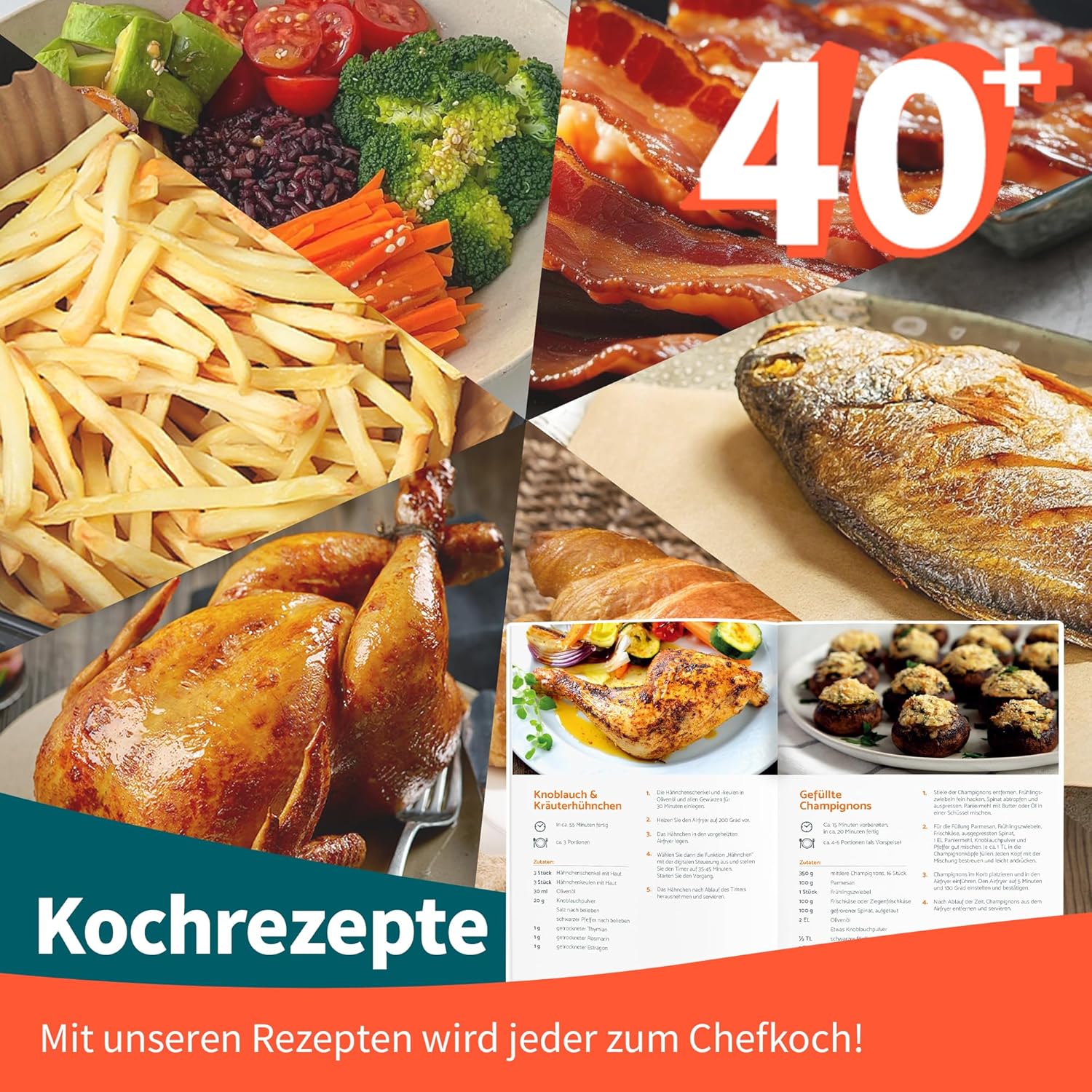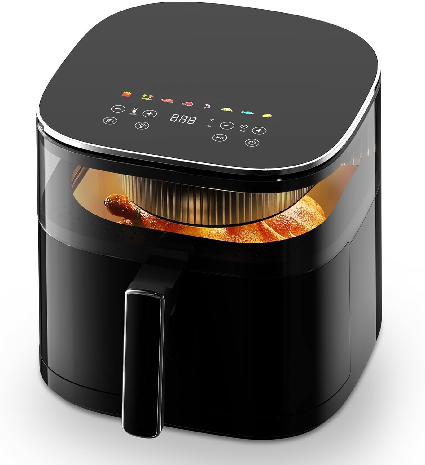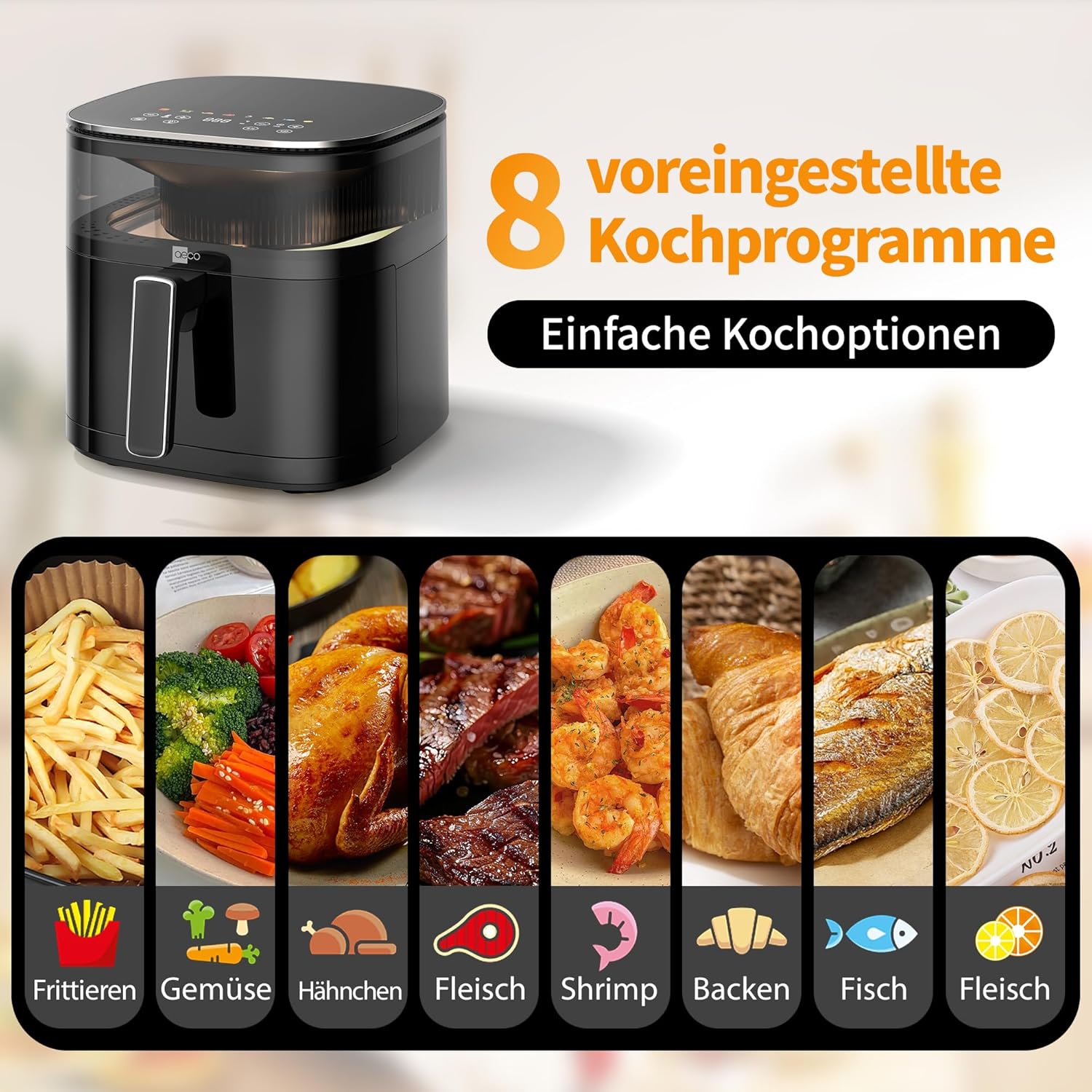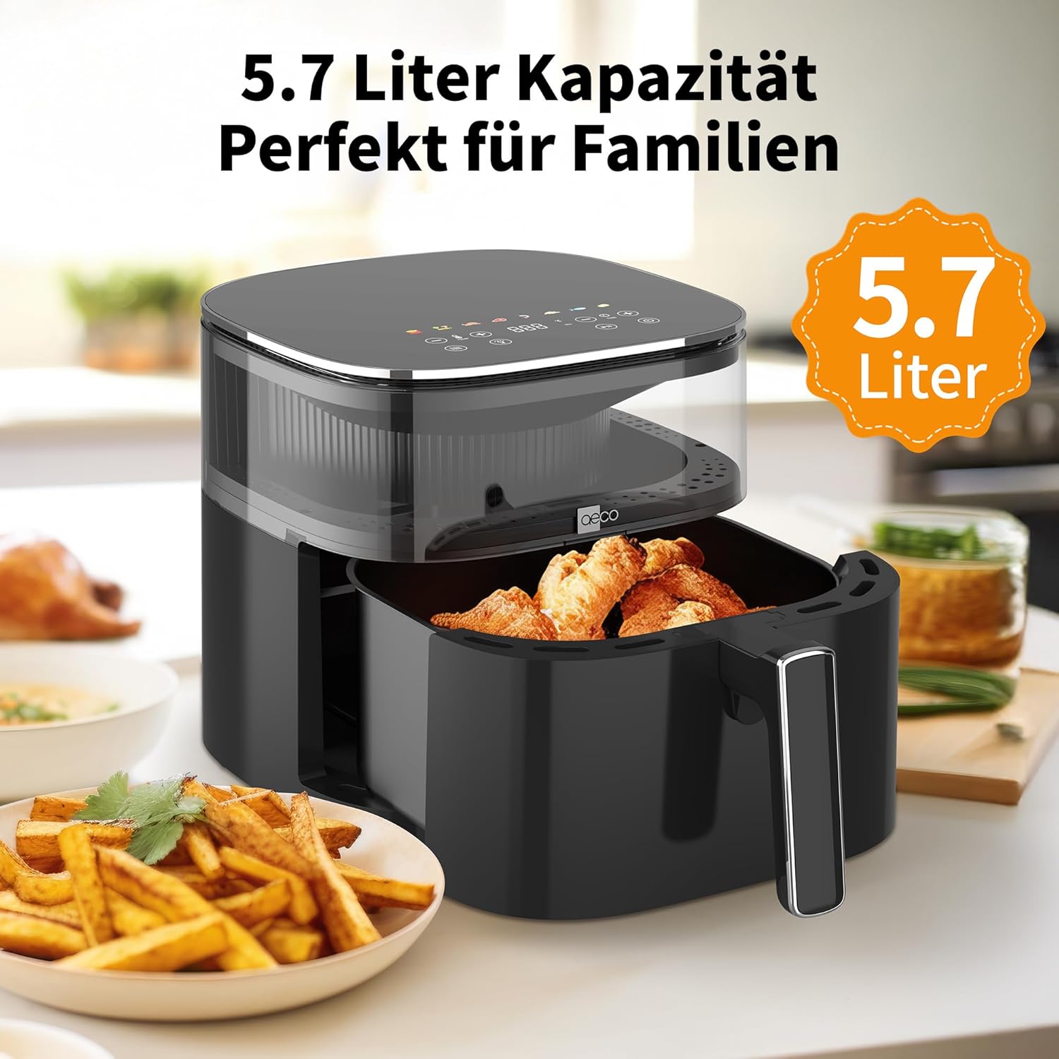 Фритюрник с горещ въздух aeco Touch AirFryer 5,7 литра с осветен прозорец за гледане 270° и дигитален сензорен дисплей, 1700 вата, регулируем наклон 80°-200°, 8 програми, включва книга с рецепти