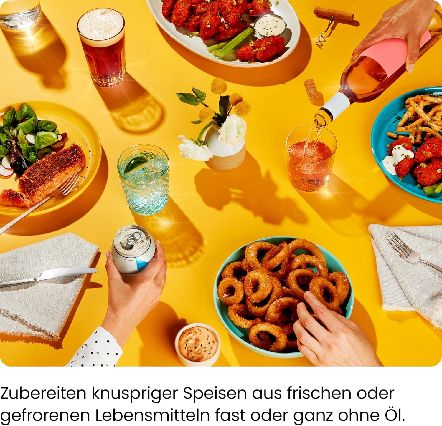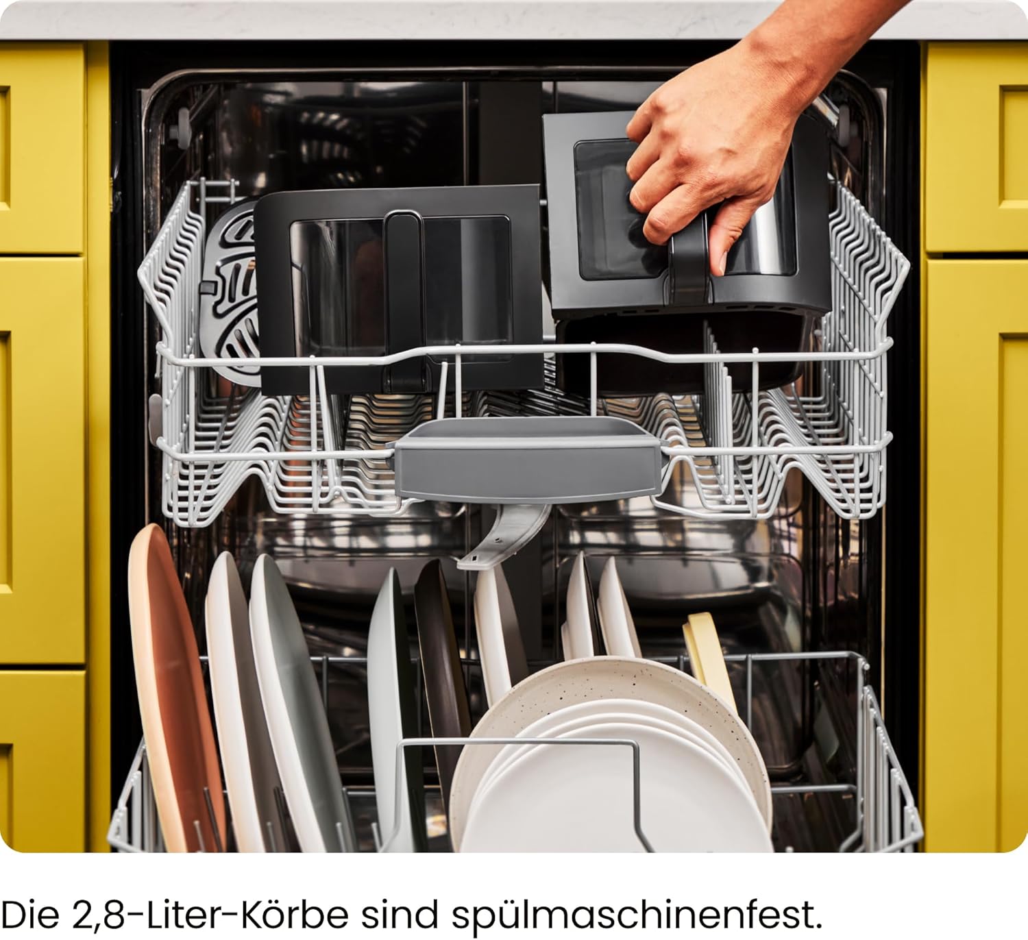 • БЕЗГРИЖНО ПОЧИСТВАНЕ: Този фритюрник с горещ въздух е пълен пакет - просторен и невероятно елегантен. Матовият черен екстериор изглежда красиво на плота ви, но също така е изключително лесен за прибиране. Когато приключите с готвенето на ястието си, избършете външната част с влажна кърпа. Всички аксесоари са подходящи за съдомиялна машина, а незалепващите кошници са изключително лесни за почистване.