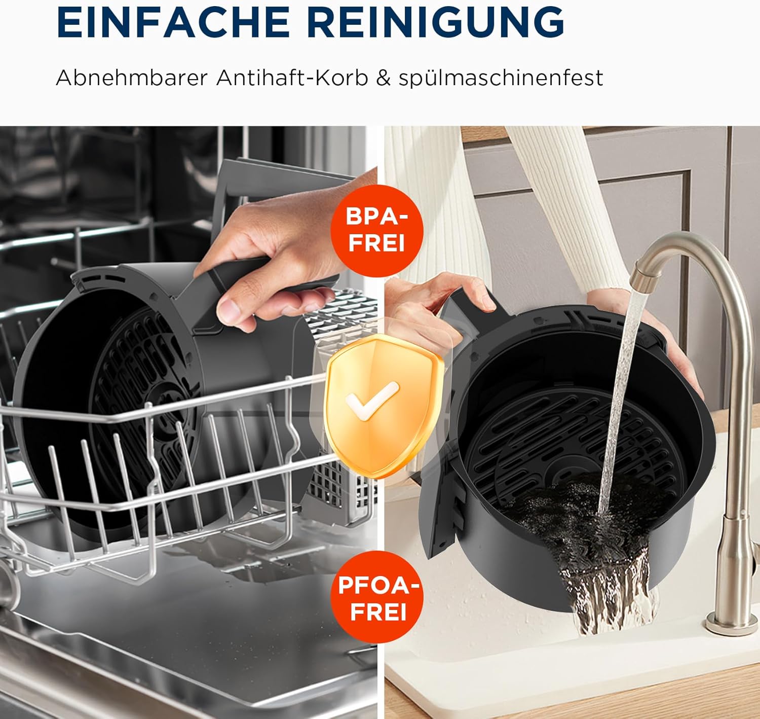 • Лесно почистване: Включената кошница и подвижната тава за свежи плодове са с незалепващо покритие и са подходящи за съдомиялна машина, което ги прави бързи и лесни за почистване. По-безопасни и спестяват повече време за вас.
