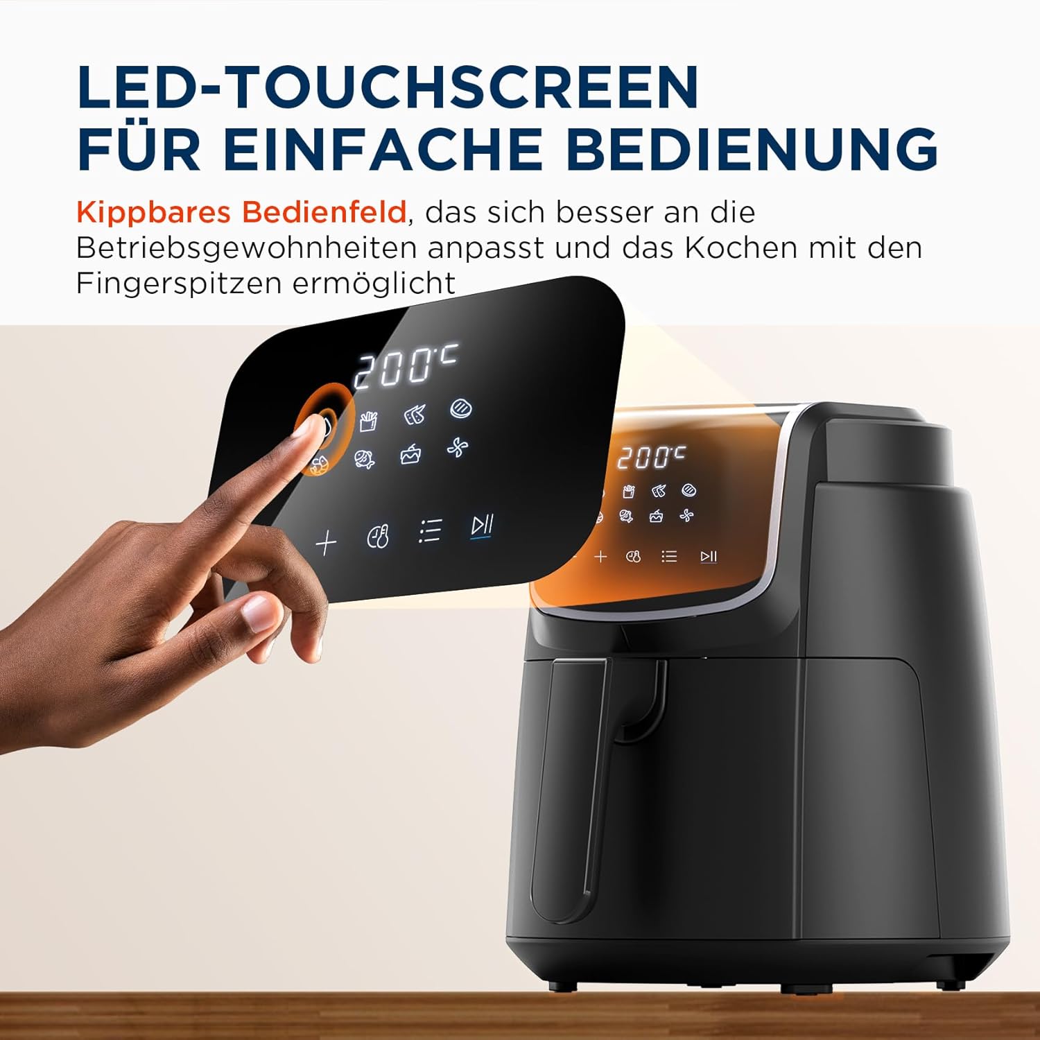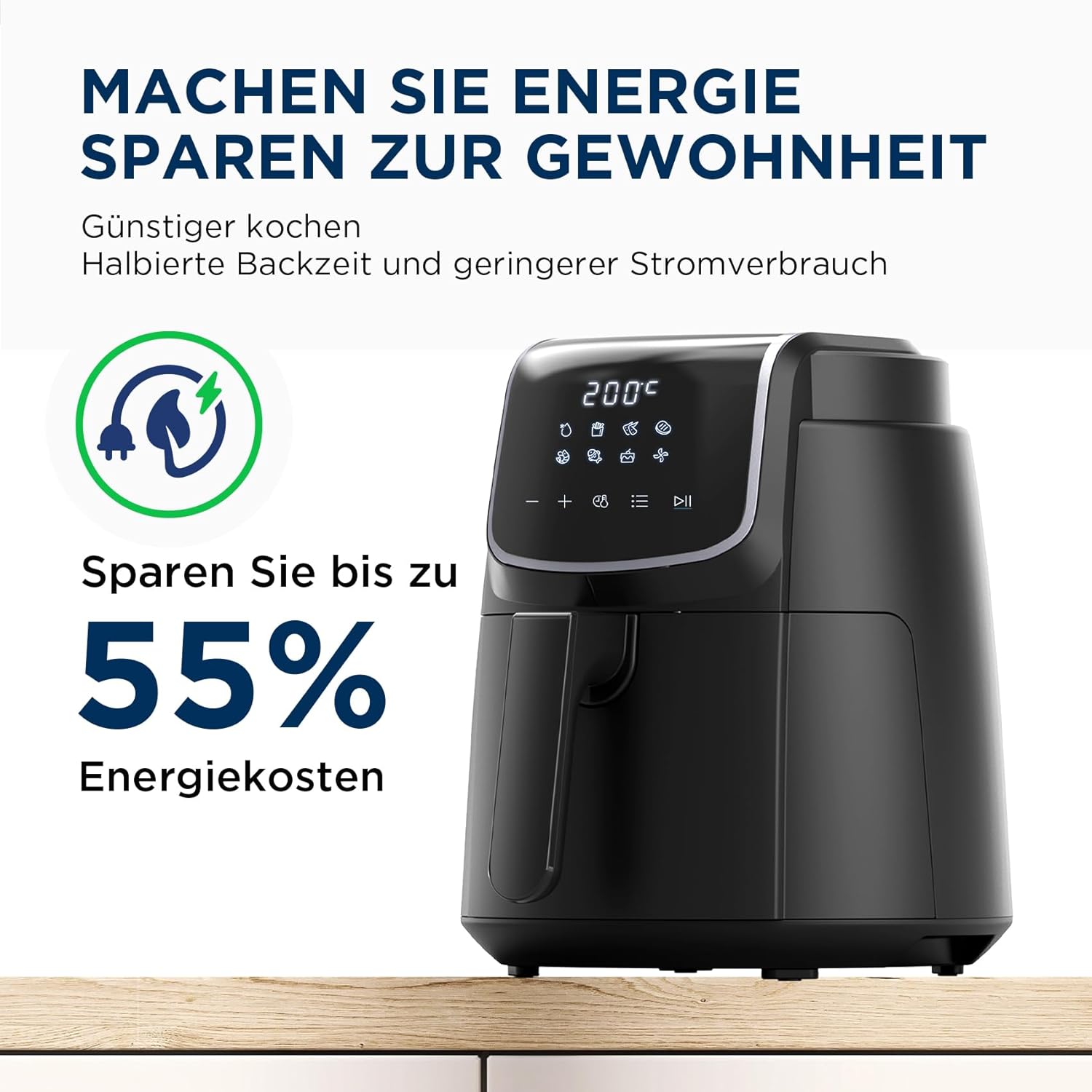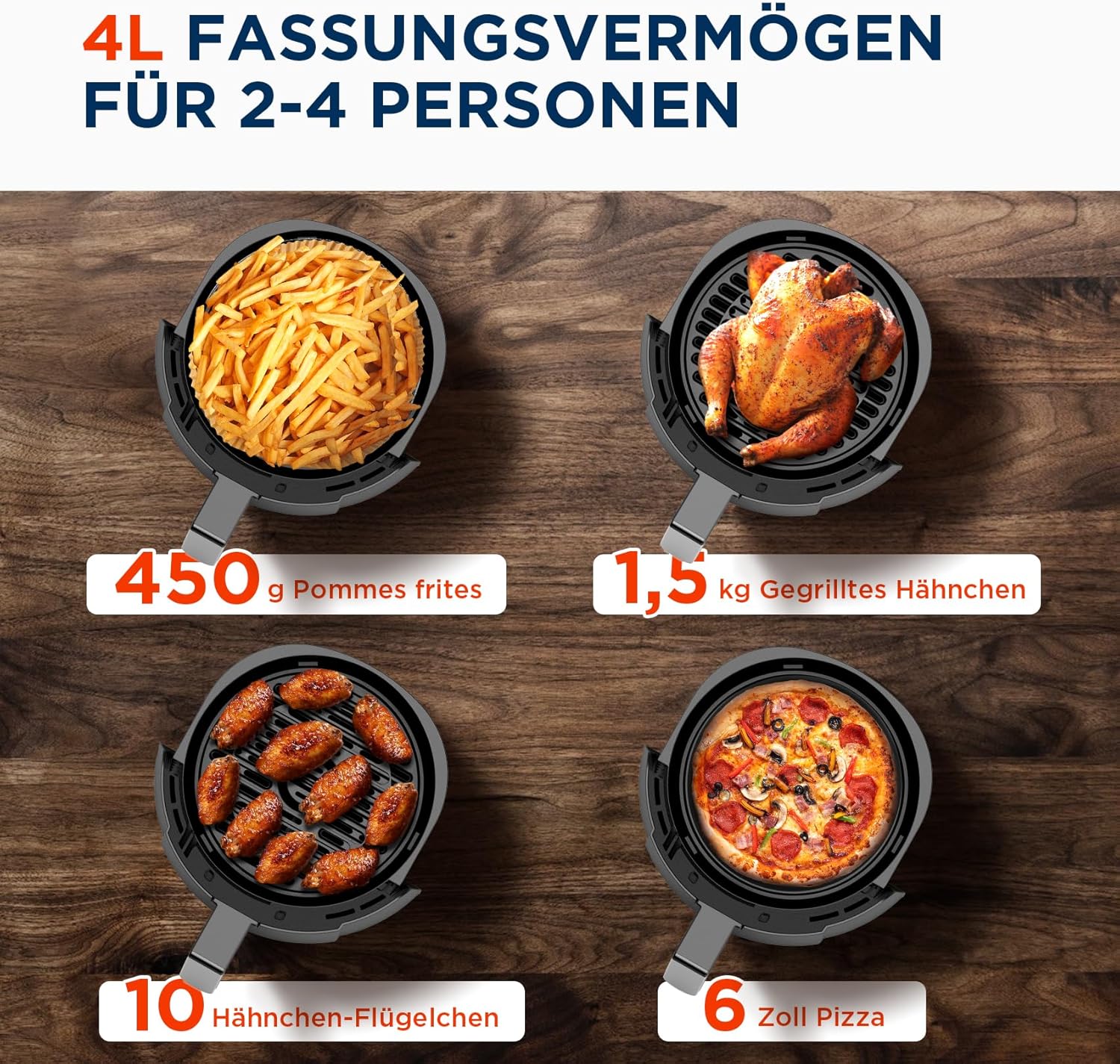 • Компактен дизайн: малкият фритюрник с горещ въздух (2 л) е идеален за малки домакинства. В същото време, благодарение на компактния си дизайн, той заема малко място, така че не е нужно да се притеснявате за съхранението.