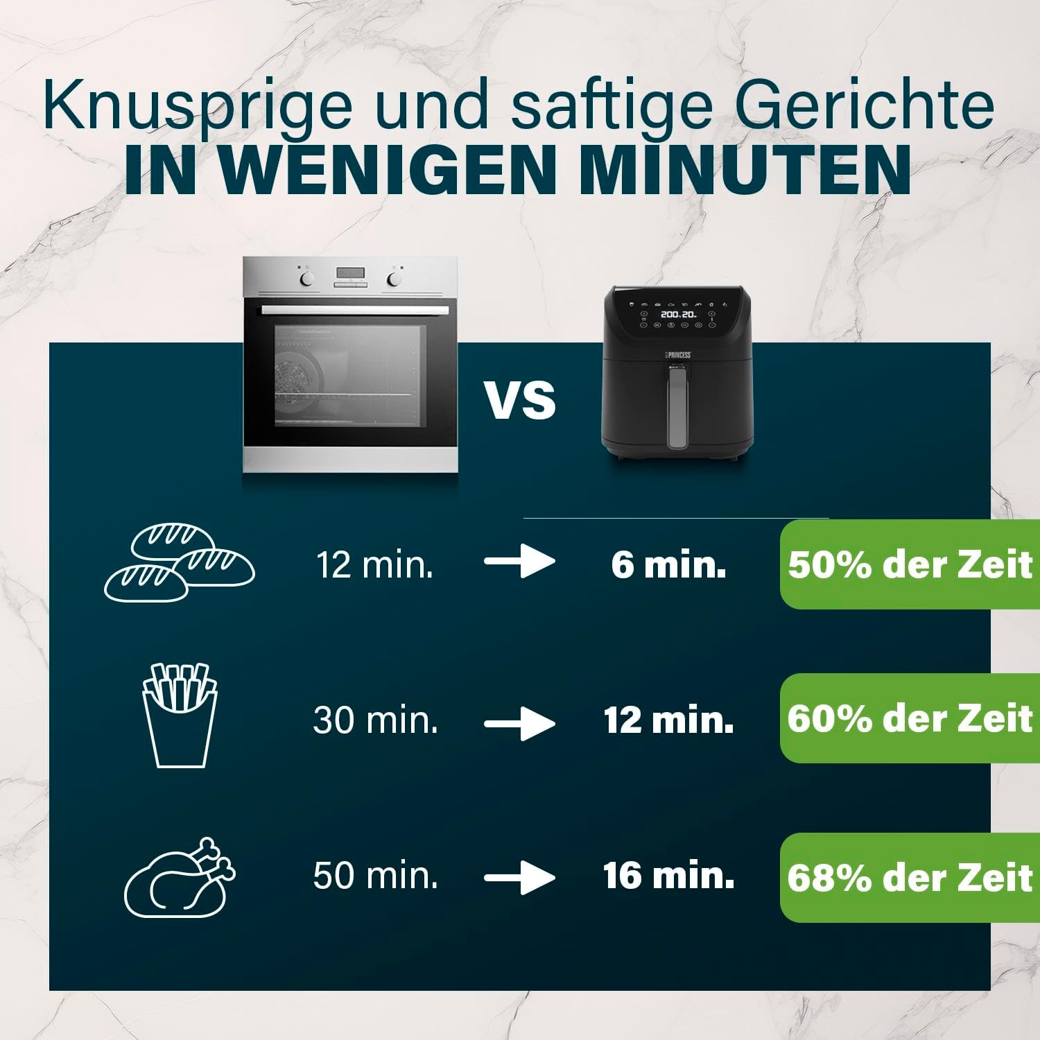 • Насладете се по-здравословно – без олио: Благодарение на модерната технология за горещ въздух, можете да готвите любимите си храни без мазнини само с 55 dB – за хрупкави резултати отвън и нежна текстура отвътре.
