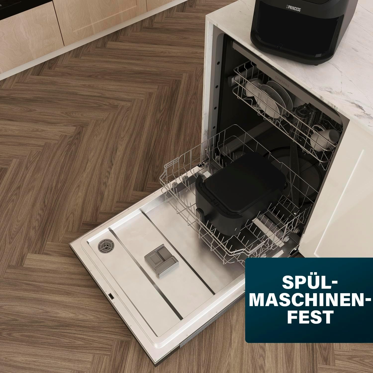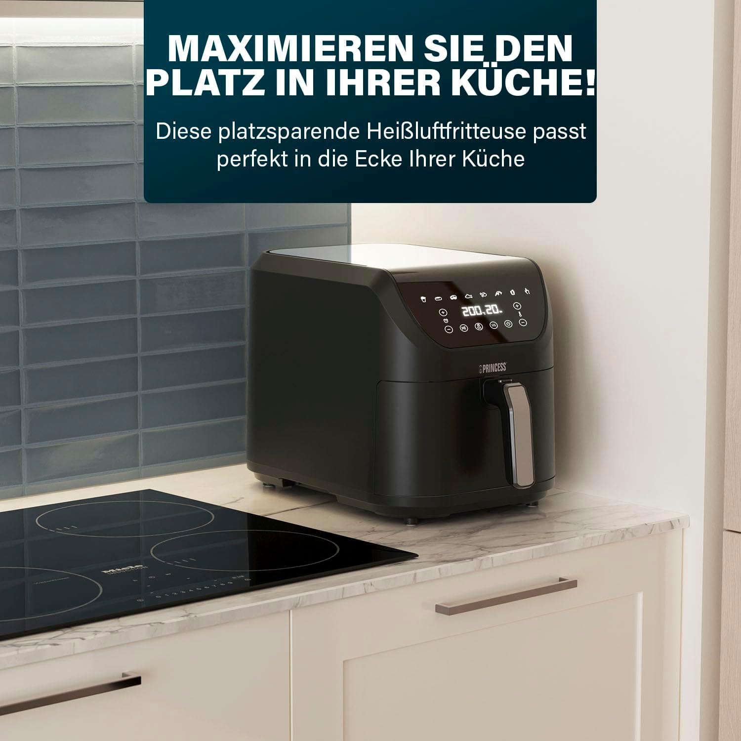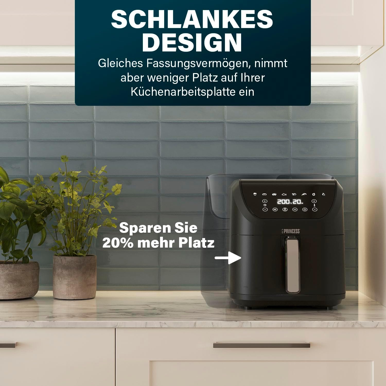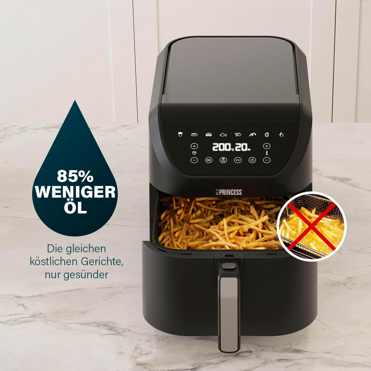 Фритюрник с горещ въздух Princess SlimFry - Компактен дизайн - Без BPA - 8 л - 8 програми - Регулируема температура и таймер - 2000 W - 182256, Черен