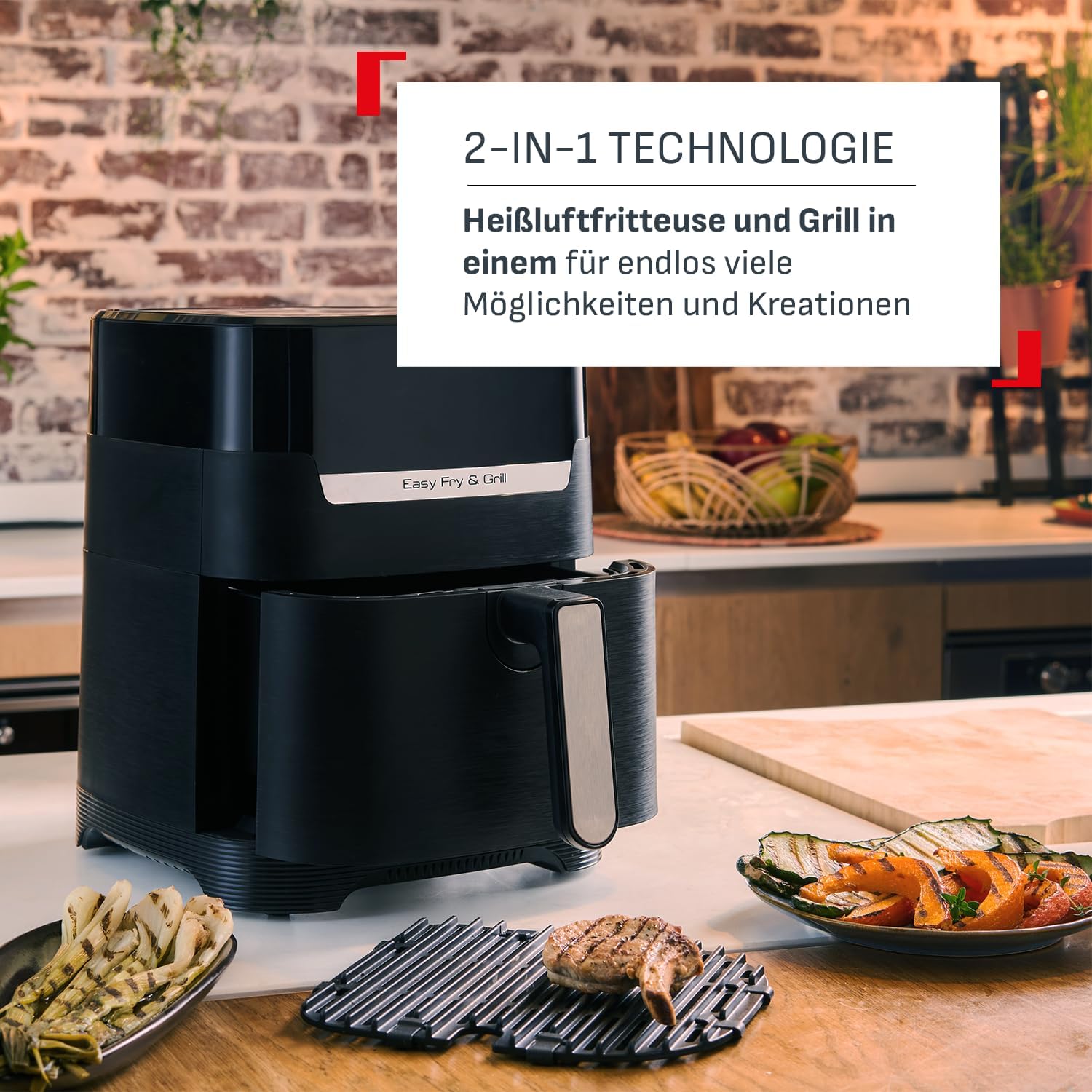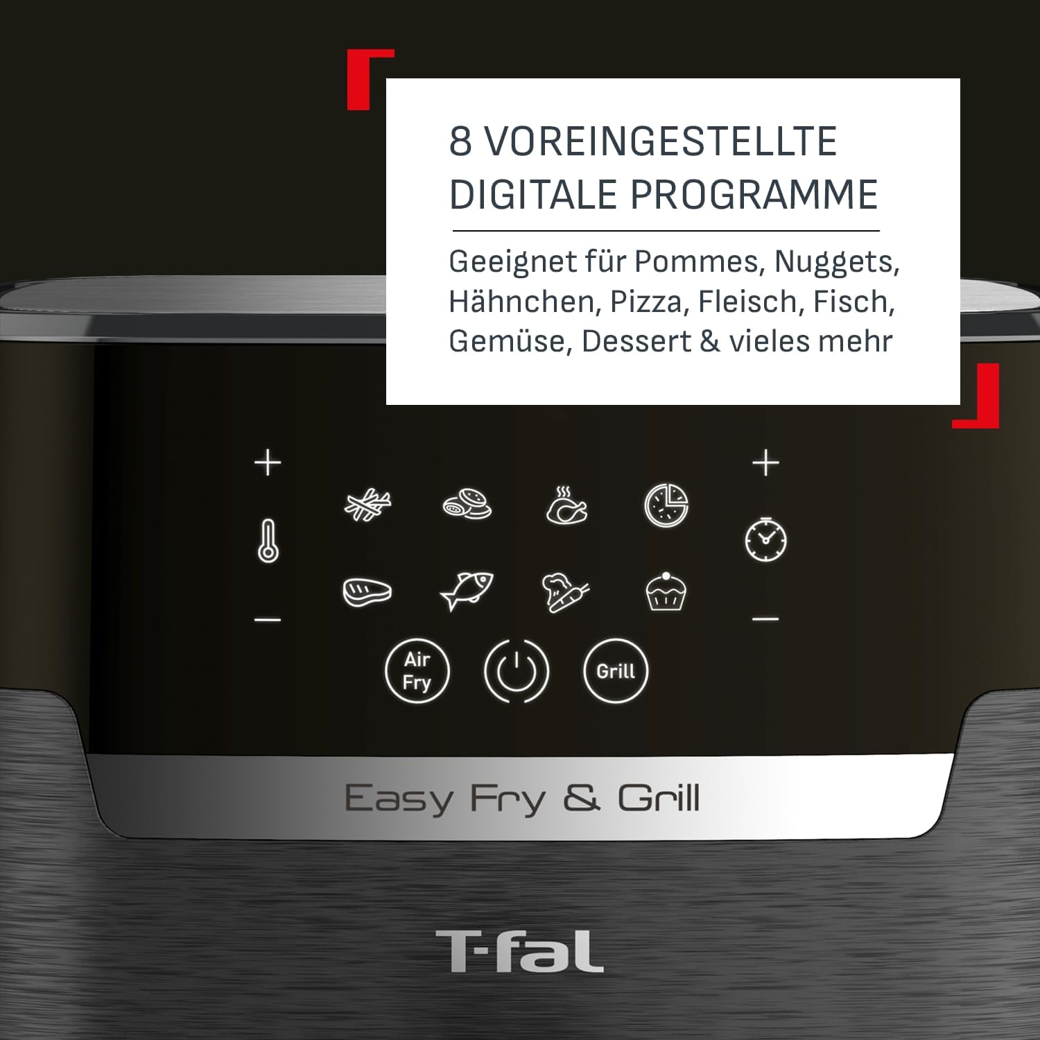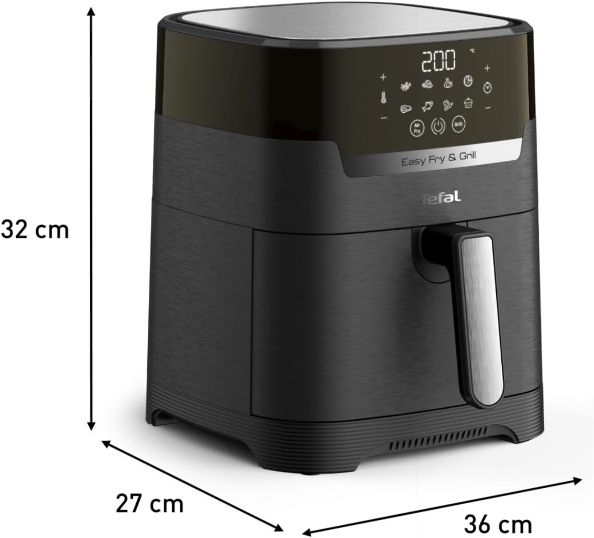 Фритюрник с горещ въздух Tefal Easy Fry & Grill, технология 2 в 1 (фритюрник с горещ въздух и грил), дигитален дисплей, 4,2 литра за 6 порции, 8 програми за готвене, енергоспестяващ, без олио, черен, XL, EY5058