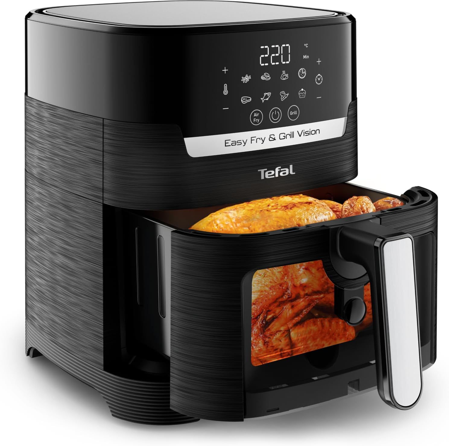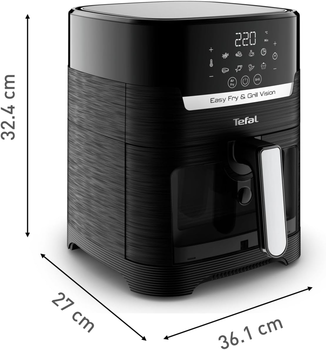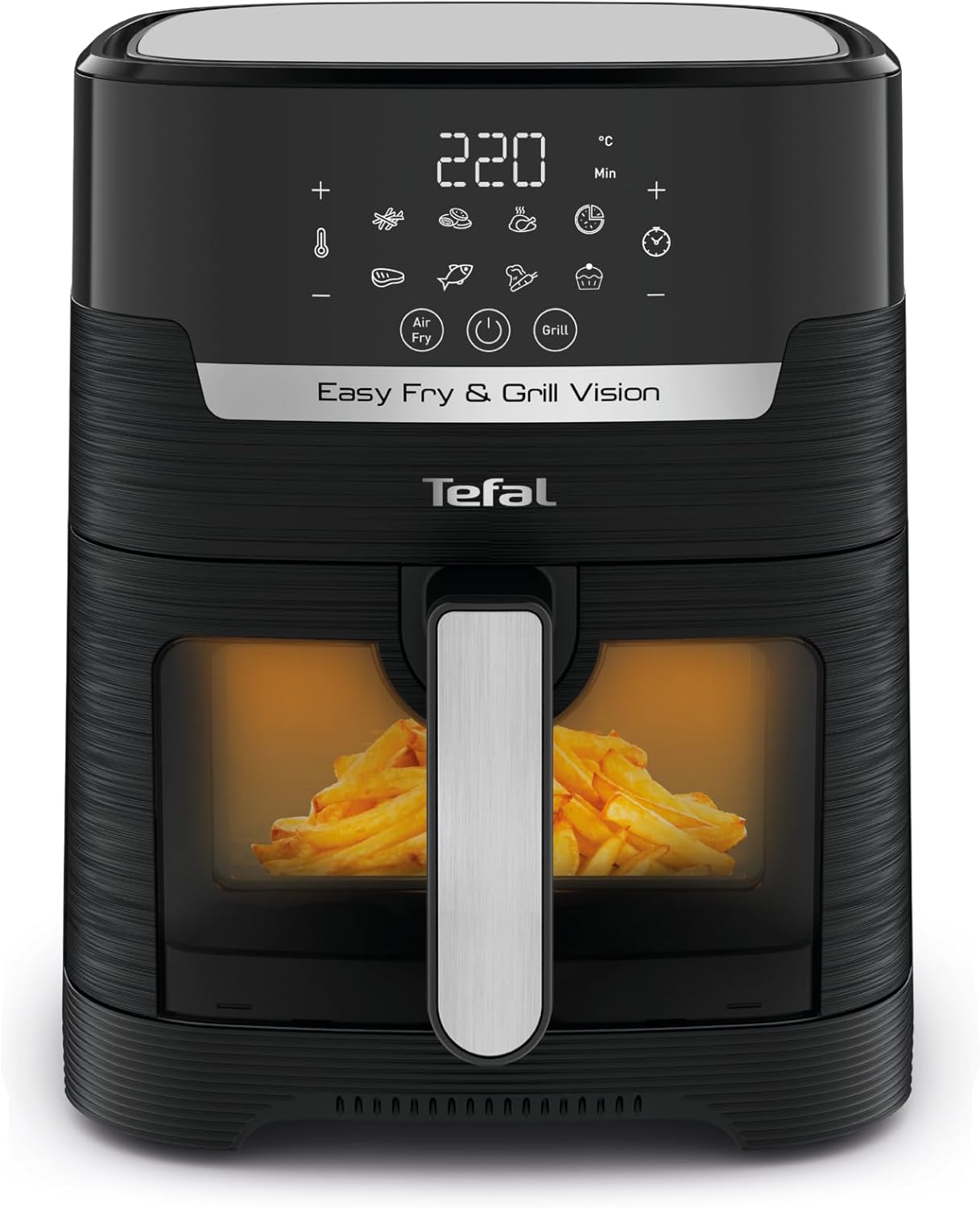 Фритюрник с горещ въздух Tefal Easy Fry & Grill Vision, капацитет 4,2 л, технология 2 в 1, прозорец за наблюдение, технология за екстра хрупкави храни, енергоспестяващ, сензорен екран, черен, EY5068