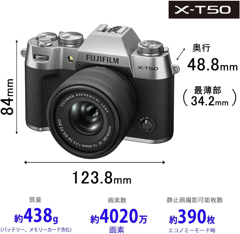 X-T50 разполага с 40,2-мегапикселов X-Trans CMOS 5 HR сензор с висока резолюция, X 5 процесор и петосна стабилизация на изображението с до седем стопа. Въпреки тези усъвършенствани функции, той тежи само приблизително 438 грама и следователно е един от най-леките модели в серията X. В комбинация с новия стандартен обектив FUJINON XF16-50mmF2.8-4.8 R LM WR, фотоапаратът е подходящ за снимане на най-различни обекти.