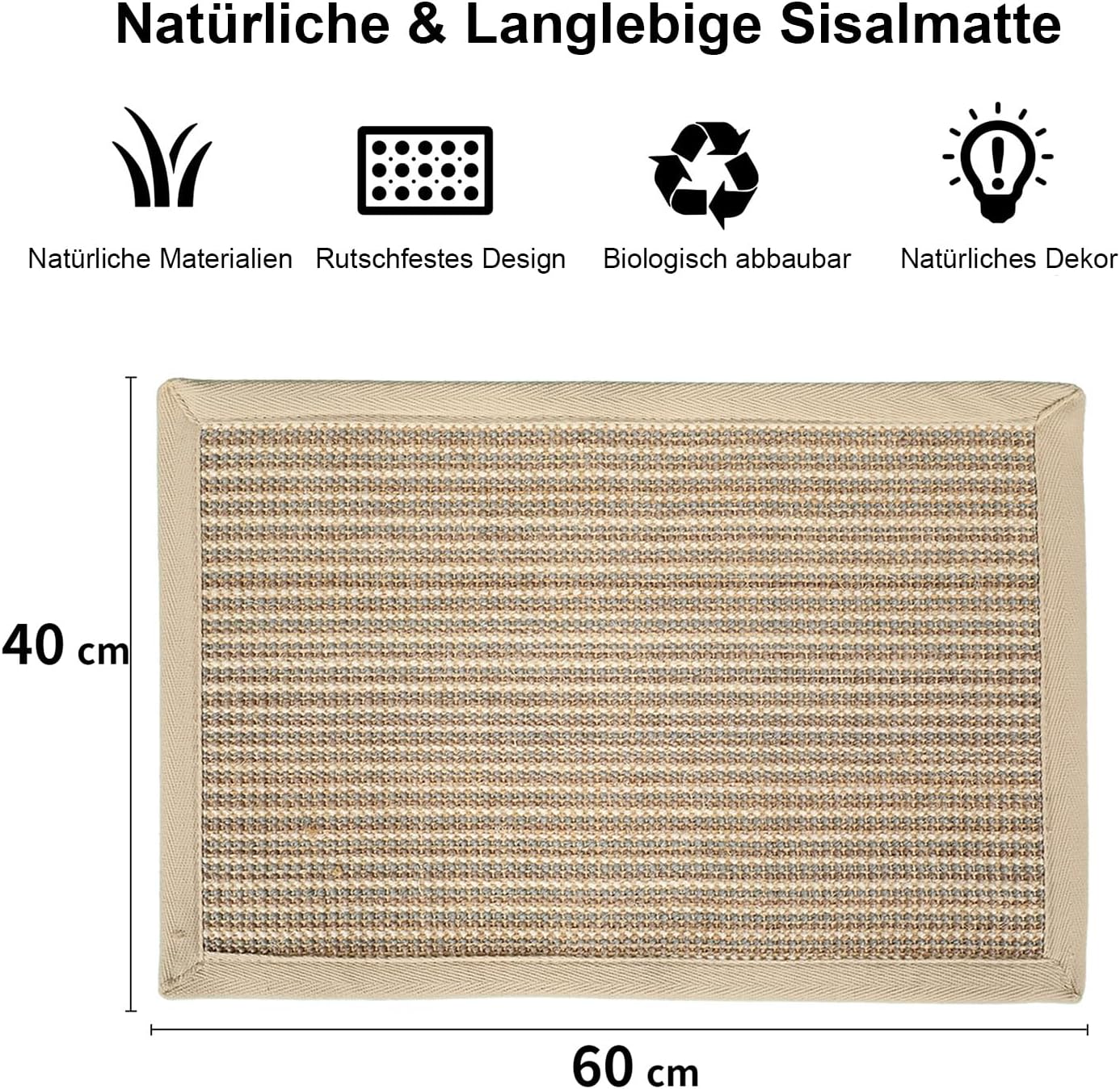 FUKUMARU Подложка за драскане за котки, Естествени дъски за драскане за котки, Подложка за драскане от сизал, Здрава мебел за котки, Изтривалка за врата, Подложка за драскане от сизал, Подложки за драскане за котки, 60 x 40 см, Кремава (с платнени шевове по краищата)