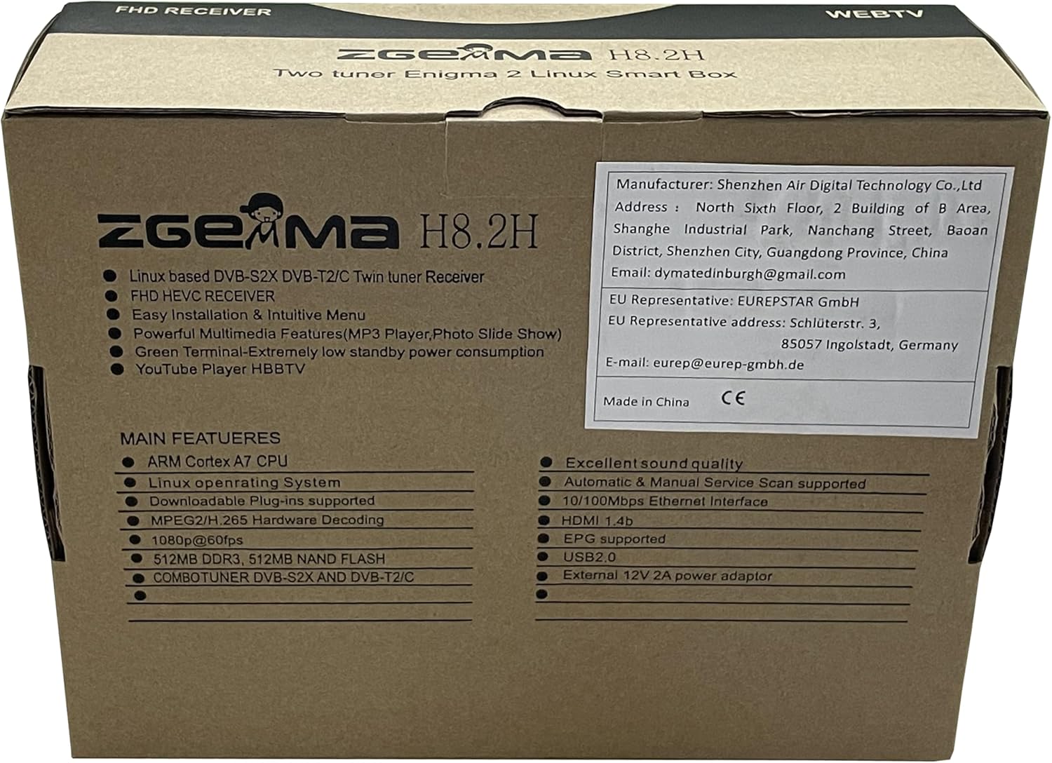 Full HD сателитен + кабелен/ефирен телевизионен приемник ZGEMMA H8 2H DVB S2X + DVB T2/C безплатен за ефирна телевизия