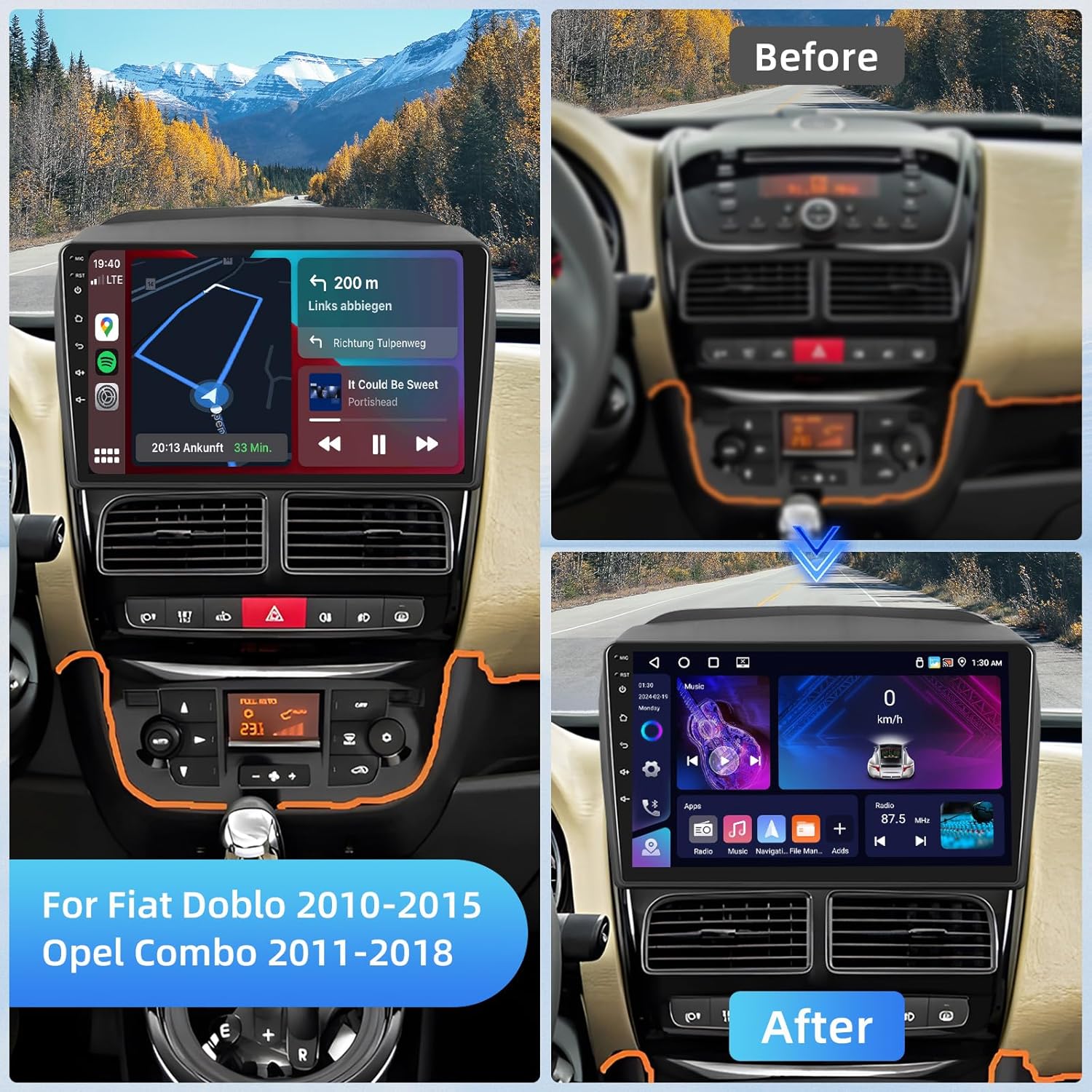 • За надстройка на радио Fiat/Opel: Това автомобилно радио е съвместимо с Fiat Doblo 2010 2011 2012 2013 2014 2015/Opel Combo 2011 2012 2013 2014 2015 2016 2017 2018. Не е необходимо да купувате допълнителни аксесоари с plug and play кабелния сноп. Моля, проверете централната конзола на вашия автомобил преди покупка.